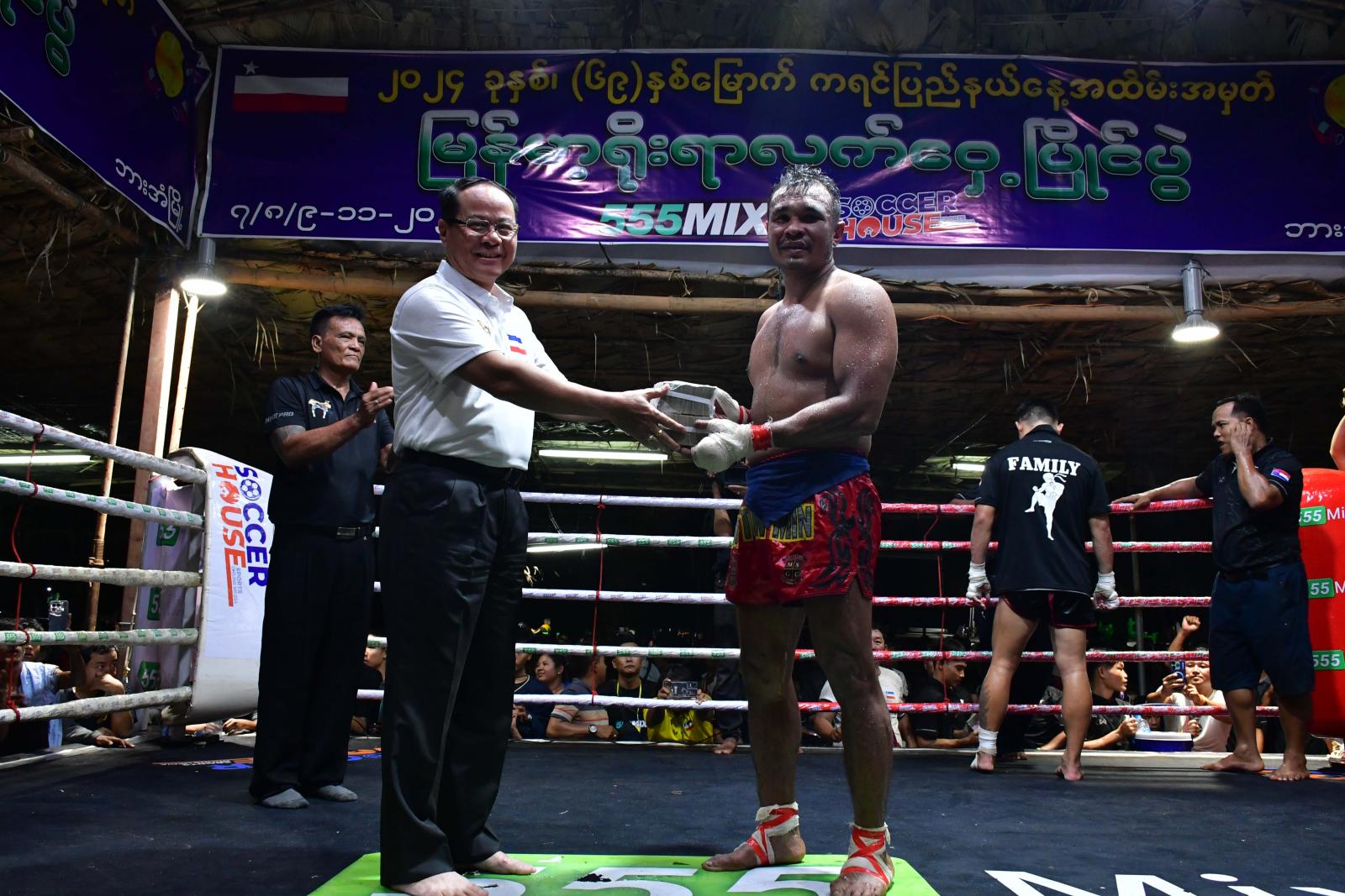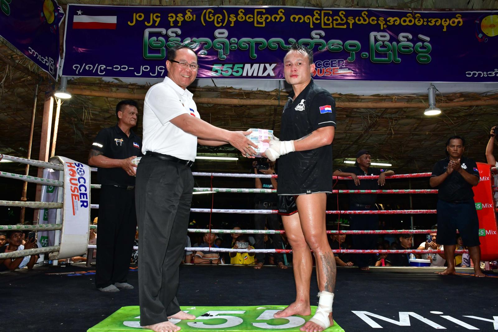 ထို့နောက် ပရိသတ်များ မျှော်လင့်စောင့်စားနေသော ခေါင်ပွဲစဉ်အဖြစ် ထွန်းထွန်းမင်း (GCC)ကလပ်နှင့် သွေးသစ်ဝင်းလှိုင်(FAMILY)ကလပ်တို့ ယှဉ်ပြိုင်ထိုးသတ်ကြရာ သွေးသစ်ဝင်းလှိုင်၏ လက်သီးချက်များကြောင့် ဒုတိယအချီတွင် ထွန်းထွန်းမင်းအနားတောင်းခဲ့ရပြီး တတိယအချီတွင် အမှတ်စဉ်ရေတွက်ခံရသော်လည်း ပွဲပြီးဆုံးချိန်ထိ အလဲထိုးနိုင်ခြင်းမရှိဘဲ အလူးအလဲဖြင့် ပူးတွဲသရေ ရလာဒ်သာ ထွက်ပေါ်ခဲ့သည့်အတွက် ပြည်နယ်ဝန်ကြီးချုပ်က တစ်ဦးလျှင် ယှဉ်ပြိုင်ထိုးသတ်ကြေးငွေကျပ်သိန်း ၂၅၀ စီကိုဂုဏ်ပြုချီးမြှင့်ခဲ့သည်။