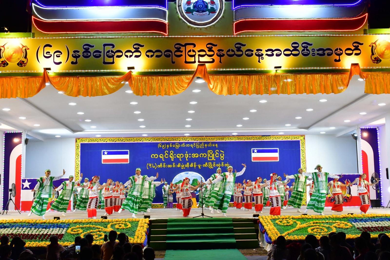 ပြည်နယ်ဝန်ကြီးချုပ်နှင့်တာဝန်ရှိသူများသည် ဆန်ကာတင်ရွေးချယ်ခြင်းခံရသော ဒုံးအဖွဲ့(၁၀)ဖွဲ့၏ ဖားစည်၊ ကျွဲချို၊ အိုးစည်၊ ဘင်၊ နှဲ၊ မောင်း၊ စည်းဝါး၊ လင်ကွင်းတို့ကို တီးမှုတ်၍ ကရင်တိုင်းရင်းသားတို့၏ လူနေမှုဘဝများ၊ ရိုးရာယဉ်ကျေးမှုဓလေ့ထုံးတမ်းများ၊ အေးချမ်းသာယာလှပမှုများ၊ ခေတ်ကာလအတွင်းကြုံတွေ့ရသည့်အခြေအနေများကို ရေးစပ်သီကုံးထားသည့် တေးသီချင်းများကို သံပြိုင်သီဆို၍ မြူးကြွသွက်လက်မြိုင်ဆိုင်စွာ ကပြယှဉ်ပြိုင်နေမှုများကို ကြည့်ရှုအားပေးခဲ့ကြပြီး ဂုဏ်ပြုဆုများ အသီးသီးပေးအပ်ချီးမြှင့်ခဲ့ကြသည်။