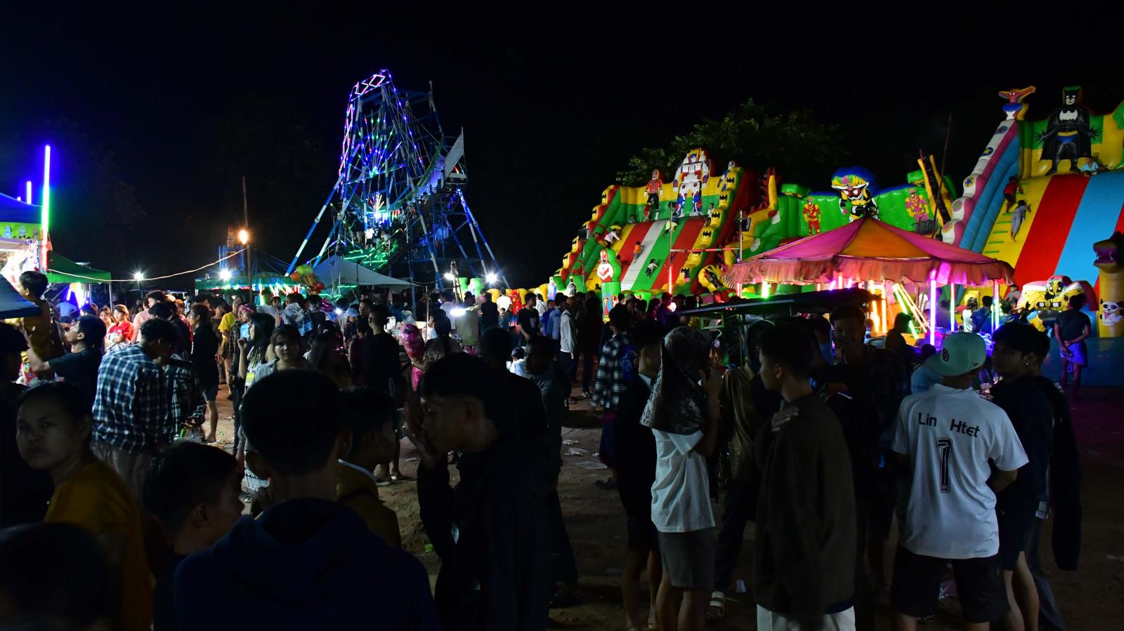 ယနေ့ညသည် မိုးတိမ်ကင်းစင်၍ ရာသီဥတုသာယာသည်နှင့်အမျှ (၆၉)နှစ်မြောက် ကရင်ပြည်နယ်နေ့ အထိမ်းအမှတ်အနေဖြင့် ကျင်းပသော ကရင်ရိုးရာဒုံးအကပြိုင်ပွဲကို လာရောက်ကြည့်ရှုအားပေးကြသူများ၊ အထူးကြားပွဲ၊ ရိုးရာအောင်လံလုပွဲနှင့် စာချုပ်စိန်ခေါ်ပွဲများ ပါဝင်သော ရိုးရာလက်ဝှေ့ပြိုင်ပွဲကို လာရောက်ကြည့်ရှု အားပေးကြသူများ၊ အကအလှများ ပါဝင်သော ကရင်မြန်မာဇာတ်သဘင်ပွဲ၊ ဒေသဖွံ့ဖြိုးရေးဆိုင်ရာများနှင့် အသိပညာပေးဆိုင်ရာများ ခင်းကျင်းပြသထားသည့် ဌာနဆိုင်ရာ ပြခန်းများ၊ တိုင်းရင်းသားစာပေနှင့် ယဉ်ကျေးမှုအဖွဲ့များ၊ လူမှုရေး အသင်းအဖွဲ့များ၊ အသေးစား၊အငယ်စားနှင့်အလတ်စား စက်မှုလုပ်မှုလုပ်ငန်း (MSMEs) လုပ်ငန်းရှင်များ ခင်းကျင်းပြသသည့် အသိပညာပေးနှင့် ထုတ်ကုန်အရောင်းပြခန်းများတွင် လာရောက်လေ့လာကြည့်ရှုဝယ်ယူကြသူများ၊ အဝတ်အထည်၊ လူသုံးကုန်ကုန်ပစ္စည်း၊ စားသောက်ကုန်ပစ္စည်း၊ ဒေသအစားအစာများနှင့် မုန့်ဈေးတန်းများ၊ ပျော်ပွဲ ရွှင်ပွဲများ၌ အနယ်နယ်အရပ်ရပ်မှ လာရောက်အပန်းဖြေလည်ပတ်စားသုံးကြသူများ ပြည်တွင်းခရီးသွားဧည့်သည်များဖြင့် အထူးစည်ကားလျက်ရှိကြောင်း သတင်းရသည်။