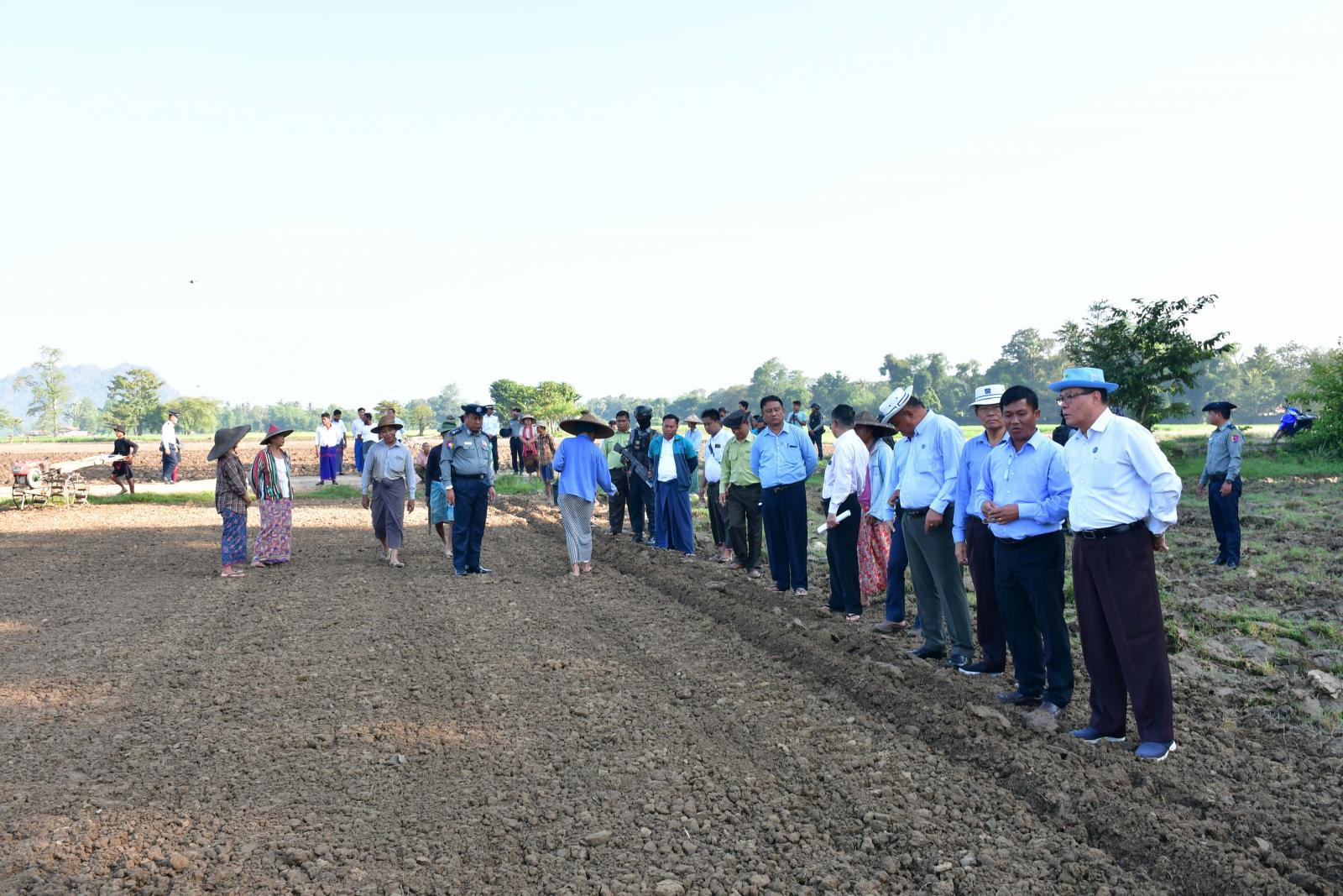 ဆက်လက်၍ ပြည်နယ်ဝန်ကြီးချုပ်နှင့်တာဝန်ရှိသူများသည် ဘားအံမြို့နယ်၊ ကမော့ကစင်အနောက်ကွင်း၊ ကွင်းအမှတ်(၁၁၈၇)ရှိ တရုတ်လှလျှပ်စစ်မြစ်ရေတင်၏ အကျိုးပြုဧရိယာတွင်ပါဝင်သော အကျဉ်းဦးစီးဌာနမှနွေစပါး ဧက(၃၀)စိုက်ပျိုးရန် ပျိုးဖျာလိပ်စနစ်ဖြင့်ပျိုးထောင်ထားရှိမှု၊ ကူဘိုတာခြောက်တန်းသွားကောက်စိုက်စက်ဖြင့် စိုက်ပျိုးနေမှုတို့ကိုကြည့်ရှုအားပေးပြီး တာဝန်ရှိသူများအား လိုအပ်သည်များမှာကြားသည်။