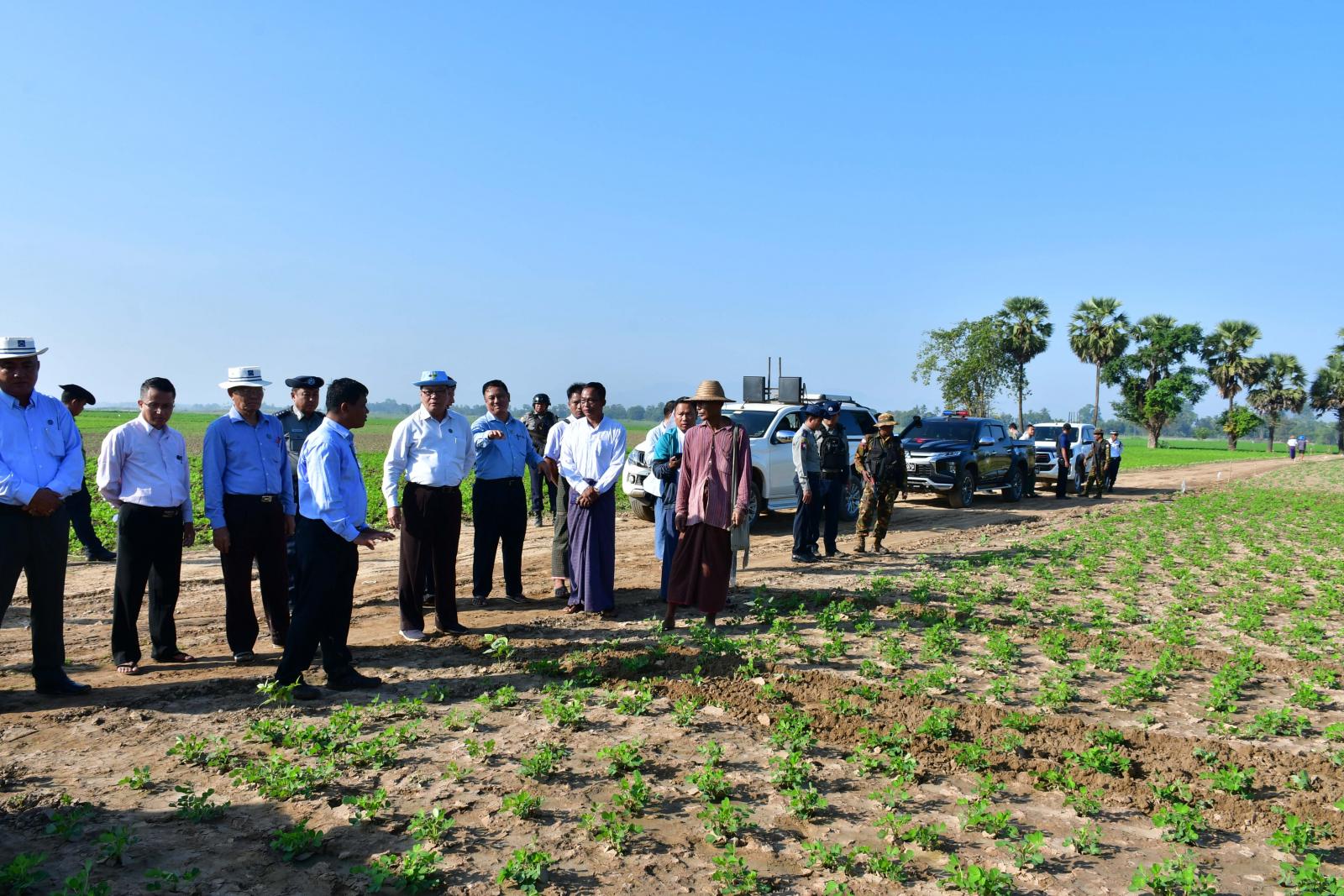 ပြည်နယ်ဝန်ကြီးချုပ်၊ ပြည်နယ်အစိုးရအဖွဲ့ဝင်များနှင့်တာဝန်ရှိသူများသည် ဘားအံမြို့နယ်၊ ကော့ကျိုက်ကျေးရွာ၊ ကွင်းအမှတ်(၁၂၀၉)ကော့ကျိုက်ကွင်း၌ ပြည်နယ်စိုက်ပျိုးရေးဦးစီးဌာနမှ ကွင်းဝန်ထမ်းများနှင့် ဒေသခံတောင်သူများပူးပေါင်း၍ ဆောင်းဆီထွက်သီးနှံမြေပဲအစေ့ချစိုက်ပျိုးနေမှု၊ ပေါင်းလိုက်စက်ဖြင့်ပေါင်းမြက်များ ရှင်းလင်းနေမှုများကိုကြည့်ရှုအားပေးပြီး တာဝန်ရှိသူများအား လိုအပ်သည်များမှာကြားခဲ့သည်။
