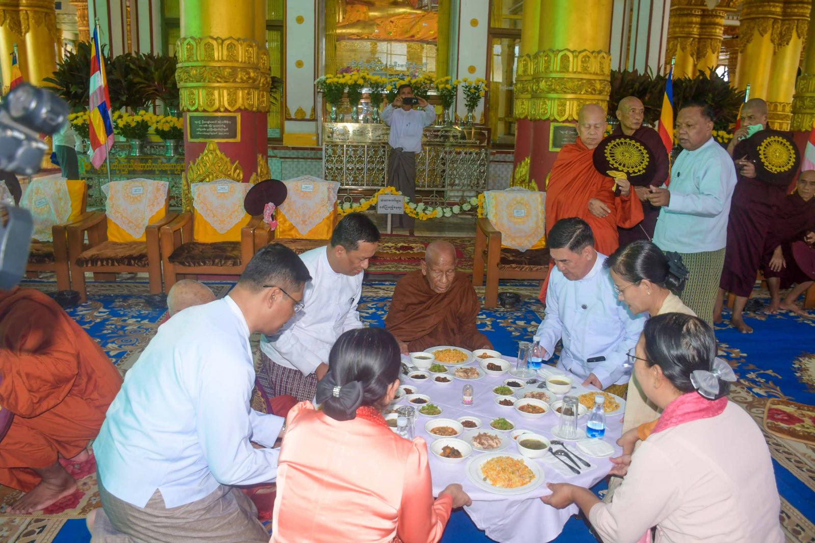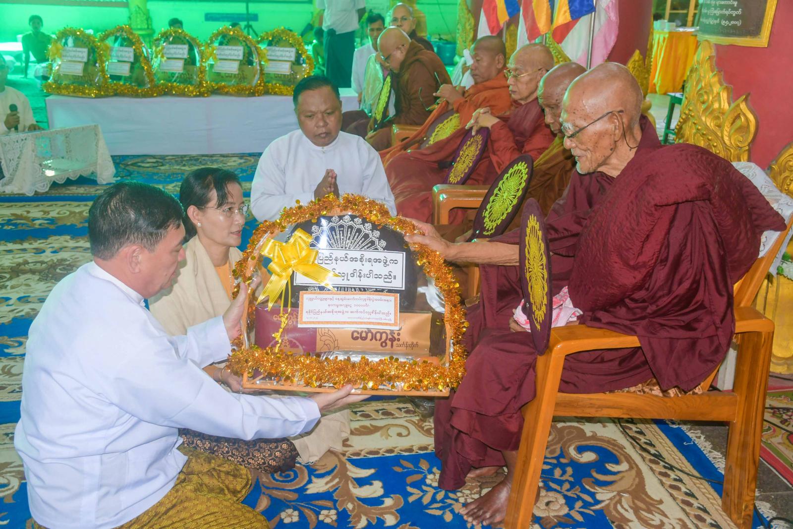 ယင်းနောက် ပြည်နယ်ဝန်ကြီးချုပ်နှင့်ဇနီး၊ ပြည်နယ်အစိုးရအဖွဲ့ဝင်များနှင့် တာဝန်ရှိသူများက သံဃာတော် အရှင်သူမြတ်များအား လှူဖွယ်ဝတ္ထုပစ္စည်းများ ဆက်ကပ်လှူဒါန်းကြသည်။