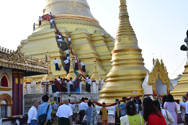 ကရင်ပြည်နယ်၊ မြဝတီမြို့၏ ကျက်သရေဆောင် ရှေးဟောင်းသမိုင်းဝင် ဆံတော်ရှင် ရွှေမြင်းဝန် စေတီတော်မြတ်ကြီးတွင် နှစ်စဉ်ကျင်းပမြဲဖြစ်သည့် တန်ဆောင်မုန်းလပြည့် (သာမညဖလအခါတော်နေ့)၌ မသိုးသင်္ကန်းဆက်ကပ် လှူဒါန်းပူဇော်ပွဲကို ယမန်နေ့ နံနက် ၆ နာရီက အဆိုပါ စေတီတော်မြတ်ကြီး ဓမ္မဗိမာန်တော်အတွင်း ကျင်းပသည်။