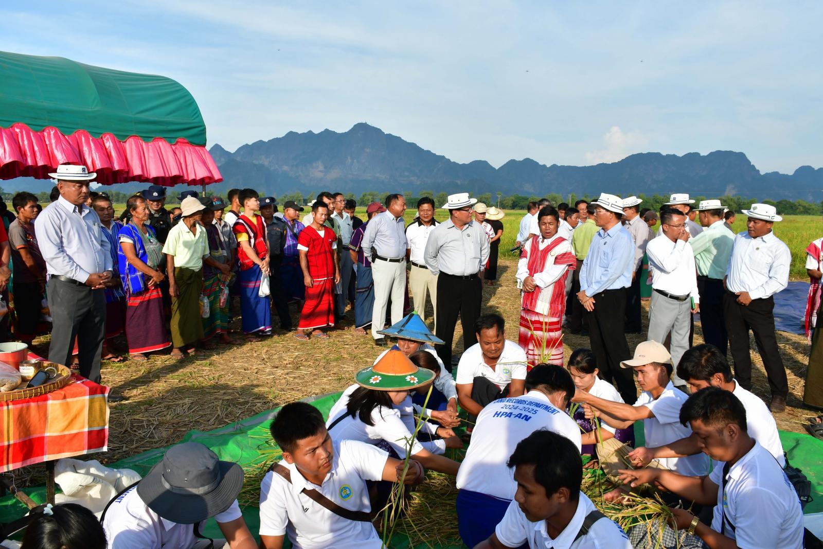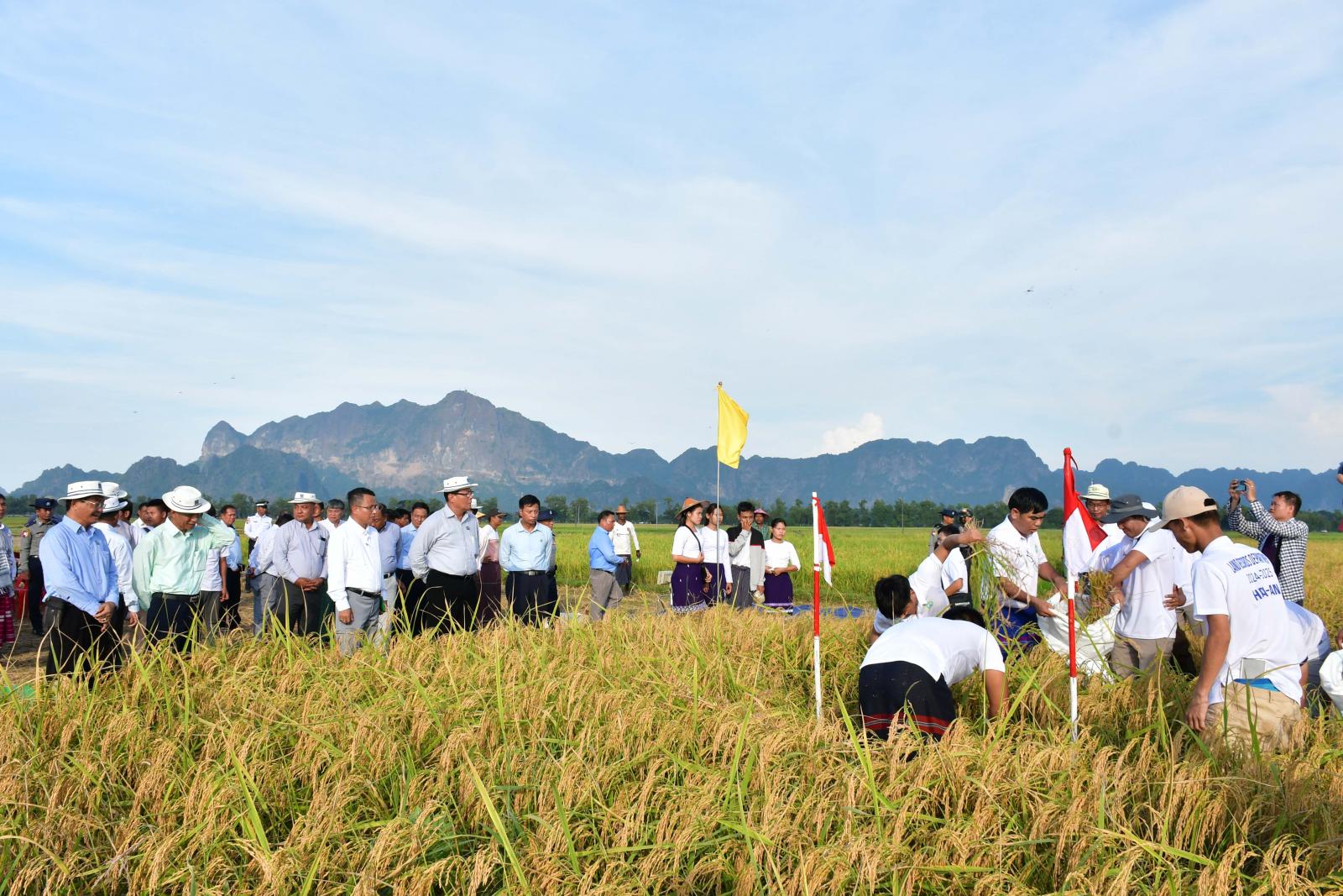 ယင်းနောက် တစ်ဧကအထွက်နှုန်းမှန်ကန်စွာရရှိရေးအတွက် စိုက်ပျိုးပြီးစီးသည့် မိုးစပါးဧကများ အနက် ကိုယ်စားအလွှာ(ကောင်း)ကို ကိုယ်စားပြုသောဗျော့ထွန်း(ဧည့်မထကောင်း) မိုးစပါးစိုက်ခင်းကို (၆ ဿမ ၆ ပေ x ၆ ဒသမ ၆ ပေ) ပတ်လည် ဧရိယာ ၀ ဒသမ ၀၀၁ ဧက စံကွက်သုံးကွက်အား ကြေးတိုင်နှင့်မြေစာရင်းဦးစီးဌာနမှ ဝန်ထမ်းများ၊ စိုက်ပျိုးရေးဦးစီးဌာနမှဝန်ထမ်းများနှင့် တောင်သူများက မိုးစပါးစံကွက်ရိတ်သိမ်းခြင်းနှင့် ပြည်နယ် စက်မှုလယ်ယာဦးစီးဌာန၊ အမှတ်(၂၀)စက်မှုလယ်ယာစခန်းမှ ကူဘိုတာရိတ်သိမ်းခြွေလှေ့စက်ဖြင့် မိုးစပါးရိတ်သိမ်းခြင်း၊ ရိတ်သိမ်းပြီးလယ်မြေများအား ထွန်စက်ကြီးများဖြင့် ပြန်လည်ထွန်ယက်ခြင်းတို့ကို ဆောင်ရွက်ကြရာ ကရင်ပြည်နယ်ဝန်ကြီးချုပ်၊ ပြည်နယ်အစိုးရအဖွဲ့ဝင်များနှင့် ဌာနဆိုင်ရာတာဝန်ရှိသူများက ကြည့်ရှုအားပေးခဲ့ကြပြီး တစ်ဧကအထွက်နှုန်း ၁၀၇ ဒသမ ၉၀ တင်းထွက်ရှိကြောင်း သတင်းရရှိသည်။