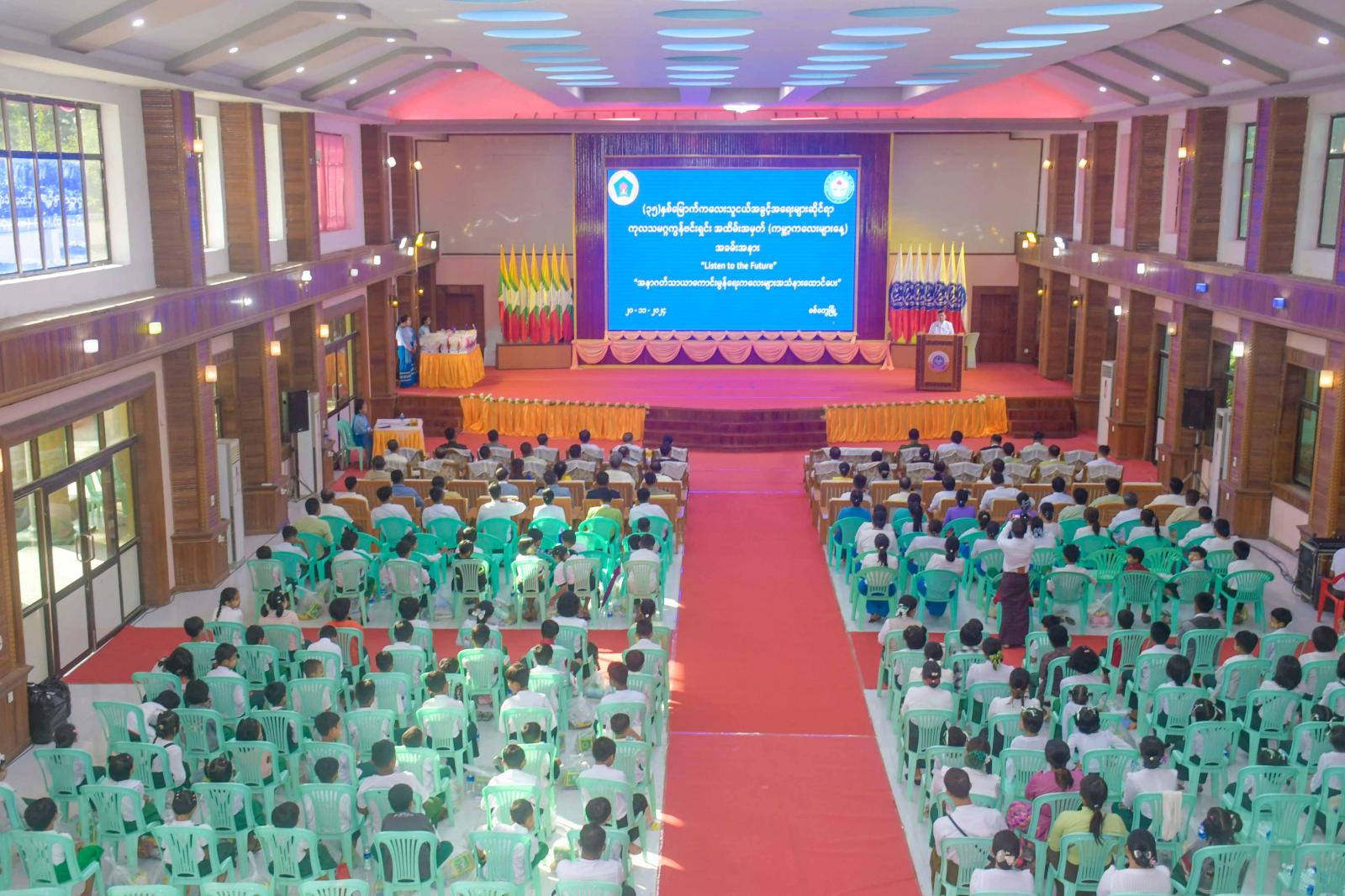 (၃၅) နှစ်မြောက် ကလေးသူငယ်အခွင့်အရေးများဆိုင်ရာ ကုလသမဂ္ဂကွန်ဗင်းရှင်းအထိမ်းအမှတ် (ကမ္ဘာ့ကလေးများနေ့)အခမ်းအနားကို ယမန်နေ့နံနက်ပိုင်းက စစ်တွေမြို့၊ ခိုင်သဇင်ခန်းမ၌ ကျင်းပရာ ရခိုင်ပြည်နယ်ဝန်ကြီးချုပ် ဦးထိန်လင်း၊ ပြည်နယ်တရားလွှတ်တော်တရားသူကြီးချုပ်၊ ပြည်နယ်အစိုးရအဖွဲ့ဝင်များ၊ ဌာနဆိုင်ရာများ၊ ဆရာ၊ ဆရာမများနှင့် ကျောင်းသား၊ ကျောင်းသူများ၊ ဖိတ်ကြားထားသူများတက်ရောက်ကြသည်။