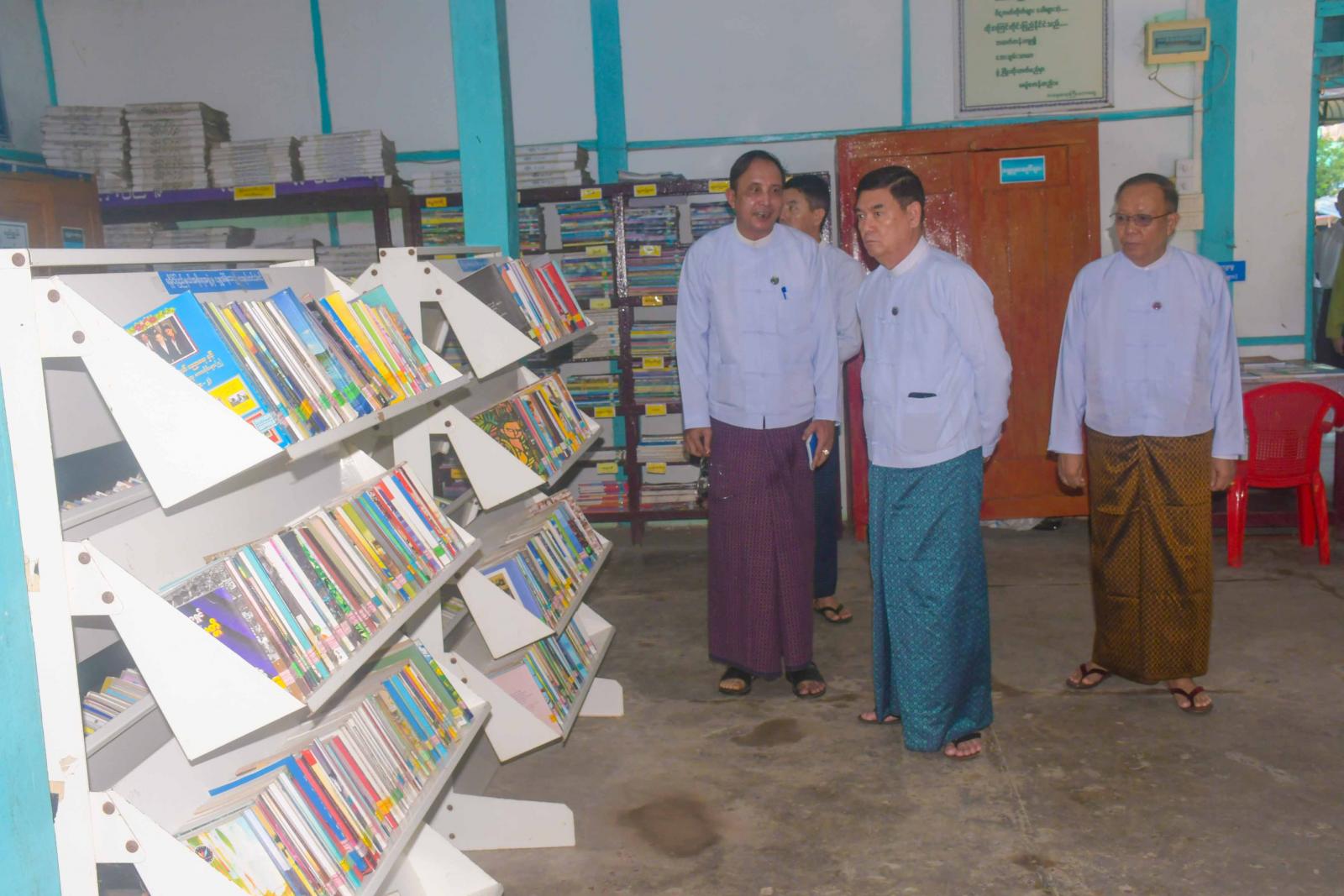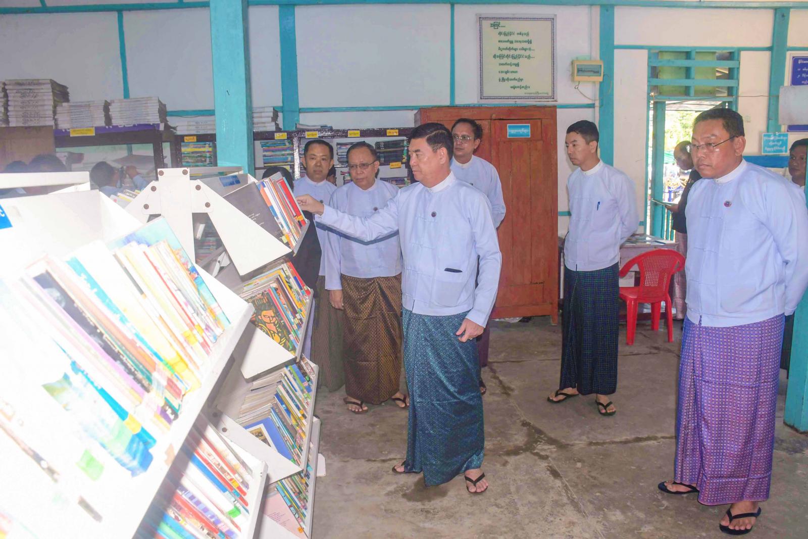 ဆက်လက်၍ ပြည်နယ်ဝန်ကြီးချုပ်နှင့်အဖွဲ့သည် ပြန်ကြားရေးနှင့်ပြည်သူ့ဆက်ဆံရေးဦးစီးဌာန၊ စစ်တွေခရိုင်ရုံး သို့သွားရောက်၍ ရုံးရှေ့ရှိမြေစိုက်နံရံကပ်ပြဘုတ်၌ နိုင်ငံတော်အကြီးအကဲများ၏ ခရီးစဉ် မှတ်တမ်းများ၊ ပြည်နယ်အစိုးရအဖွဲ့၏ ဒေသဖွံ့ဖြိုးရေးဆောင်ရွက်ချက်များပြသထားရှိမှုကို ကြည့်ရှုကာ ကလေးစာဖတ်ခန်း၊ ပြတိုက်ငယ်နှင့် ပြည်သူ့စာကြည့်တိုက်တို့ကို လှည့်လည်ကြည့်ရှုပြီး စာကြည့်တိုက်အတွက် လိုအပ်သည်များကို ဖြည့်ဆည်းပေးနိုင်ရေး တာဝန်ရှိသူများအား မှာကြားခဲ့ကြောင်း သိရသည်။