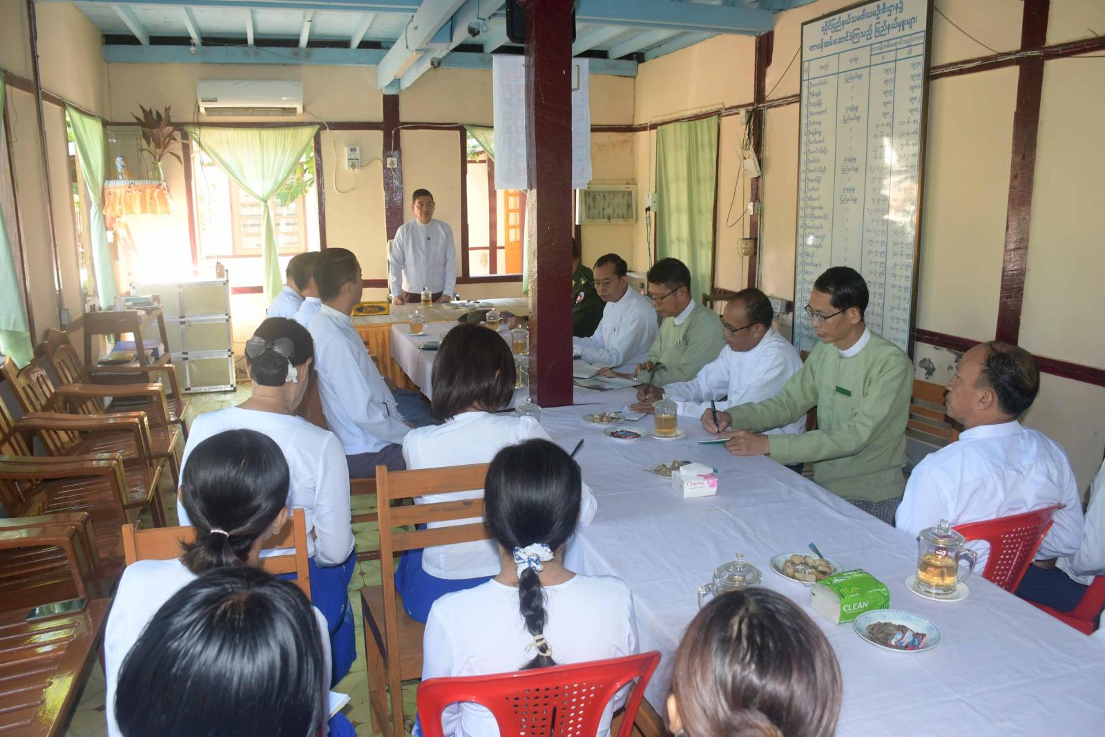 ယနေ့နံနက်ပိုင်းတွင် ရခိုင်ပြည်နယ်ဝန်ကြီးချုပ်နှင့်အဖွဲ့သည် ပြည်နယ်သမဝါယမဦးစီးဌာနရုံးသို့ သွားရောက်ပြီး ဝန်ထမ်းများနှင့်တွေ့ဆုံကာ ဦးစီးဌာန၏ လုပ်ငန်းတာဝန်များကို ကျေပွန်စွာထမ်းဆောင်ကြရန်၊ ဝန်ထမ်းများအချင်းချင်း ပူးပေါင်းဆောင်ရွက်ကြရန်၊ မိမိတို့၏ ရုံးပတ်ဝန်းကျင် သန့်ရှင်းသာယာလှပရေး ဆောင်ရွက်ကြရန်နှင့် ပြည်နယ်အစိုးရအဖွဲ့ကလည်း ဝန်ထမ်းများ သက်သာရှောင်ချိရေးအတွက် ဆန်နှင့် စားသောက်ကုန်ပစ္စည်းများ ထောက်ပံ့ပေးနေမှု၊ နိုင်ငံ့ဝန်ထမ်းအငြိမ်းစားများအား အခမဲ့ကျန်းမာရေးစောင့်ရှောက်မှုပေးမှု၊ ဆန်နှင့်ထောက်ပံ့ပစ္စည်းများပေးအပ်နေမှုတို့ကို ရှင်းလင်းပြောကြားသည်။ ဆက်လက်၍ ပြည်နယ်ဝန်ကြီးချုပ်နှင့်အဖွဲ့သည် ရုံးအတွင်းလှည့်လည်ကြည့်ရှုပြီး ရုံးသန့်ရှင်းသာယာလှပရေးအတွက် ဆောင်ရွက်ထားရှိမှုနှင့် ဝန်ထမ်းအိမ်ရာများကို လှည့်လည်ကြည့်ရှုခဲ့သည်။