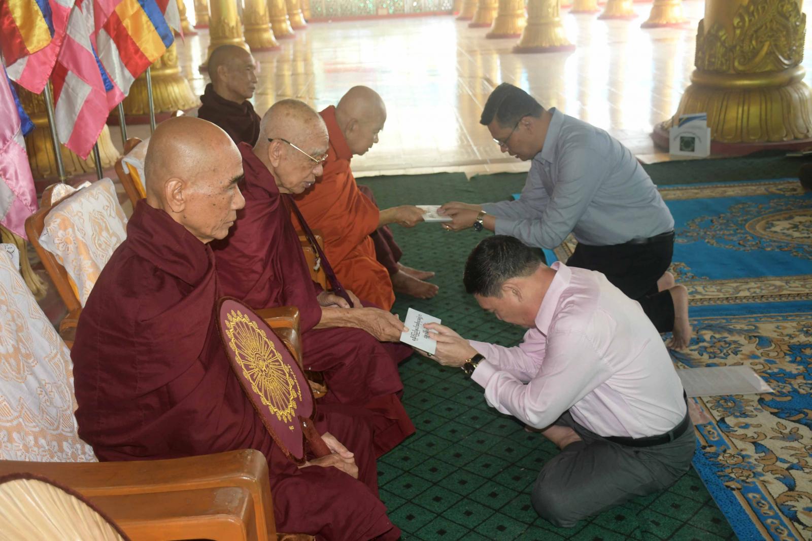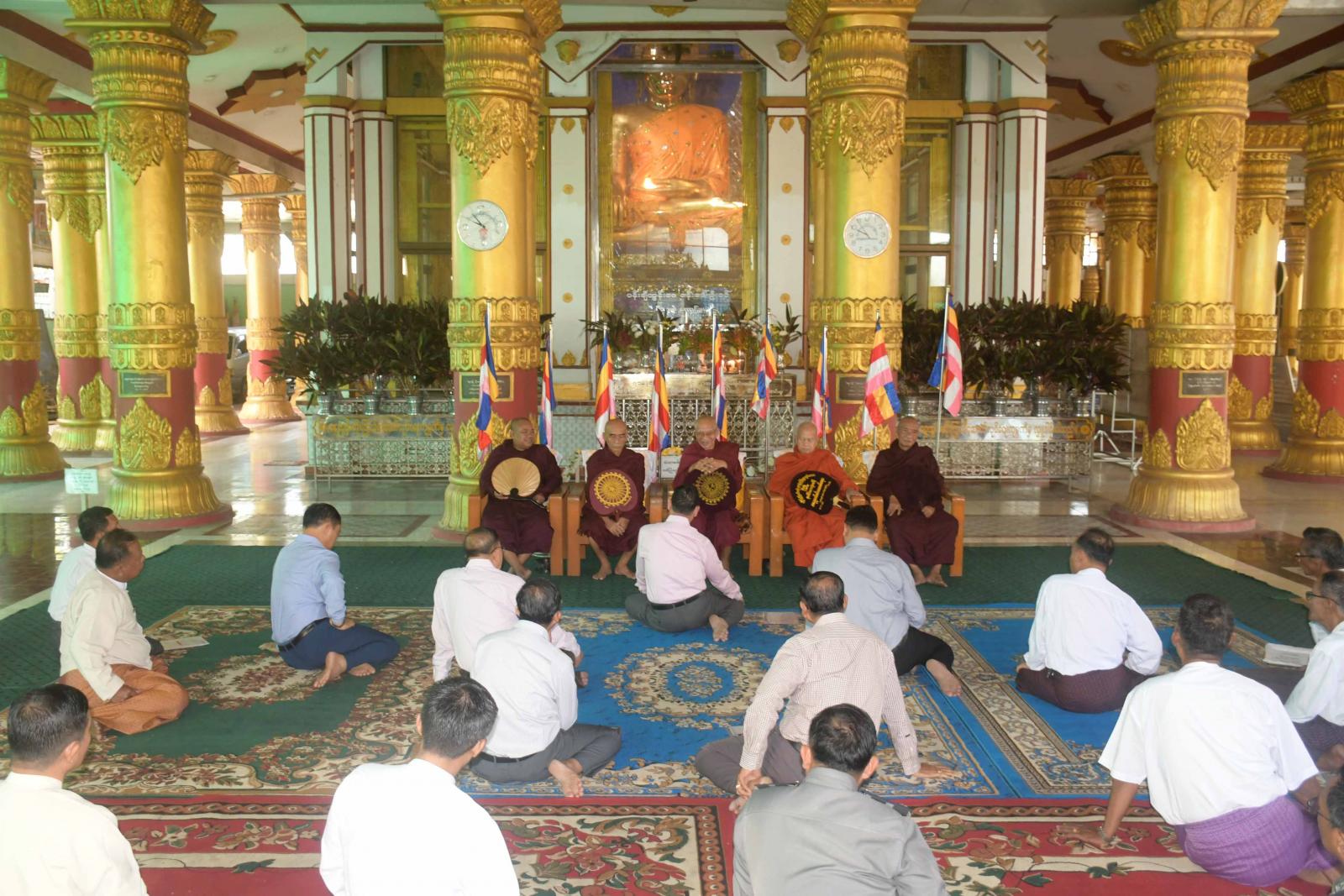 ဆက်လက်၍ ဩဝါဒါစရိယဆရာတော်ကြီးများ၊ ပြည်နယ်ဝန်ကြီးချုပ်နှင့်အစိုးရအဖွဲ့ဝင်များအား စည်ပင်သာယာရေးအဖွဲ့မှ တာဝန်ရှိသူများက စစ်တွေမြို့၊ ဝင်္ကဘာကွင်းအား သံပန်းအလှကာရန်ခြင်း၊ ရေမြောင်း၊ ပလက်ဖောင်းဆောင်ရွက်ခြင်းနှင့် မြေကြီးဖို့ခြင်းလုပ်ငန်းဆောင်ရွက်မည့် အစီအမံများကို လျှောက်ထားရှင်းလင်းတင်ပြကြသည်။