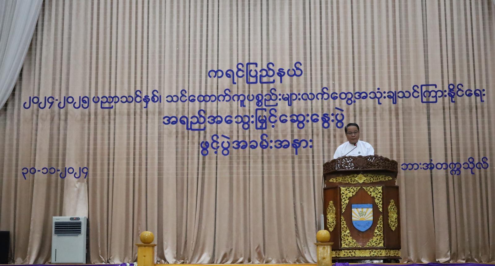 ရှေးဦးစွာ ပြည်နယ်ဝန်ကြီးချုပ် ဦးစောမြင့်ဦးက သင်ထောက်ကူပစ္စည်းများ လက်တွေ့အသုံးချ သင်ကြားနိုင်ရေးအတွက် အခြေခံပညာအထက်တန်းဆင့်သင် ဆရာ/မများအား အရည်အသွေးမြှင့် ဆွေးနွေးပွဲ အခမ်းအနားတွင် သင်ထောက်ကူပစ္စည်းများ လက်တွေ့အသုံးချနိုင်စေရေး အတွက် ဘားအံတက္ကသိုလ်မှ နည်းပြဆရာ/ဆရာမများက သင်ကြားပို့ချပေးမှာဖြစ်ပြီး ကရင်ပြည် နယ်အတွင်းရှိ အခြေခံပညာ ထက်ဆင့် သင်ကျောင်းများမှ ဓာတုဗေဒဘာသာရပ်သင် အထက်တန်း ပြဆရာ/ဆရာမ (၁၆၅)ဦး၊ ရူပဗေဒဘာသာရပ်သင် အထက်တန်းပြဆရာ/ဆရာမ (၁၆၆)နှင့် ဇီဝဗေဒဘာသာရပ်သင် အထက်တန်းပြဆရာ/ဆရာမ (၁၃၇)ဦး၊ စုစုပေါင်း (၄၆၈)ဦးက (၃၀-၁၁-၂၀၂၄ မှ ၁-၁၂-၂၀၂၄)ရက်နေ့အထိ (၂)ရက်တာ တက်ရောက်ကြရမှာဖြစ်ပြီး အချိန်တိုအတွင်း လေ့လာဆွေးနွေးရသည့်အတွက် ထိရောက်စွာ ပြန်လည်ပို့ချနိုင်စေရေး အတွက် အထူးဂရုစိုက် လေ့လာသင်ယူဆွေးနွေးသွားကြရန် လိုအပ်ပါကြောင်း၊ မိမိတို့၏တပည့်များအား ဗလငါးတန် ပြည့်ဝပြီး ထူးချွန်ကောင်းမွန်သည့် လူသားအရင်းအမြစ်များ မွေးထုတ်ပေးနိုင်ရေးအတွက်လည်း သင်ကြားပြသပေးကြဖို့ လိုအပ်ပါကြောင်း တိုက်တွန်းမှာကြားခဲ့သည်။