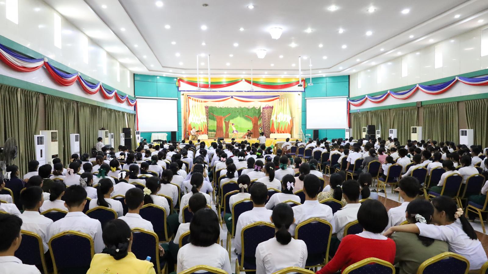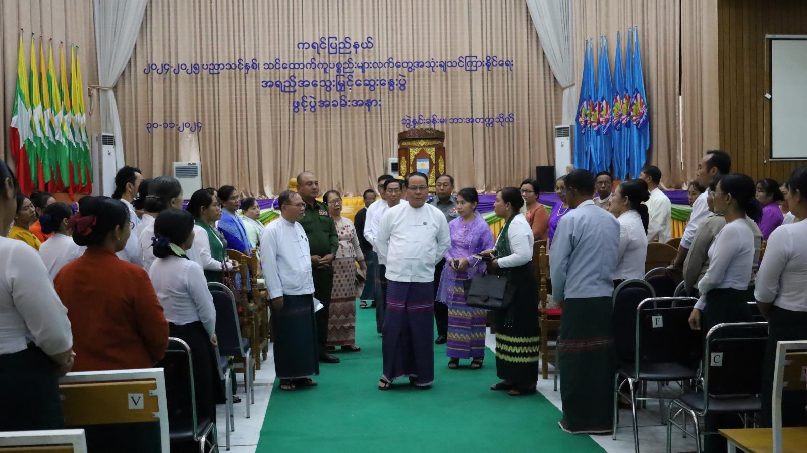 ဆက်လက်၍ ဘားအံမြိုု့၌ ၂၀၂၄-၂၀၂၅ ပညာသင်နှစ်၊ သင်ထောက်ကူပစ္စည်းများ လက်တွေ့ အသုံးချသင်ကြားနိုင်ရေးအတွက် အခြေခံပညာအထက်တန်းဆင့်သင် ဆရာ/မများအား အရည်အသွေးမြှင့် ဆွေးနွေးပွဲ အခမ်းအနားကို ယမန်နေ့ မွန်းလွဲ ၂ နာရီက ဘားအံတက္ကသိုလ်၊ ဘွဲ့နှင်းသဘင် ခန်းမ၌ ကျင်းပခဲ့ရာ ပြည်နယ်ဝန်ကြီးချုပ်၊ ပြည်နယ်တရားလွှတ်တော်တရား သူကြီးချုပ်၊ အစိုးရအဖွဲ့ဝင်များ၊ ပါမောက္ခချုပ်၊ ပါမောက္ခများ၊ ကထိကများနှင့် ပြည်နယ် အဆင့်ဌာနဆိုင်ရာများနှင့် ဆရာ/ဆရာမများ တက်ရောက်ကြပြီး ဘားအံမြို့ အမှတ်(၄) အခြေခံပညာအထက်တန်းကျောင်းမှ ကျောင်းသား/ကျောင်းသူများက ငြိမ်းချမ်းပါစေ မြန်မာပြည် သီချင်းဖြင့် ကပြဖျော်ဖြေခဲ့သည်။