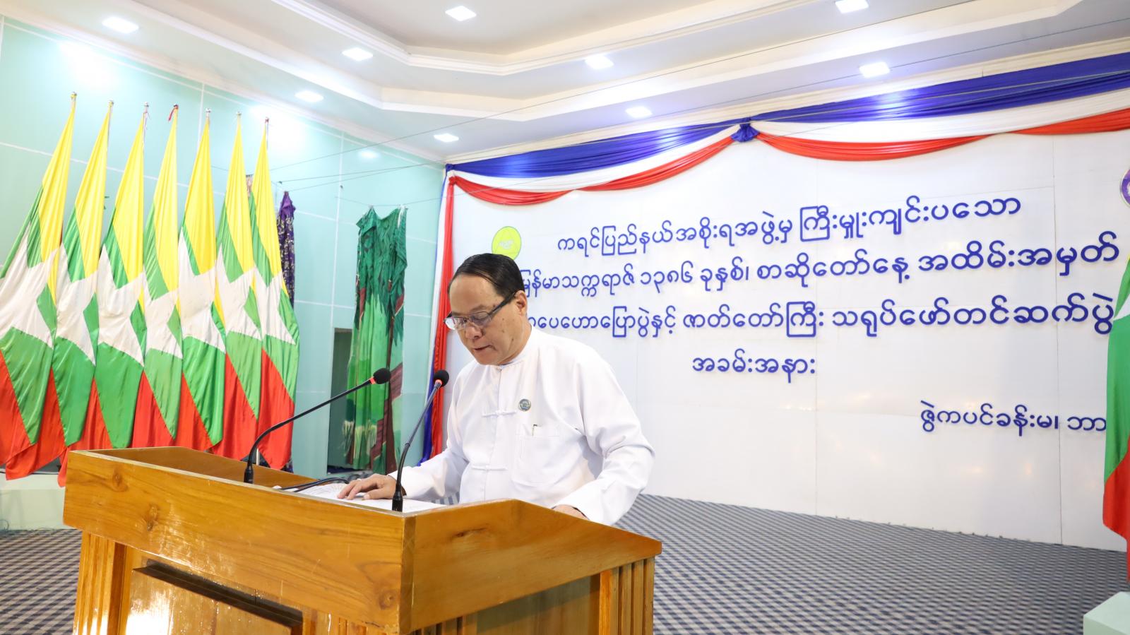 ကရင်ပြည်နယ်အစိုးရအဖွဲ့မှ ကြီးမှူးကျင်းပသော မြန်မာသက္ကရာဇ် ၁၃၆၈ ခုနှစ်၊ စာဆိုတော်နေ့ အထိမ်းအမှတ်စာပေဟောပြောပွဲနှင့် ဇာတ်တော်ကြီး သရုပ်ဖော်တင်ဆက်ပွဲ အခမ်း အနားကို ယနေ့နံနက်ပိုင်း ၉ နာရီ၌ ဘားအံမြို့၊ ဇွဲကပင်ခန်းမ၌ ကျင်းပရာ ပြည်နယ်ဝန်ကြီးချုပ်၊ ပြည်နယ်တရားလွှတ်တော် တရားသူကြီးချုပ်၊ ကရင်ပြည်နယ်အစိုးရအဖွဲ့ဝင်များနှင့် ဌာနဆိုင်ရာ တာဝန်ရှိသူများ တက်ရောက်ကြသည်။