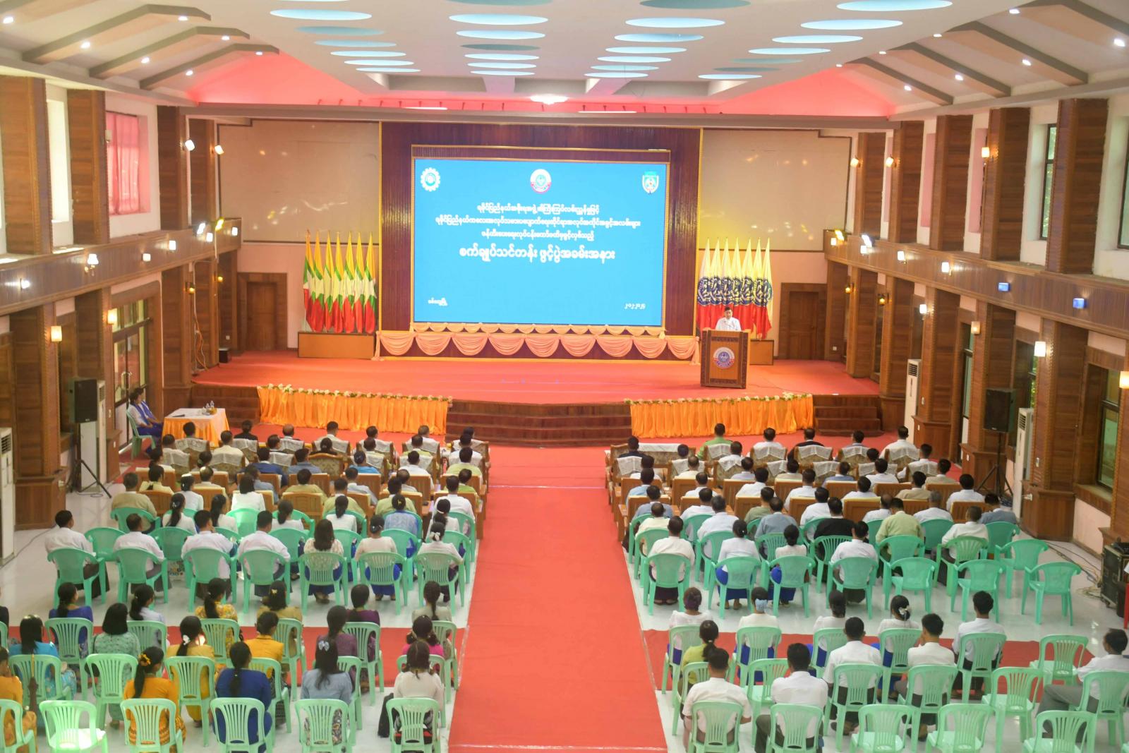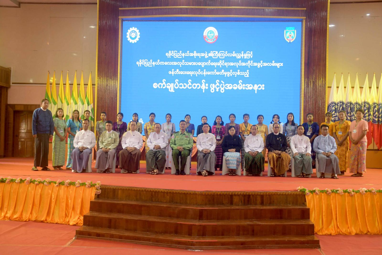 ရခိုင်ပြည်နယ်အစိုးရအဖွဲ့၏ကြီးကြပ်မှုဖြင့် ရခိုင်ပြည်နယ်ကလေးအလုပ်သမားပပျောက်ရေးဆိုင်ရာ အလုပ်အကိုင်အခွင့်အလမ်းများ ဖန်တီးပေးရေးလုပ်ငန်းကော်မတီမှ ဖွင့်လှစ်သည့် စက်ချုပ်သင်တန်းဖွင့်ပွဲ အခမ်းအနားကို ယနေ့နံနက်ပိုင်းက စစ်တွေမြို့၊ ခိုင်သဇင်ခန်းမ၌ ကျင်းပရာ ရခိုင်ပြည်နယ်ဝန်ကြီးချုပ် ဦးထိန်လင်း၊ ပြည်နယ်တရားလွှတ်တော်တရားသူကြီးချုပ်၊ ပြည်နယ်အစိုးရအဖွဲ့ဝင်များ၊ ဌာနဆိုင်ရာများ၊ သင်တန်းဆရာ၊ ဆရာမများနှင့် သင်တန်းသူများ၊ ဖိတ်ကြားထားသူများတက်ရောက်ကြသည်။