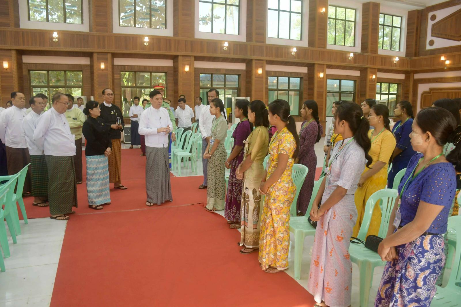သင်တန်းဖွင့်ပွဲတွင် ရခိုင်ပြည်နယ်ဝန်ကြီးချုပ် ဦးထိန်လင်းက မြန်မာနိုင်ငံအနေဖြင့် မြန်မာနိုင်ငံ ကလေးအလုပ်သမားပပျောက်ရေးအစီအစဉ်ကို ၂၀၁၃ ခုနှစ်၊ ဒီဇင်ဘာလ ၃၁ ရက်နေ့စ၍ ၂၀၁၇ ခုနှစ်၊ ဒီဇင်ဘာလ ၃၁ ရက်နေ့အထိ (၄) နှစ် စီမံကိန်းချမှတ်ကာ စီမံချက်ကိုအကောင်အထည်ဖော်ဆောင်ရွက်နေခြင်းဖြစ်ကြောင်း၊ ရခိုင်ပြည်နယ်တွင် အလုပ်အကိုင်အခွင့်အလမ်းများရရှိရေးအတွက် သက်မွေးဝမ်းကျောင်းသင်တန်းများ ဖွင့်လှစ်ပေးခြင်းဖြစ်ကြောင်း၊ အလုပ်အကိုင်အခွင့်အလမ်း ဖော်ဆောင်ရေးသည် အရေးကြီးသည့် လုပ်ငန်းဖြစ်သည့်အတွက် အလုပ်အကိုင် အခွင့်အလမ်းများရရှိရန် စိုက်ပျိုးရေး၊ မွေးမြူရေး၊ စက်မှုလက်မှု၊ ကုန်ထုတ်လုပ်မှု၊ စီးပွားရေးနှင့် ကူးသန်းရောင်းဝယ်မှုဆိုင်ရာ ဝန်ဆောင်မှုများ စသည့် ပညာရှင်အဖွဲ့အစည်းများ၊ ဌာနများ၊ စီးပွားရေးလုပ်ငန်းရှင်များနှင့် ချိတ်ဆက်ပူးပေါင်း ဆောင်ရွက်ရမည်ဖြစ်ကြောင်း၊ လူမှုစီးပွားဘဝ အထောက်အကူပြုသင်တန်းများ ဖွင့်လှစ်ပေးခြင်းသည် လူငယ်များအနေဖြင့် ကိုယ်ပိုင်လုပ်ငန်းငယ်များထူထောင်ပြီး ဝင်ငွေတိုးတက်ရရှိစေရန်နှင့် အလုပ်အကိုင် အခွင့်အလမ်းများ တိုးတက်အောင်မြင်စေရန် ရည်ရွယ်ချက်ကောင်းများနှင့် စက်ချုပ်သင်တန်းကိုဖွင့်လှစ်ပေးခြင်းဖြစ်ကြောင်း၊ သင်တန်းသူများအနေဖြင့် ယခုသင်တန်းတွင် စာတွေ့၊ လက်တွေ့သင်ကြားပေးသည့် အခြေခံသင်ခန်းစာများကို စိတ်ဝင်စားစွာ လေ့လာသင်ယူပြီးတတ်မြောက်လာသည့် အခြေခံစက်ချုပ်ပညာရပ်များဖြင့် လုပ်ငန်းခွင်ဝင်နိုင်သော အဆင့်ဖြစ်အောင် အဆင့်ဆင့်ကြိုးစား သင်ယူကြရန်ပြောကြားခဲ့သည်။