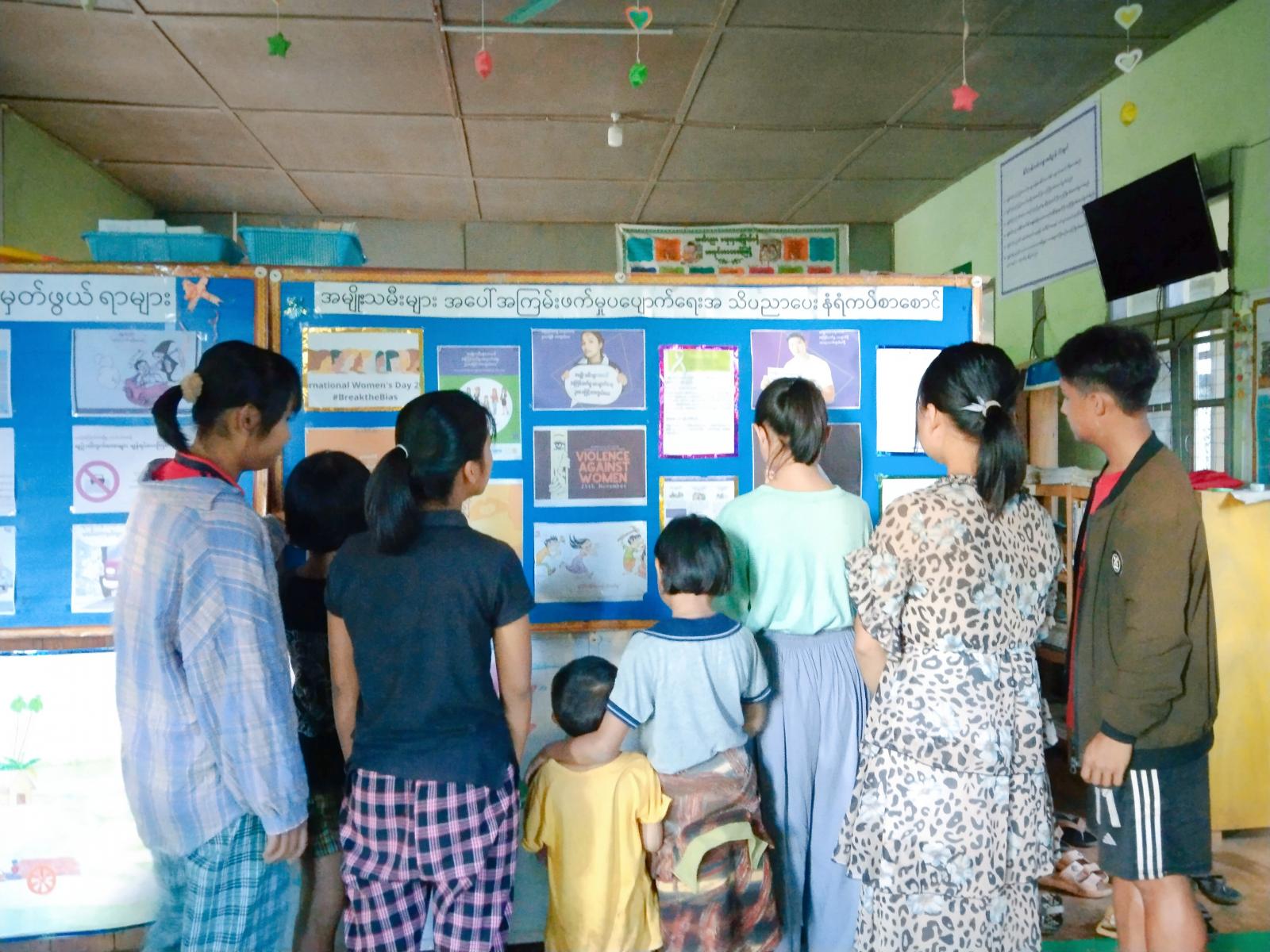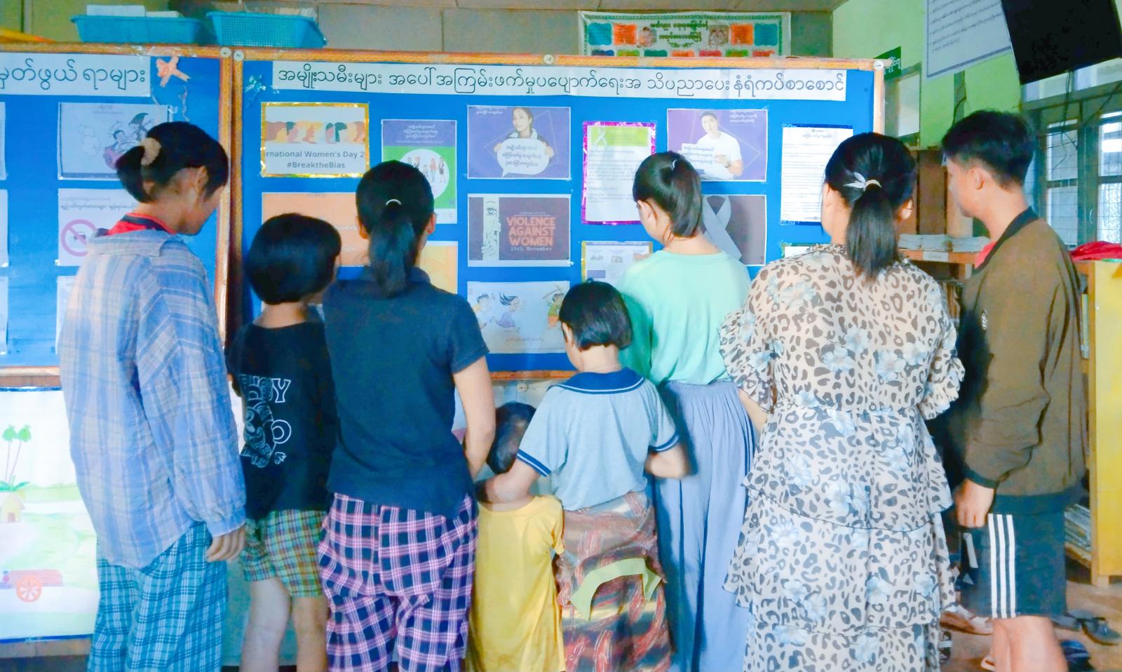 ထို့နောက် အမျိုးသမီးများအပေါ်အကြမ်းဖက်မှုပပျောက်ရေး အသိပညာပေးနံရံကပ်စာစောင် ပြသဆောင်ရွက်ထားရှိမှုအား ဒေသနေပြည်သူများနှင့် ကျောင်းသား/ကျောင်းသူများက လေ့လာကြည့်ရှုမှတ်သားခဲ့ကြကြောင်း သိရသည်။