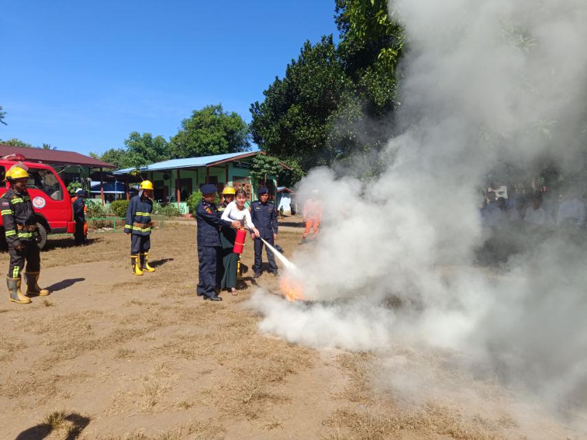 ရှေးဦးစွာ ဖာပွန်ခရိုင် မီးသတ်ဦးစီးဌာနမှ လက်ထောက်ညွှန်ကြားရေးမှူး ဦးကျော်ကျော်အောင်က မီးဘေးအန္တရာယ်ကြိုတင်ကာကွယ်နိုင်ရေးနှင့် မီးဘေးအန္တရာယ် ပေါ်ပေါက်လာပါက မီးသတ်ဆေးဗူးသုံးစွဲပြီး အလျင်အမြန် မီးငြှိမ်းသတ်နိုင်ရေးအတွက် မီးသတ်ဆေးဗူးသုံးစွဲပုံ နည်းစနစ်များကို အသေးစိတ်ရှင်းလင်းပြောကြားသည်။ ထို့နောက် မီးသတ်တပ်ဖွဲ့ဝင်များက အသက်ကယ်ကြိုးကူးနည်းများကို လက်တွေ့သရုပ်ပြသကြပြီး အခြေခံပညာကျောင်းသား၊ ကျောင်းသူများက မီးငြှိမ်းသတ်နည်းများကို ဇာတ်တိုက် လေ့ကျင့်သရုပ်ပြသခဲ့ကြသည်။