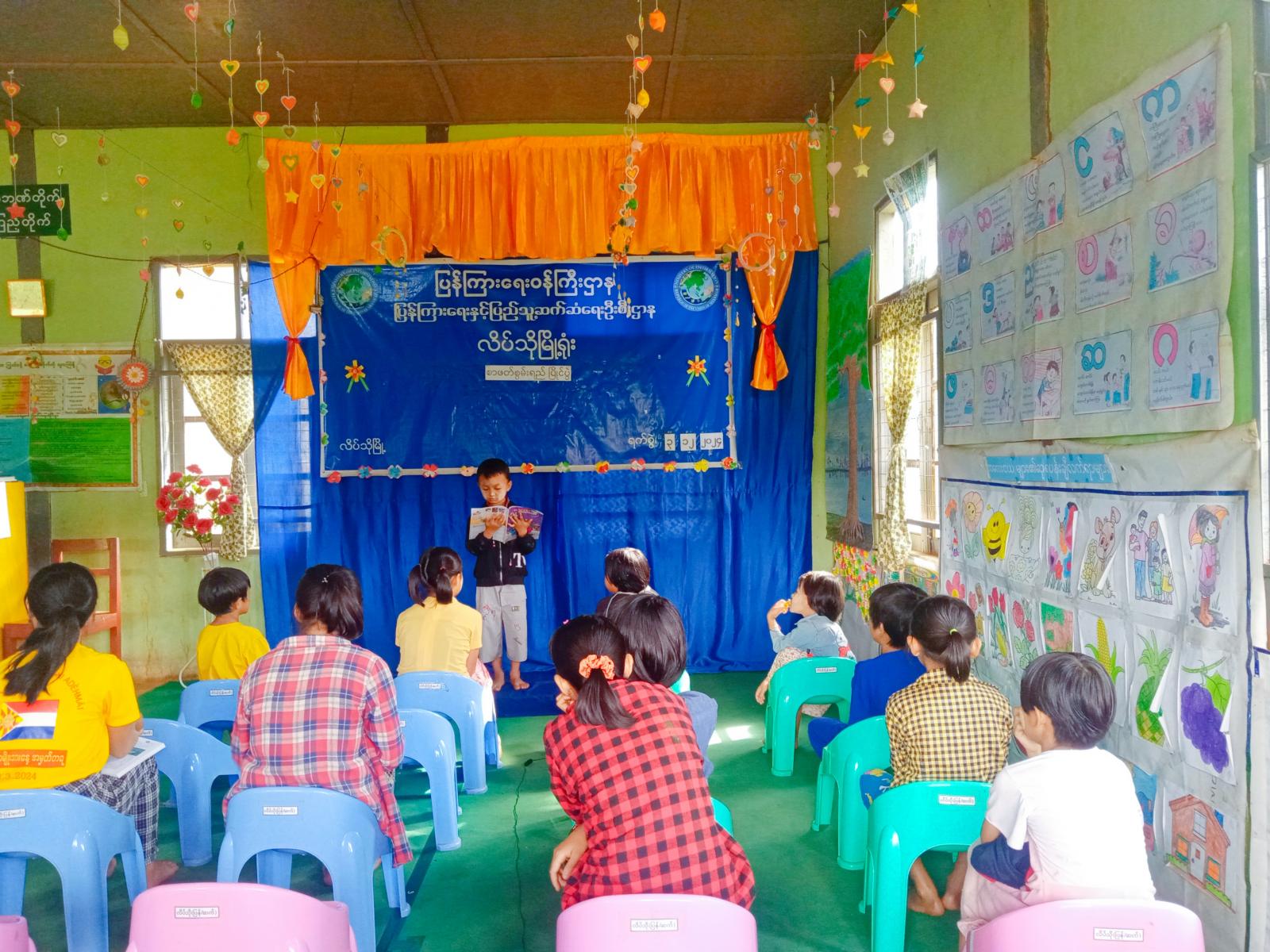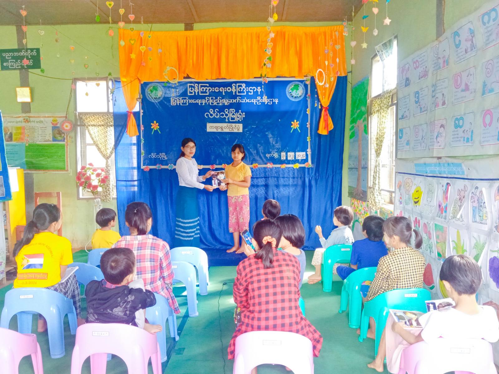 ဆက်လက်၍ မူလတန်းအဆင့် ကျောင်းသား/ ကျောင်းသူများက ပုံပြင်ပြောပြိုင်ပွဲ၊ ကဗျာရွတ်ဆိုပြိုင်ပွဲနှင့် စာဖတ်စွမ်းရည်ပြိုင်ပွဲများကို ခေါင်းစဉ်အလိုက် ပါဝင်ယှဉ်ပြိုင်ခဲ့ကြသည်။ ပြိုင်ပွဲအပြီးတွင် ပါဝင်ယှဉ်ပြိုင်ကြသည့် ကျောင်းသား/ ကျောင်းသူများအား မြို့နယ်ဦးစီးမှူး ဒေါ်နွယ်နွယ်ခိုင်က ကျောင်းသုံးဗလာစာအုပ်များနှင့် ဘောလ်ပင်များကို အမှတ်တရ ပေးအပ်ခဲ့ပြီး အာဟာရမုန့်များ တိုက်ကျွေးခဲ့ကြကြောင်း သိရသည်။