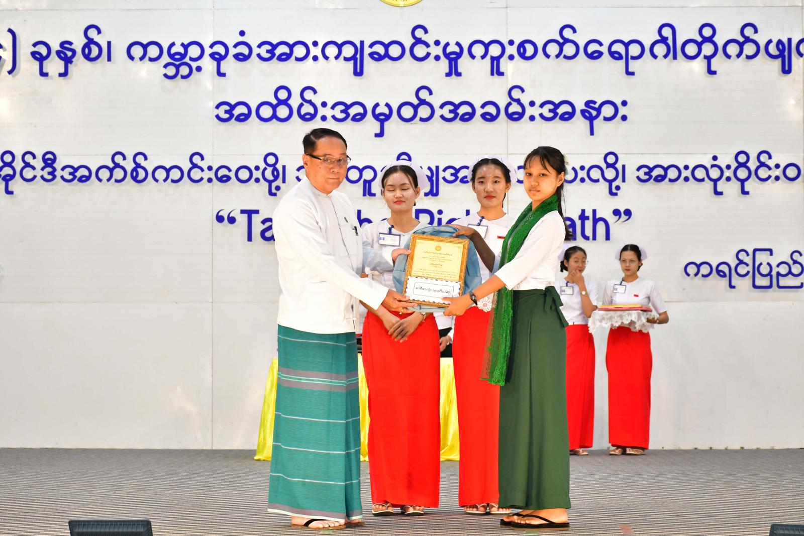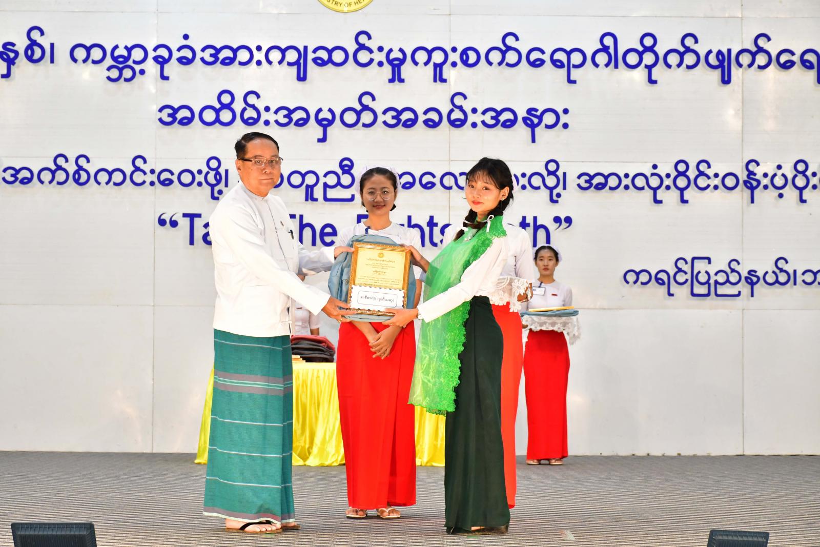 ထို့နောက် ပြည်နယ်ဝန်ကြီးချုပ်၊ ပြည်နယ်မိခင်နှင့်ကလေးစောင့်ရှောက်မှုကြီးကြပ်ရေးအဖွဲ့နာယက၊ ပြည်နယ်တရားလွှတ်တော်တရားသူကြီးချုပ်၊ ပြည်နယ်အစိုးရအဖွဲ့ဝင်များက ကမ္ဘာ့ခုခံအားကျဆင်းမှုကူးစက်ရောဂါတိုက်ဖျက်ရေးနေ့အထိမ်းအမှတ် အခြေခံပညာအထက်တန်း၊ အလယ်တန်း၊ မူလတန်းအဆင့် စာစီစာကုံး၊ ပိုစတာ၊ ပန်းချီ ပြိုင်ပွဲ များတွင် ပထမ၊ ဒုတိယ၊ တတိယ ဆုရရှိကြသူများအား ဂုဏ်ပြုဆုများ ပေးအပ်ချီးမြှင့်ကြပြီး စုပေါင်းမှတ်တမ်းဓာတ်ပုံများ ရိုက်ကူးကြသည်။