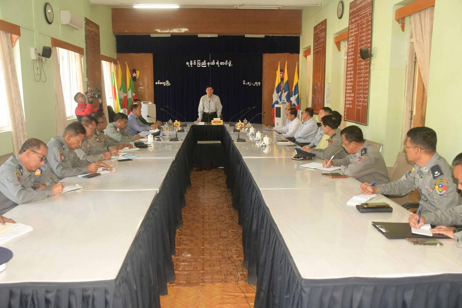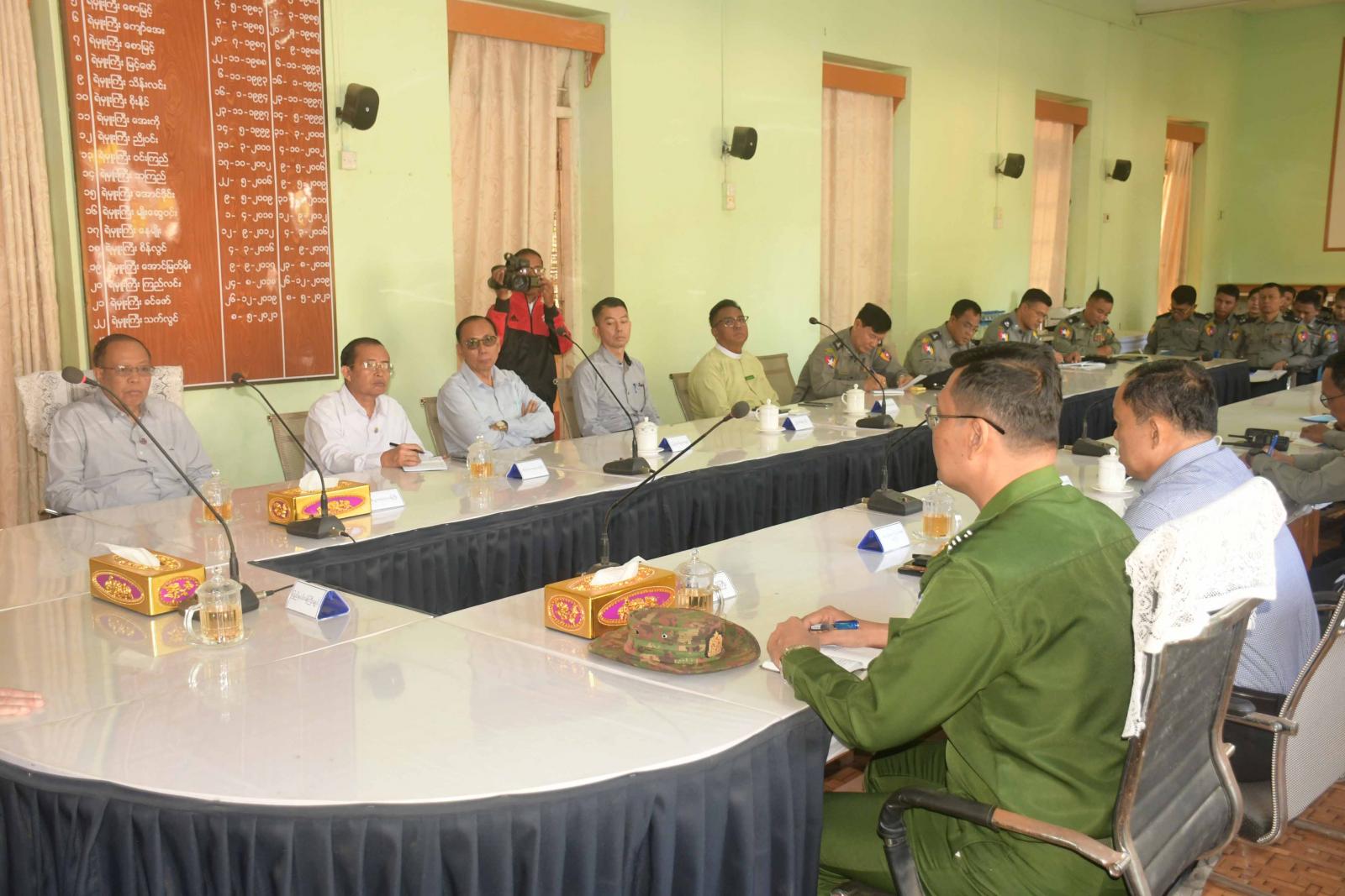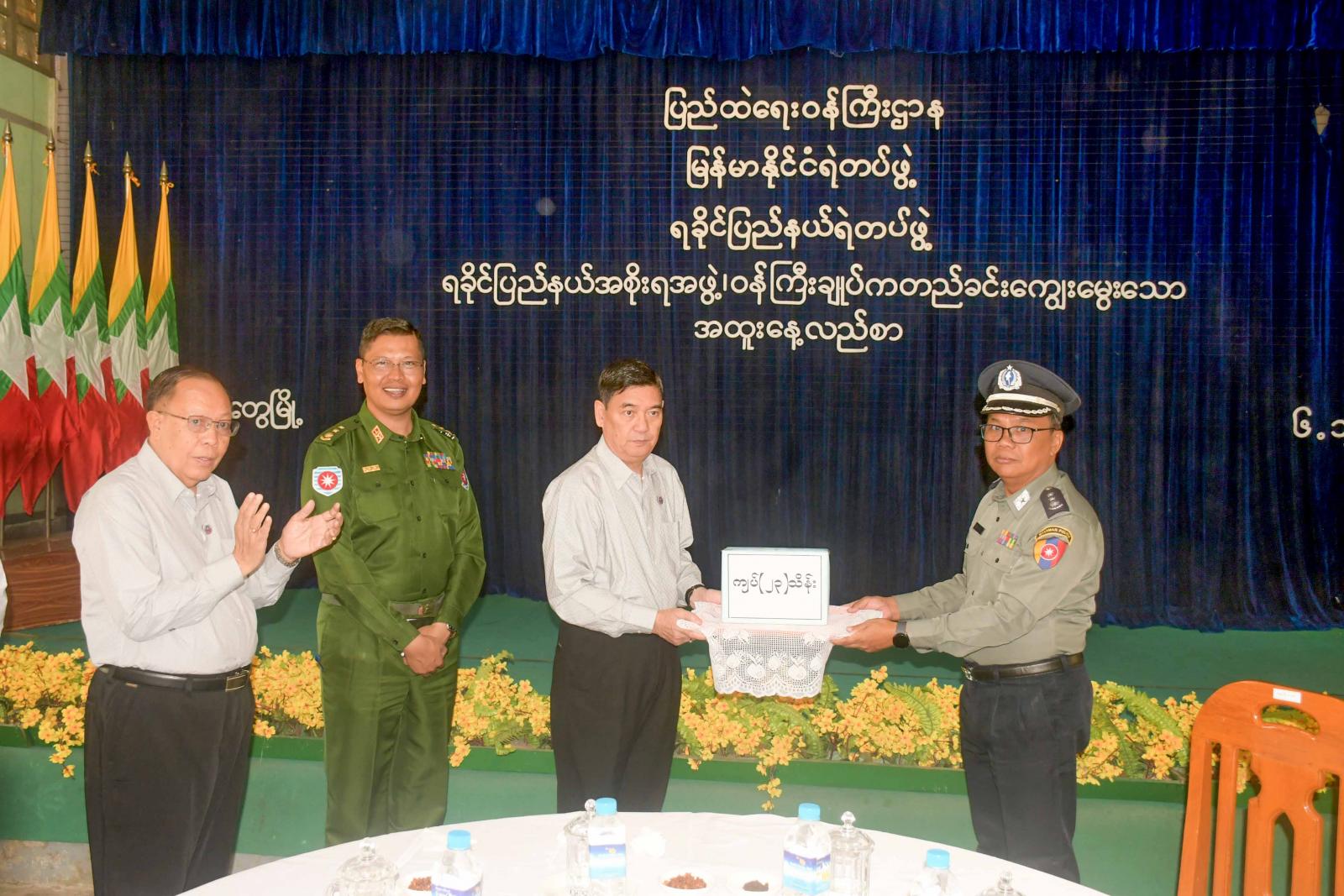 ထို့နောက် ပြည်နယ်ဝန်ကြီးချုပ်နှင့်အဖွဲ့သည် ရခိုင်ပြည်နယ်ရဲတပ်ဖွဲ့မှူးရုံးသို့သွားရောက်ပြီး အစည်းအဝေးခန်းမ၌ အရာရှိတပ်ဖွဲ့ဝင်များနှင့်တွေ့ဆုံကြသည်။ တွေ့ဆုံစဉ် ပြည်နယ်ဝန်ကြီးချုပ်က ပြည်နယ်တစ်ခုဖွံ့ဖြိုးတိုးတက်ရန်အတွက် လုံခြုံရေးနှင့်တရားဥပဒေစိုးမိုးရေးသည် အဓိကကျကြောင်း၊ တည်ငြိမ်အေးချမ်းမှုရှိမှ ဒေသဖွံ့ဖြိုးတိုးတက်မည်ဖြစ်ပြီး ဖွံ့ဖြိုးတိုးတက်မှုရှိမှလည်း ဒေသတည်ငြိမ်အေးချမ်းမည်ဖြစ်ကြောင်း၊ ရဲတပ်ဖွဲ့ဝင်များသည် ဒေသတည်ငြိမ်ရေးတရားဥပဒေစိုးမိုးရေးအတွက် တာဝန်ထမ်းဆောင်နေကြသူများဖြစ်ကြောင်း၊ ရဲတပ်ဖွဲ့ဝင်များသည် အချင်းချင်းစည်းစည်းလုံးလုံး ညီညီညွတ်ညွတ်နှင့် တပ်ဖွဲ့စိတ်ရှိရန်လိုကြောင်း၊ ထို့ပြင် မိမိတို့လုပ်ငန်းအပေါ်တွင် ကျွမ်းကျင်မှုရှိရန် လေ့ကျင့် ဆောင်ရွက်ရမည်ဖြစ်ကြောင်း၊ သို့မှသာ ပေးအပ်သည့်တာဝန်များကို ယုံကြည်စိတ်ချစွာ ထမ်းဆောင်နိုင်မည်ဖြစ်ကြောင်း၊ အထက်အရာရှိများ၏ အတွေ့အကြုံများကိုရယူကာ ကြိုးစားဆောင်ရွက်ကြစေလိုကြောင်းနှင့် ရဲတပ်ဖွဲ့၏လုပ်ငန်းတာဝန်များ အောင်မြင်ရန်အတွက် တပ်ဖွဲ့ဝင်များနှင့်အတူ မိသားစုသဖွယ် စည်းစည်းလုံးလုံးပူးပေါင်း ဆောင်ရွက်သွားကြရမည်ဖြစ်ကြောင်းပြောကြားသည်။
