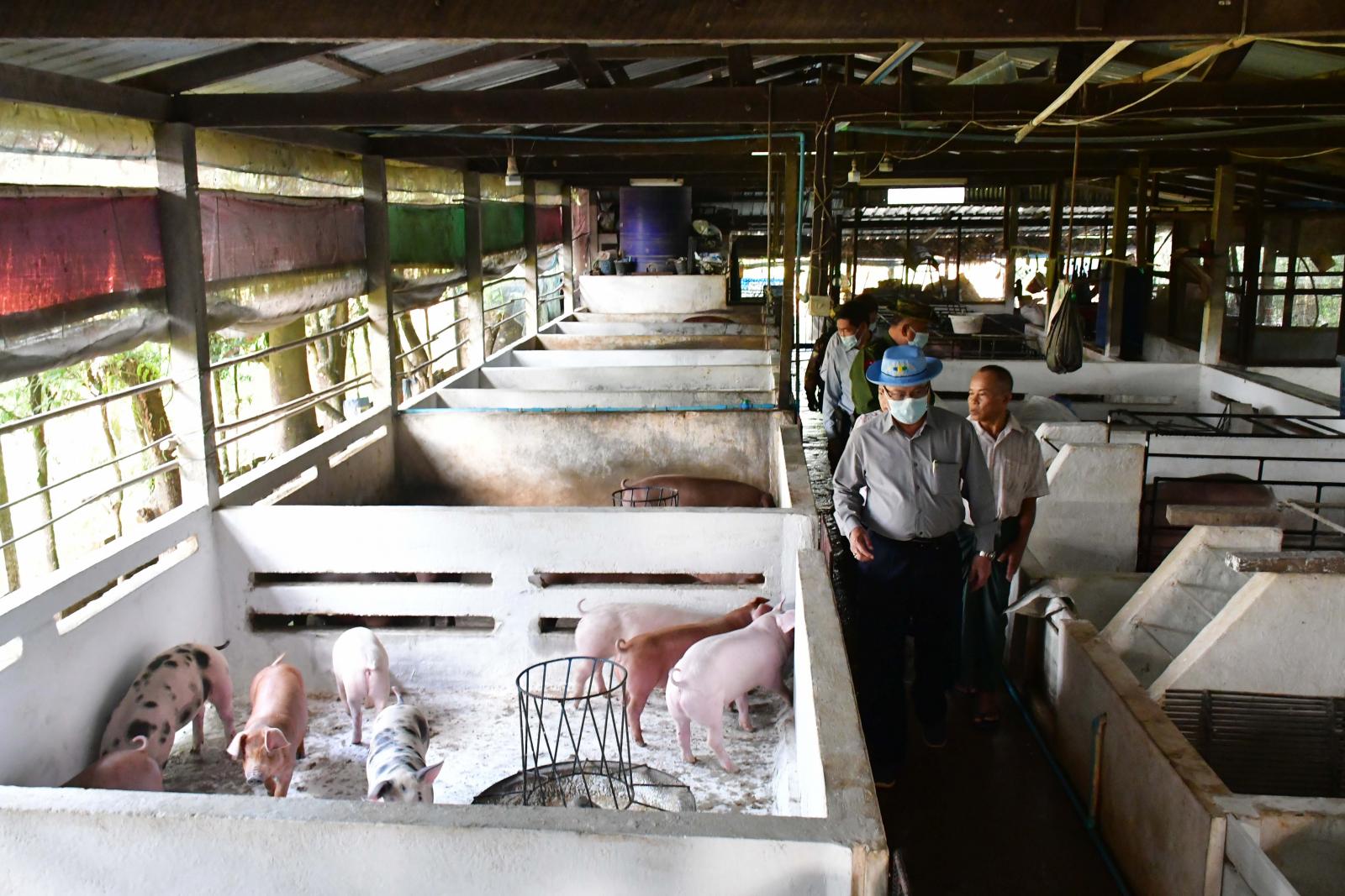 ထို့အတူ ပြည်နယ်ဝန်ကြီးချုပ်နှင့်အဖွဲ့သည် ထုံးအိုင်တိုက်နယ်၊ နောင်ထလုံးကျေးရွာရှိ တောင်သူဦးစံသိန်း၏ အသားတိုးဝက် (DYL) (၄၁)ကောင်မွေးမြူရေးခြံအား သွားရောက်ကြည့်ရှုအားပေးပြီး တိုးချဲ့မွေးမြူနိုင်ရေး လိုအပ်သည့်အရင်းအနှီးနှင့် မြေနေရာများထောက်ပံ့ပေးနိုင်ရန် ဆွေးနွေးပြောကြားကာ မွေးမြူရေးနှင့်ကုသရေးဦးစီးဌာနမှ အခမဲ့ထောက်ပံ့သော တိရစ္ဆာန်ဆေးဝါးများကို ပေးအပ်ခဲ့သည်။