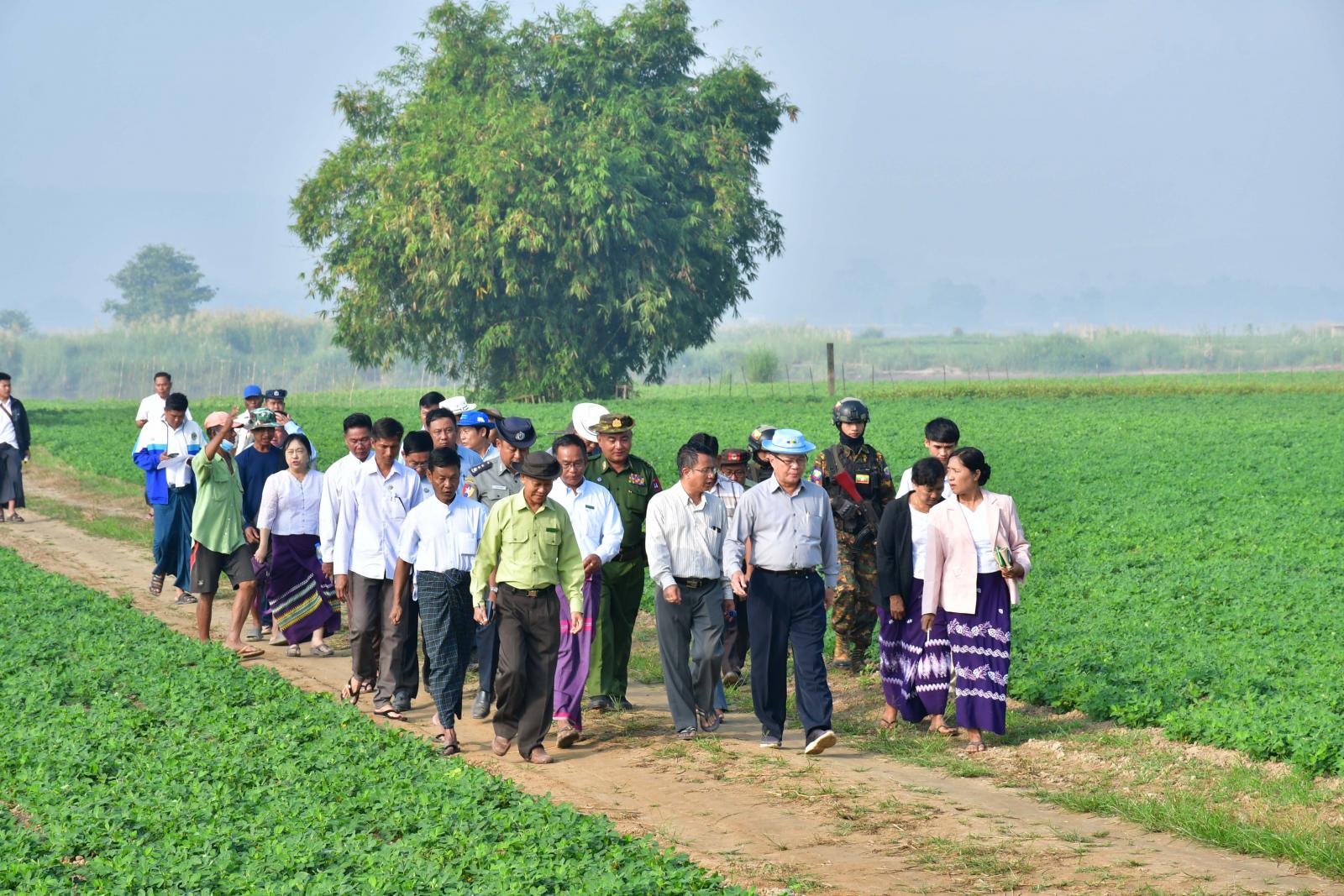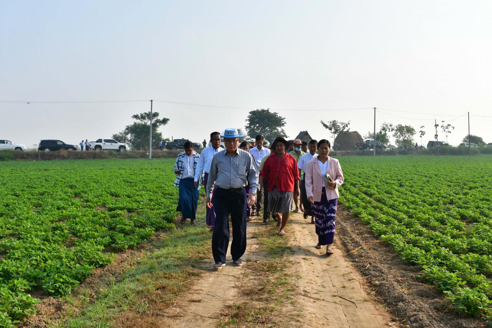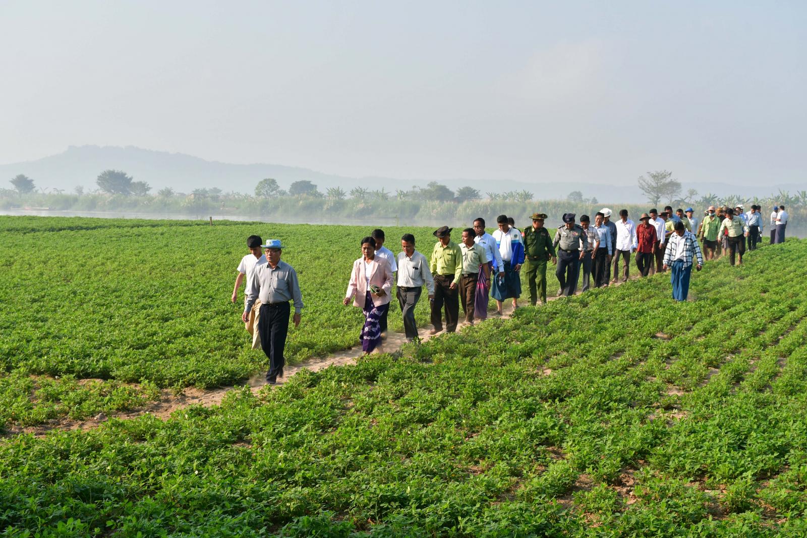 ဦးစွာ ပြည်နယ်ဝန်ကြီးချုပ်၊ ပြည်နယ်လုံခြုံရေးနှင့်နယ်စပ်ရေးရာဝန်ကြီး၊ ပြည်နယ်အစိုးရအဖွဲ့ဝင်များနှင့် ဌာနဆိုင်ရာတာဝန်ရှိသူများသည် ထုံးအိုင်တိုက်နယ်အတွင်းရှိ ဆောင်းမြေပဲတစ်ကွင်းတစ်ဆက်တည်း ဧက(၆၀၀) စိုက်ခင်းအား လှည့်လည်ကြည့်ရှုအားပေးရာ ပြည်နယ်စိုက်ပျိုးရေးဦးစီးဌာန၊ မြေစာရင်းဦးစီးဌာနနှင့် ဌာနဆိုင်ရာတာဝန်ရှိသူများက ထုံးအိုင်တိုက်နယ်အတွင်း ဆောင်းသီးနှံစိုက်ပျိုးထုတ်လုပ်မှု အခြေအနေများကို ရှင်းလင်းတင်ပြပြီး ပြည်နယ်ဝန်ကြီးချုပ်က စိုက်ပျိုးတောင်သူများနှင့်တွေ့ဆုံ၍ လိုအပ်ချက်များ မေးမြန်းဆွေးနွေးကာ မြေလွတ်မြေလပ်မချန်ဘဲ စဉ်ဆက်မပြတ် စိုက်ပျိုးထုတ်လုပ်မှသာ နိုင်ငံ့စီးပွားမြှင့်တင်ရေးကို အထောက်အကူပြုနိုင်မည်ဖြစ်သည့်အတွက် လိုအပ်မသည့် ငွေကြေးအရင်းအနှီး၊ နည်းပညာ၊ ဈေးကွက်၊ မြေနေရာ၊ စက်ပစ္စည်းနှင့် လူ့စွမ်းအားအရင်းအမြစ်များ ဖြည့်ဆည်းပံ့ပိုးပေးနိုင်ရေး တာဝန်ရှိသူများအား မှာကြားသည်။