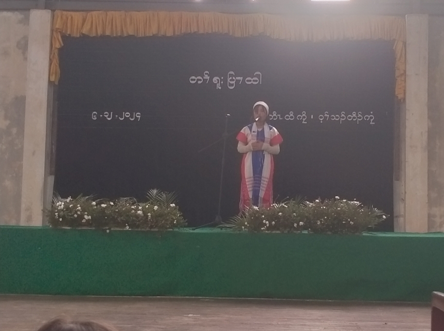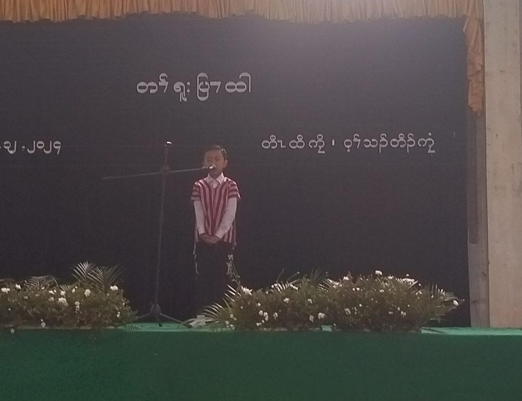 ဆက်လက်ပြီး အထက်တန်း၊ အလယ်တန်း၊ မူလတန်းအဆင့် စကောကရင်ဘာသာ ကဗျာရွတ်ပြိုင် ပွဲကိုပြုလုပ်ရာ ကျောင်းသူ/ကျောင်းသား(၅၀)ဦးတို့က ဝင်ရောက်ပါဝင်ယှဉ်ပြိုင်ခဲ့ကြပြီး ဆုရရှိသည့် ကျောင်းသူ/ကျောင်းသားများအား တာဝန်ရှိသူများက ဆုများအသီးသီး ချီးမြှင့်ပေးအပ်ခဲ့ကြောင်း သိရသည်။