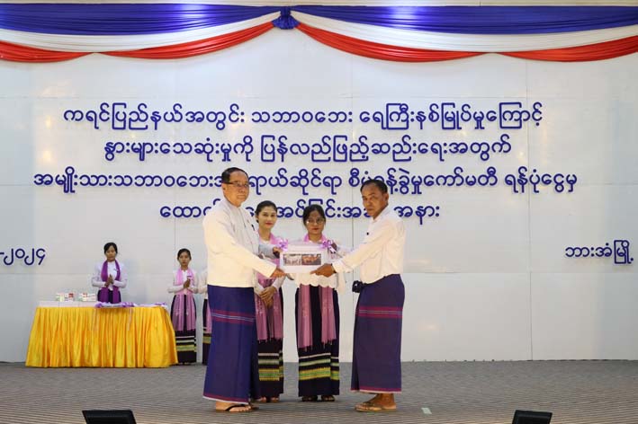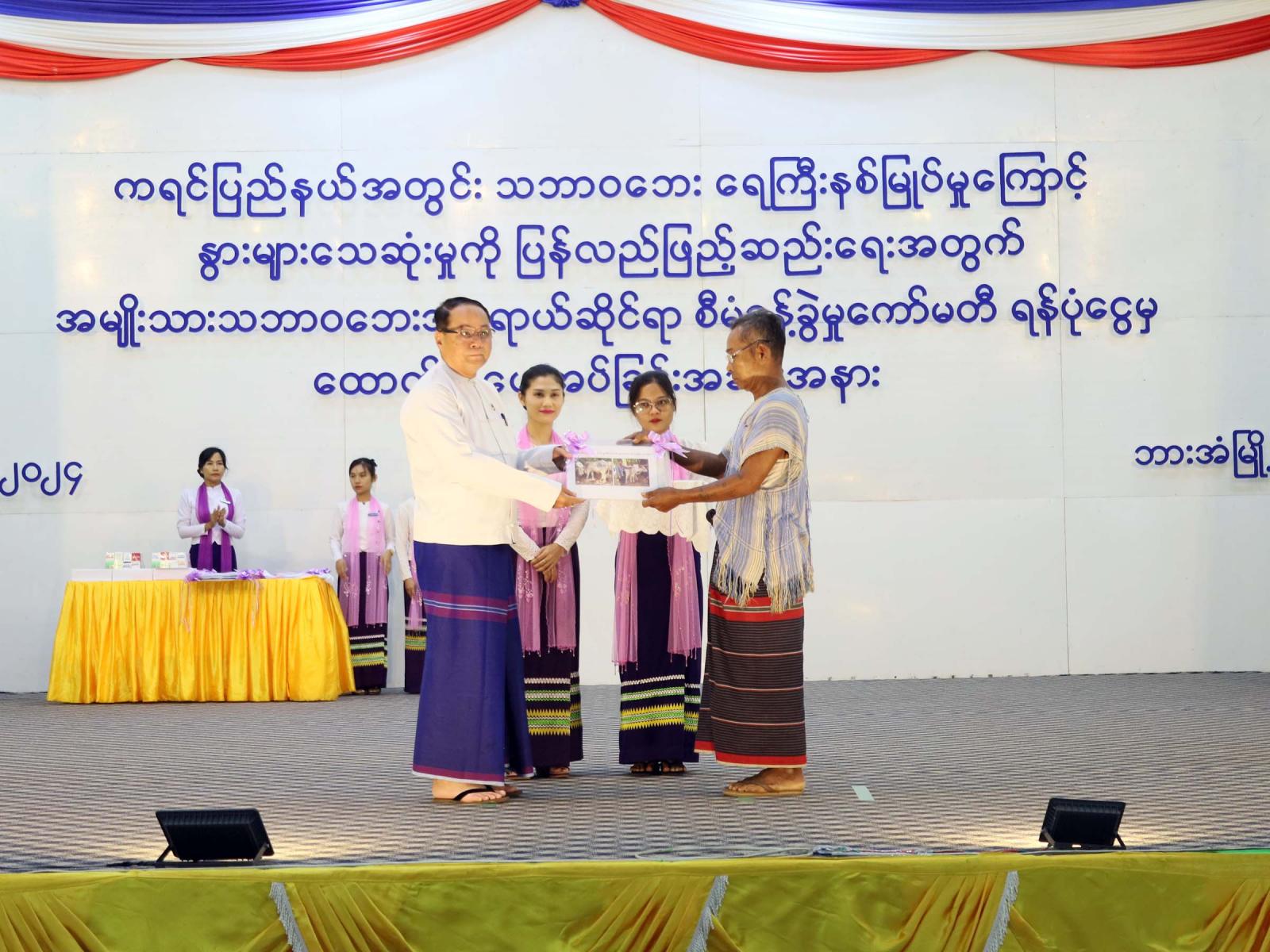 ကရင်ပြည်နယ်အတွင်း ယခုနှစ် ဇူလိုင်လတွင်တစ်ကြိမ်၊ စက်တင်ဘာလတွင်တစ်ကြိမ် မိုးသည်းထန်စွာ အဆက်မပြတ် ရွာသွန်းမှုကြောင့် မြစ်ရေချောင်းရေကြီးခြင်းနှင့်အတူ ရေကြီးရေလျှံ သဘာဝဘေးဒဏ်ကြောင့် လူနှင့်တိရစ္ဆာန်များ ရေဘေးဒဏ်ခံစားခဲ့ရပြီး ယမန်နေ့ မွန်းလွဲ ၂ နာရီက နွားများသေဆုံးမှုကို ပြန်လည်ဖြည့်ဆည်းရေးအတွက် ဘားအံမြို့၊ ဇွဲကပင်ခန်းမ၌ တိရစ္ဆာန်နှင့် ဆေးများထောက်ပံ့ပေးအပ်ခဲ့သည်။