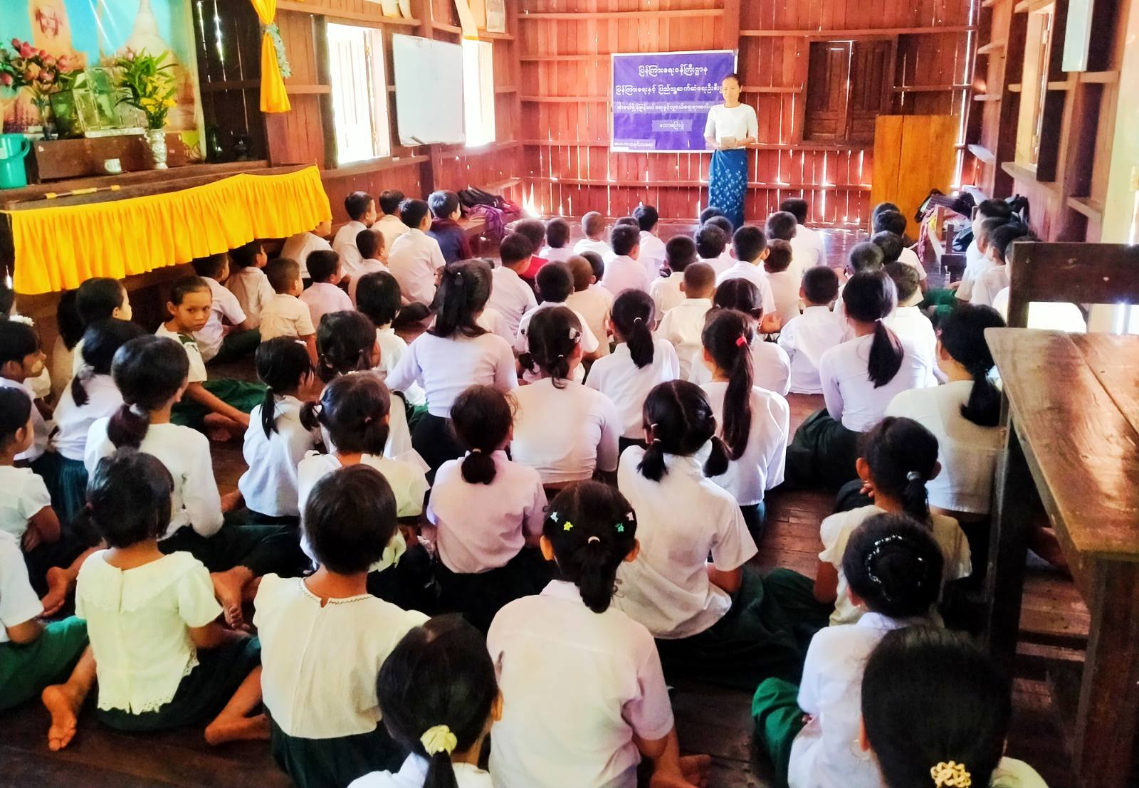 ရှေးဦးစွာ ပြန်ကြားရေးနှင့်ပြည်သူ့ဆက်ဆံရေးဦးစီးဌာနမှ မြို့နယ်ဦးစီးမှူး ဒေါ်နော်ခူးခူးက အသိပညာပေးလုပ်ငန်းများဆောင်ရွက်ရခြင်း၏ ရည်ရွယ်ချက်များကို ရှင်းလင်းပြောကြားပြီး ကျောင်းသား/ သူများ မြန်မာနိုင်ငံ၏သမိုင်း ကြောင်းများကိုသိရှိစေရန်၊ နေ့ထူးနေ့မြတ်များကို အစဉ်အမြဲအောက်မေ့သတိရစေရန်နှင့် အသိပညာဗဟုသုတ ရရှိစေရန်ရည်ရွယ်၍ အသိပညာ ပေးလုပ်ငန်းများဆောင်ရွက် ပေးခြင်းဖြစ်ကြောင်း၊ မြန်မာနိုင်ငံ၏ သမိုင်းတွင် နေ့ထူးနေ့မြတ်များစွာရှိသည့်အနက် လွတ်လပ်ရေးနေ့သည် အမျိုးသားရေးစိတ်ဓာတ်ကို မြှင့်တင်ပေးသည့် နေ့ထူးနေ့မြတ်ဖြစ်ကြောင်း၊ လွတ်လပ်ရေးနေ့၏အဓိပ္ပာယ်၊ လွတ်လပ်ရေးနေ့ဖြစ်ပေါ်လာပုံ၊ လွတ်လပ်ရေးနေ့ကျင်းပုံနှင့် ကျောင်းသားလူငယ်များအနေဖြင့် အမျိုးသားရေးစိတ်ဓာတ်ရှိစေရေးနှင့် စည်းကမ်းပြည့်ဝပြီး အနာဂတ်တွင် လူတော်လူကောင်းဖြစ်စေရေး အကြောင်းကို အကျယ်တဝင့် ရှင်းလင်းဟောပြောခဲ့သည်။