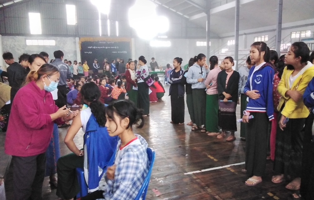 ကရင်ပြည်နယ်၊ သံတောင်ကြီးမြို့နယ် မြို့နယ်ပြည်သူ့ကျန်းမာရေးဦးစီးဌာနမှ ကျောင်းသူ/ကျောင်းသားများအား ဆုံဆို့မေးခိုင်ကာကွယ်ဆေး (DT)နှင့် သားအိမ်ခေါင်းကင်ဆာ ကာကွယ်ဆေး (HPV) ထိုးနှံခြင်းကို ယမန်နေ့နေ့လယ်(၁)နာရီအချိန်က သံတောင်ကြီးမြို့ အခြေခံပညာအထက်တန်းကျောင်းတွင် ထိုးနှံပေးခဲ့ကြောင်း သိရသည်။