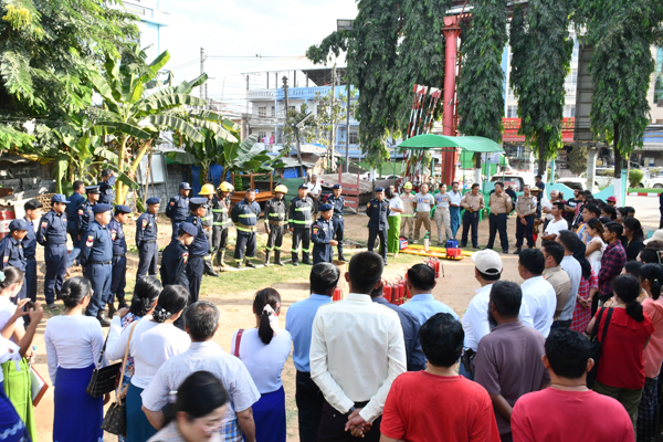 ကရင်ပြည်နယ်၊ မြဝတီခရိုင်မီးသတ်ဦးစီးဌာနနှင့် မြို့နယ်စည်ပင်သာယာရေးအဖွဲ့တို့ ပူးပေါင်း၍ ဈေးတာဝန်ခံ၊ ဈေးသူဈေးသားများနှင့်အတူ ဘုရင့်နောင်ဈေးကြီးအတွင်း၌ ယမန်နေ့ညနေ ၃ နာရီက မီးဘေးအန္တရာယ်ကြိုတင်ကာကွယ်ရေး ဇာတ်တိုက်လေ့ကျင့်မှု သရုပ်ပြပွဲ ကျင်းပသည်။