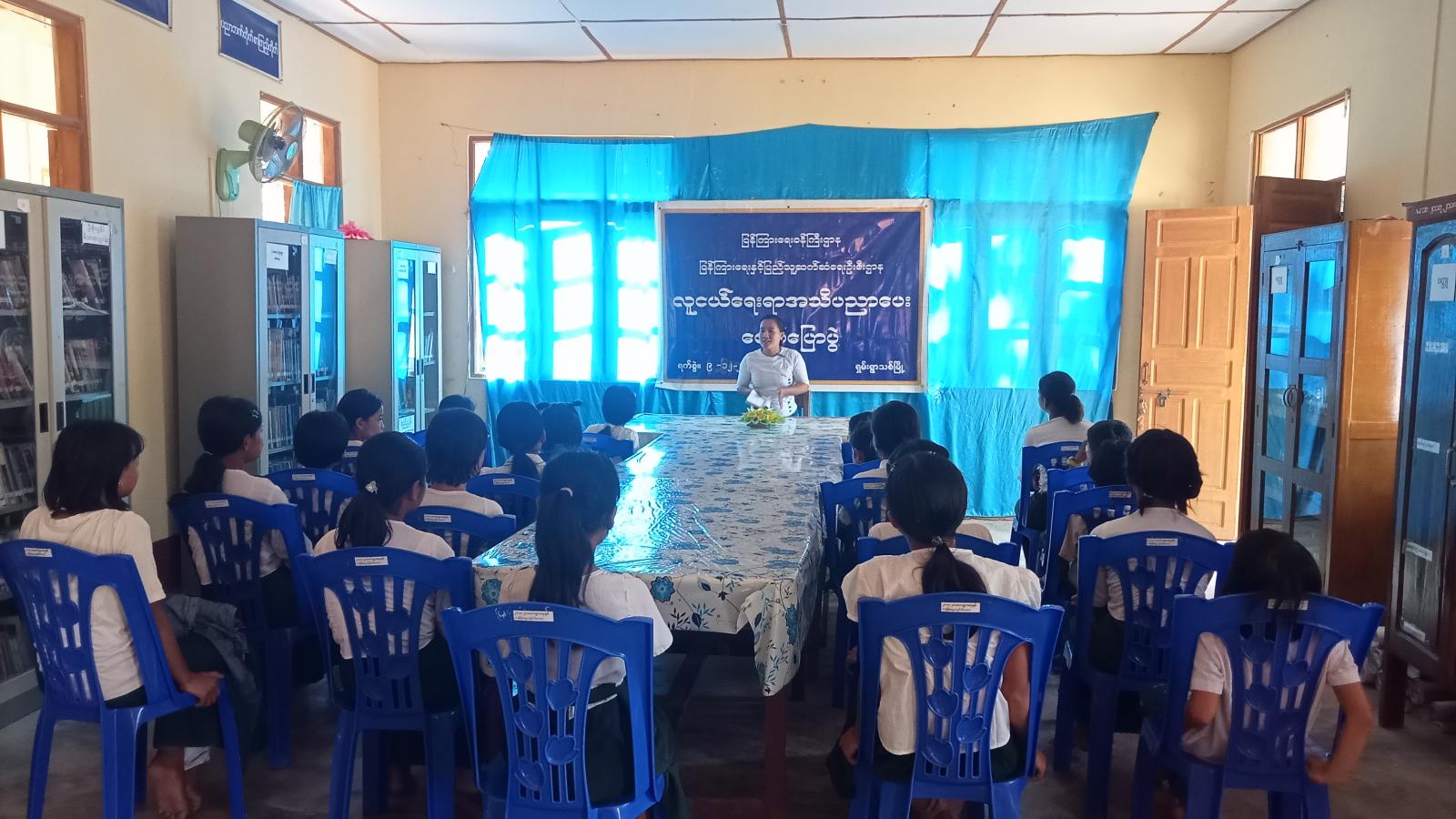 ထို့နောက် မြို့နယ်ဦးစီးမှူး ဒေါ်ဇင်မိုးအေးက၊ လူငယ်နှင့်စာရိတ္တ၊ လူငယ်နှင့်စာဖတ်ခြင်းခေါင်းစဉ်များဖြင့် ကျောင်းသား/ သူများအား အသိပညာပေးဟောပြောခဲ့ပြီး ကျောင်းသား/ သူများက မိမိတို့သိရှိလိုသည်များကို မေးမြန်းဆွေးနွေးဖြေကြားခဲ့ကြောင်း သိရသည်။