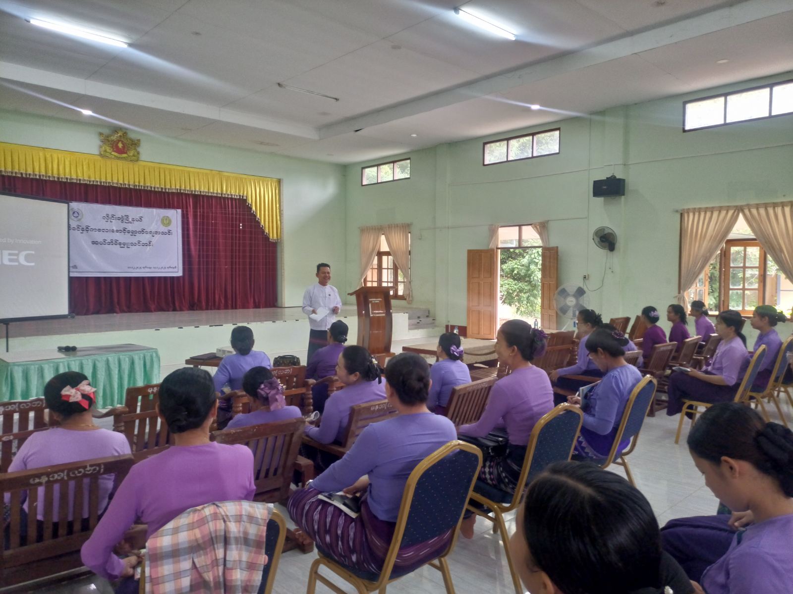 ကရင်ပြည်နယ်၊ ဘားအံခရိုင်၊ လှိုင်းဘွဲမြို့နယ်တွင် မြို့နယ်ပြည်သူ့ကျန်းမာရေးဦးစီးဌာနနှင့်မိခင်နှင့် ကလေးစောင့်ရှောက်ရေးအသင်းတို့ ပူးပေါင်း၍ ဖွင့်လှစ်သော ဆယ်အိမ်စုမှူးသင်တန်းတွင် ဌာနဆိုင်ရာတာဝန်ရှိသူများက မိမိရပ်ကွက်ကျေးရွာများတွင် ပြည်သူများ သိရှိသိထိုက်သော ကျန်းမာရေးဆိုင်ရာများ၊ ကလေးသူငယ်အခွင့်အရေးများ၊ သက်ကြီးဘိုးဘွားများအား နိုင်ငံတော်မှ ထောက်ပံ့ပေးနေမှုများ၊ ဘေးအန္တရာယ်ဆိုင်ရာများကို သိရှိနိုင်စေရန်အတွက် သင်ခန်းစာများကို ယနေ့နံနက်ပိုင်းက သင်ကြားပို့ချပေးလျက်ရှိကြောင်း သိရသည်။