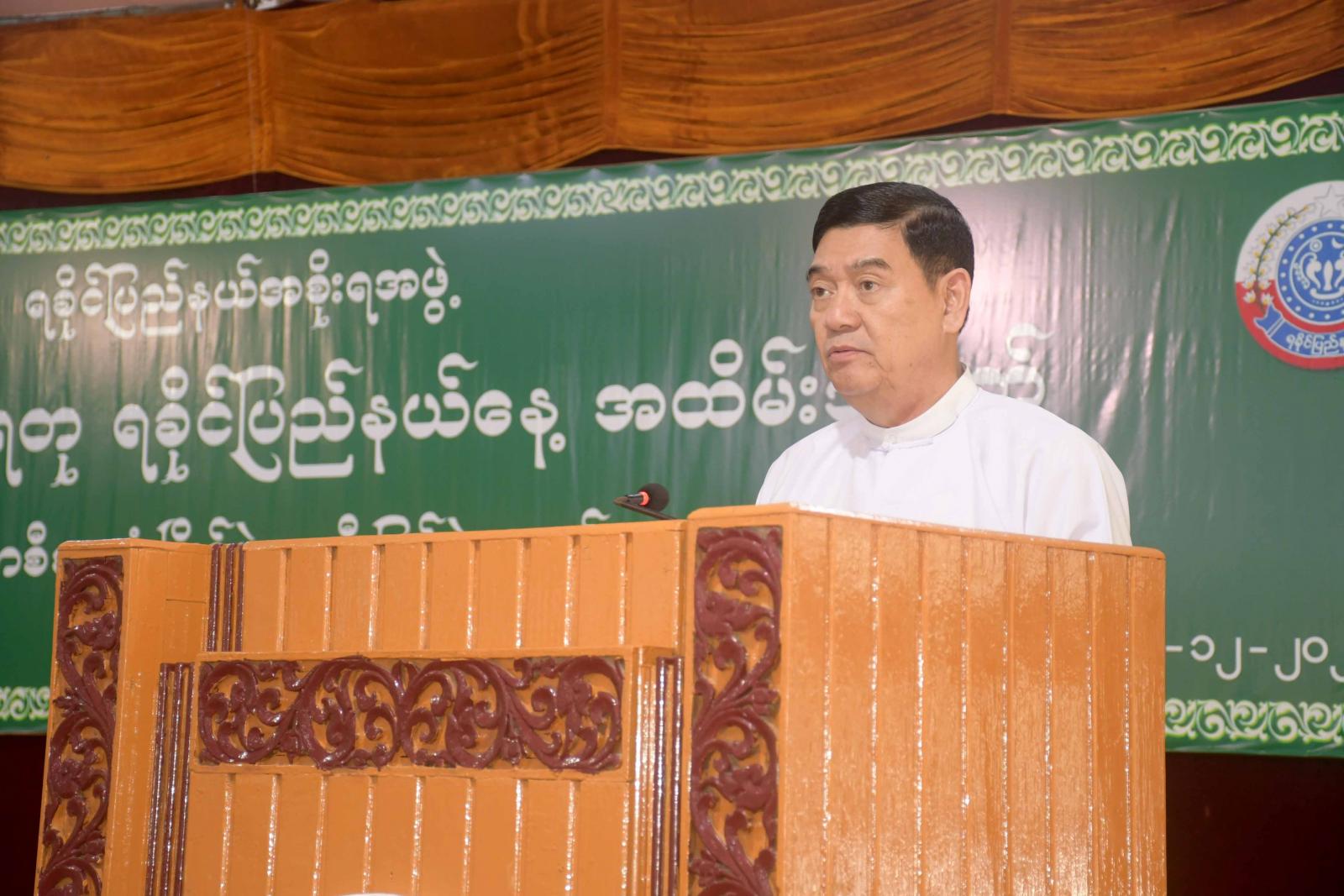 အခမ်းအနားတွင် ရခိုင်ပြည်နယ်ဝန်ကြီးချုပ်က နှစ် (၅၀) ပြည့် ရွှေရတုရခိုင်ပြည်နယ်နေ့ အထိမ်းအမှတ်ဆောင်းပါးပြိုင်ပွဲနှင့် စာစီစာကုံးပြိုင်ပွဲများတွင် ဆုရရှိကြသူများကို ဆုချီးမြှင့်သည့်ပွဲဖြစ်သည့်အတွက် ထူးခြားပြီးအမှတ်တရဖြစ်ရမည့်နေ့ဖြစ်ကြောင်း၊ ယခုနှစ်တွင် အားကစားပြိုင်ပွဲများနှင့်ဆောင်းပါးပြိုင်ပွဲ၊ စာစီစာကုံးပြိုင်ပွဲများကျင်းပပြီး ဆောင်းပါးပြိုင်ပွဲကျင်းပရခြင်း၏ ရည်ရွယ်ချက်မှာ ရခိုင်ပြည်နယ်နှင့်ပတ်သက်သည့် ရခိုင့်နောက်ခံသမိုင်းကြောင်းများ၊ ပထဝီဝင်အနေအထားများနှင့် ရခိုင်ပြည်နယ်၏ လက်ရှိဖြစ်ပေါ်တိုးတက်နေမှုများကို ပြိုင်ပွဲဝင်များလေ့လာသိရှိခြင်းဖြင့် ရခိုင်ပြည်နယ်နှင့်ပတ်သက်သည့် ဗဟုသုတများကို လေ့လာသိရှိသွားစေရန်ဖြစ်ကြောင်း၊ စာစီစာကုံးပြိုင်ပွဲများ ကျင်းပရသည့်ရည်ရွယ်ချက်မှာလည်း အခြေခံပညာကျောင်းသား၊ ကျောင်းသူများအနေဖြင့် ဘဝ၏ အချိုးအကွေ့ဟုခေါ်သော တက္ကသိုလ်ဝင်တန်းကို ဖြေဆိုသည့်အခါ မြန်မာစာဘာသာရပ်တွင် စာစီစာကုံးကိုလည်း ဖြေဆိုကြရမည်ဖြစ်သည့်အတွက်ကြောင့် စာစီစာကုံးရေးသားသော အလေ့အကျင့်ကောင်းဖြစ်ပေါ်စေရန် ရည်ရွယ်ပြီး စီစဉ်ဆောင်ရွက်ပေးခြင်းဖြစ်ကြောင်း၊ ကျောင်းသား၊ ကျောင်းသူများအနေဖြင့် ယခုကတည်းကပင် စာစီစာကုံးကောင်း တစ်ပုဒ်ဖြစ်အောင် စီကုံးရေးသားတတ်သော အတွေ့အကြုံရရှိနိုင်အောင် စာစီစာကုံးပြိုင်ပွဲများကို ပြုလုပ်ရခြင်းလည်းဖြစ်ကြောင်း၊ ဆောင်းပါး ပြိုင်ပွဲသည် အလွတ်တန်းအနေဖြင့် ပြိုင်ပွဲဖြစ်သည့်အတွက် တက္ကသိုလ်ကျောင်းသားများ၊ ဌာနဆိုင်ရာလုပ်ငန်းခွင်မှ ဝန်ထမ်းများ၊ ထို့ပြင် ပြင်ပမှစာပေပညာရှင်များပါ ဝင်ရောက်ယှဉ်ပြိုင်နိုင်အောင် ဆောင်ရွက်ပေးခြင်းဖြစ်သည့်အတွက်ကြောင့် သွယ်ဝိုက်သောနည်းများဖြင့် စာဖတ်ရှိန်မြှင့်တင်ရေးကို ရည်ရွယ်ဆောင်ရွက်ခဲ့ခြင်းဖြစ်ကြောင်း၊ နောင်နှစ်များတွင်လည်း အခါကြီးနေ့ကြီးများတွင် အခါအားလျော်စွာ ပန်းချီပြိုင်ပွဲ၊ စာစီစာကုံးပြိုင်ပွဲ၊ ဆောင်းပါးပြိုင်ပွဲများကို နိုင်ငံတော်အစိုးရက ဆောင်ရွက်သွားရန် ရည်ရွယ်ချက်များရှိကြောင်း၊ နောင်နှစ်ရခိုင်ပြည်နယ်နေ့တွင်လည်း ပြိုင်ပွဲများကို ထည့်သွင်းကျင်းပပေးသွားမည်ဖြစ်သည့်အတွက် ကျောင်းသား၊ ကျောင်းသူများအနေဖြင့် မိမိတို့လက်တစ်ကမ်းတွင် ရှိသောစာကြည့်တိုက်များမှ သုတ၊ ရသ၊ လင်္ကာများကို အခါအားလျော်စွာ ဖတ်ရှုမှတ်သားထားကြရမည်ဖြစ်ကြောင်းနှင့် နှစ်(၅၀)ပြည့် ရွှေရတုရခိုင်ပြည်နယ်နေ့နှင့်အတူ မကြာခင်ရောက်ရှိလာမည့် နှစ်သစ်ကူးကာလတွင် အားလုံးဘေးဘယာကင်းဝေးကြပြီး ရခိုင်ပြည်နယ်၏ဖွံ့ဖြိုးတိုးတက်ရေး၊ နိုင်ငံတော်ကြီးတည်ငြိမ်အေးချမ်