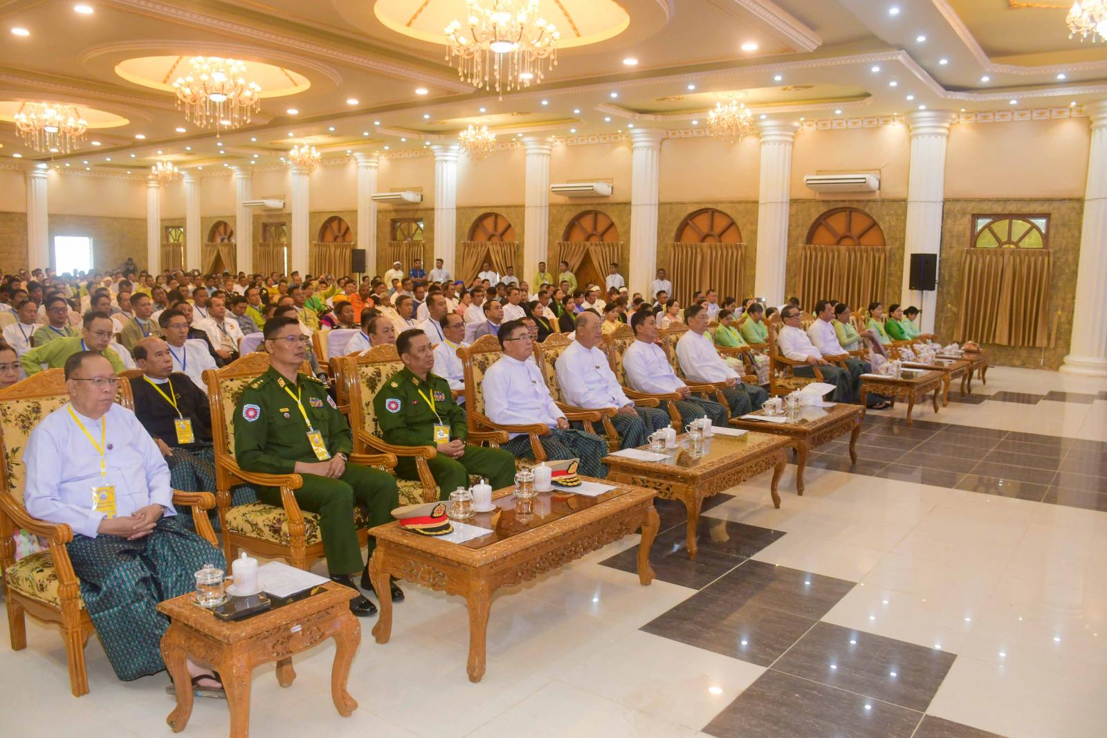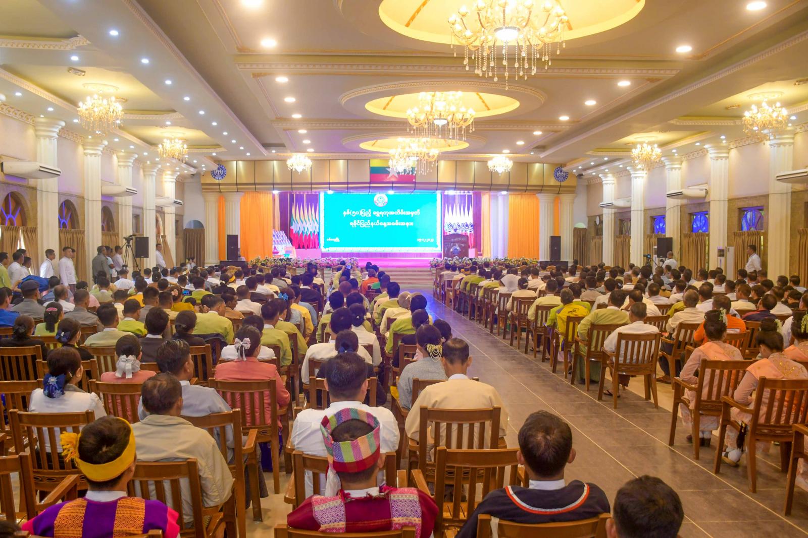 နှစ်(၅၀)ပြည့် ရွှေရတုရခိုင်ပြည်နယ်နေ့အခမ်းအနားကို ယမန်နေ့နံနက်ပိုင်းက စစ်တွေမြို့၊ ဦးဥတ္တမ ခန်းမ၌ကျင်းပရာ နိုင်ငံတော်စီမံအုပ်ချုပ်ရေးကောင်စီအဖွဲ့ဝင်များဖြစ်ကြသော ဒေါက်တာမှုထန်၊ ဒေါက်တာဘရွှေနှင့် ခွန်စံလွင်၊ နယ်စပ်ရေးရာဝန်ကြီးဌာန၊ ပြည်ထောင်စုဝန်ကြီး ဒုတိယဗိုလ်ချုပ်ကြီး ထွန်းထွန်းနောင်၊ တိုင်းရင်းသားလူမျိုးရေးရာဝန်ကြီးဌာန၊ ပြည်ထောင်စုဝန်ကြီး Jeng Phang နော်တောင်၊ ရခိုင်ပြည်နယ်ဝန်ကြီးချုပ် ဦးထိန်လင်းနှင့်ဇနီး ဒေါ်ဆွေဆွေမြတ်၊ ဒုတိယဝန်ကြီးများ ဖြစ်ကြသော ဒေါ်နုမြဇံ၊ ဦးဇော်အေးမောင်၊ နိုင်ငံတော်စီမံအုပ်ချုပ်ရေးကောင်စီ ဗဟိုအကြံပေးအဖွဲ့၊ အဖွဲ့ဝင် ဒေါ်အေးနုစိန်၊ ပြည်နယ်တရားလွှတ်တော်တရားသူကြီးချုပ်၊ ပြည်နယ်အစိုးရအဖွဲ့ဝင်ဝန်ကြီးများ၊ စစ်တွေတပ်နယ်မှ တပ်မတော်အရာရှိကြီးများ၊ ဌာနဆိုင်ရာများ၊ ဖိတ်ကြားထားသည့် ဧည့်သည်တော်များနှင့် ဂုဏ်ထူးဆောင်ဆု၊ ဂုဏ်ပြုမှတ်တမ်းလွှာ ချီးမြှင့်ခြင်းခံရသူ များတက်ရောက်ကြသည်။