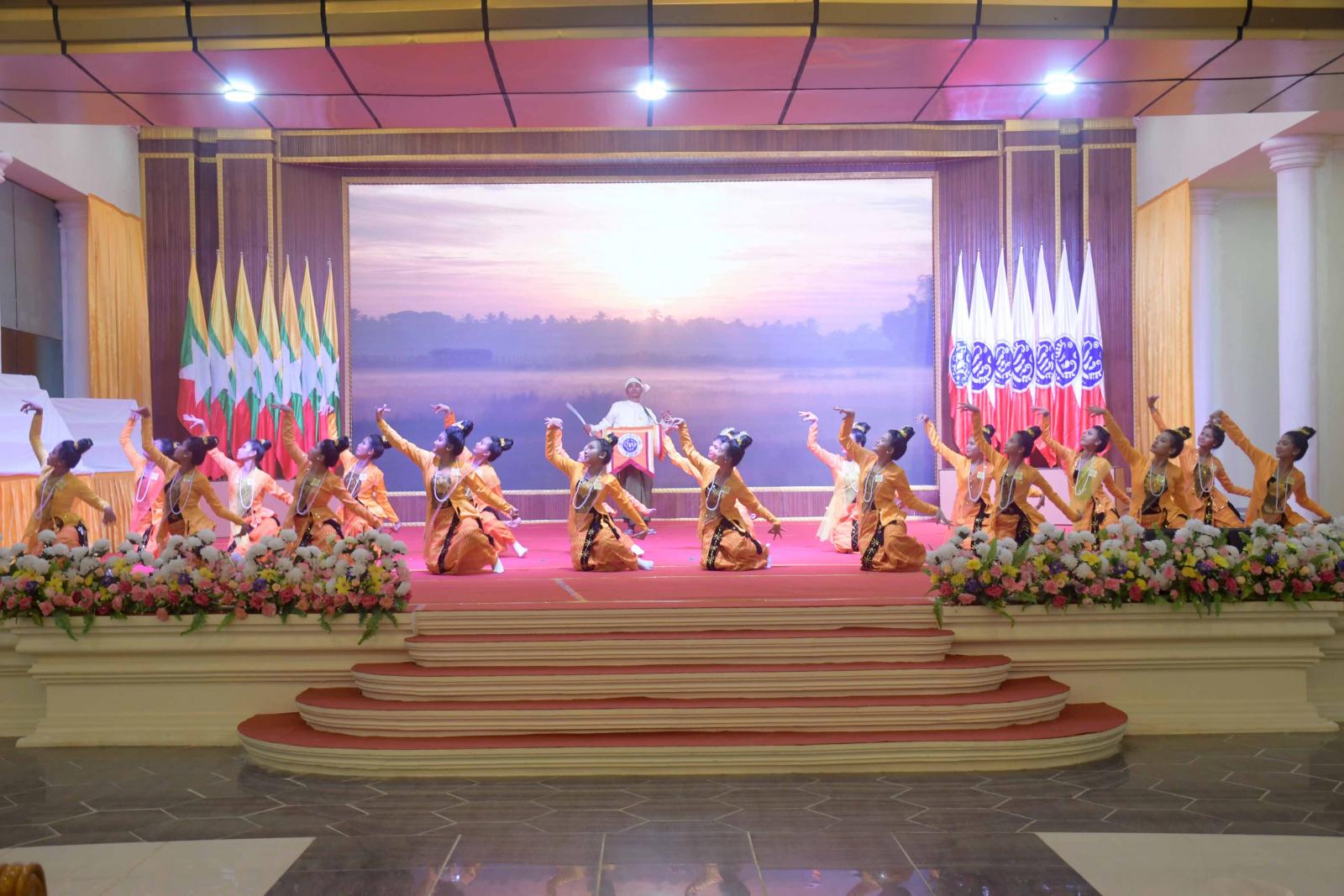 ဆက်လက်၍ ရခိုင်တိုင်းရင်းသားရိုးရာအကအဖွဲ့က “ရိုးမရံစီ” တေးသီချင်းဖြင့် ကပြဖျော်ဖြေ ကြပြီး ပြည်နယ်အစိုးရအဖွဲ့ဝင်များနှင့် တာဝန်ရှိသူများက ဂုဏ်ပြုမှတ်တမ်းလွှာ ဆုရရှိကြသူများကို ဆုများအသီးသီး ပေးအပ်ချီးမြှင့်ကြကာ ရခိုင်တိုင်းရင်းသားရိုးရာအကအဖွဲ့က “ဇမ်း” တေးသီချင်းဖြင့် ကပြဖျော်ဖြေကြသည်။