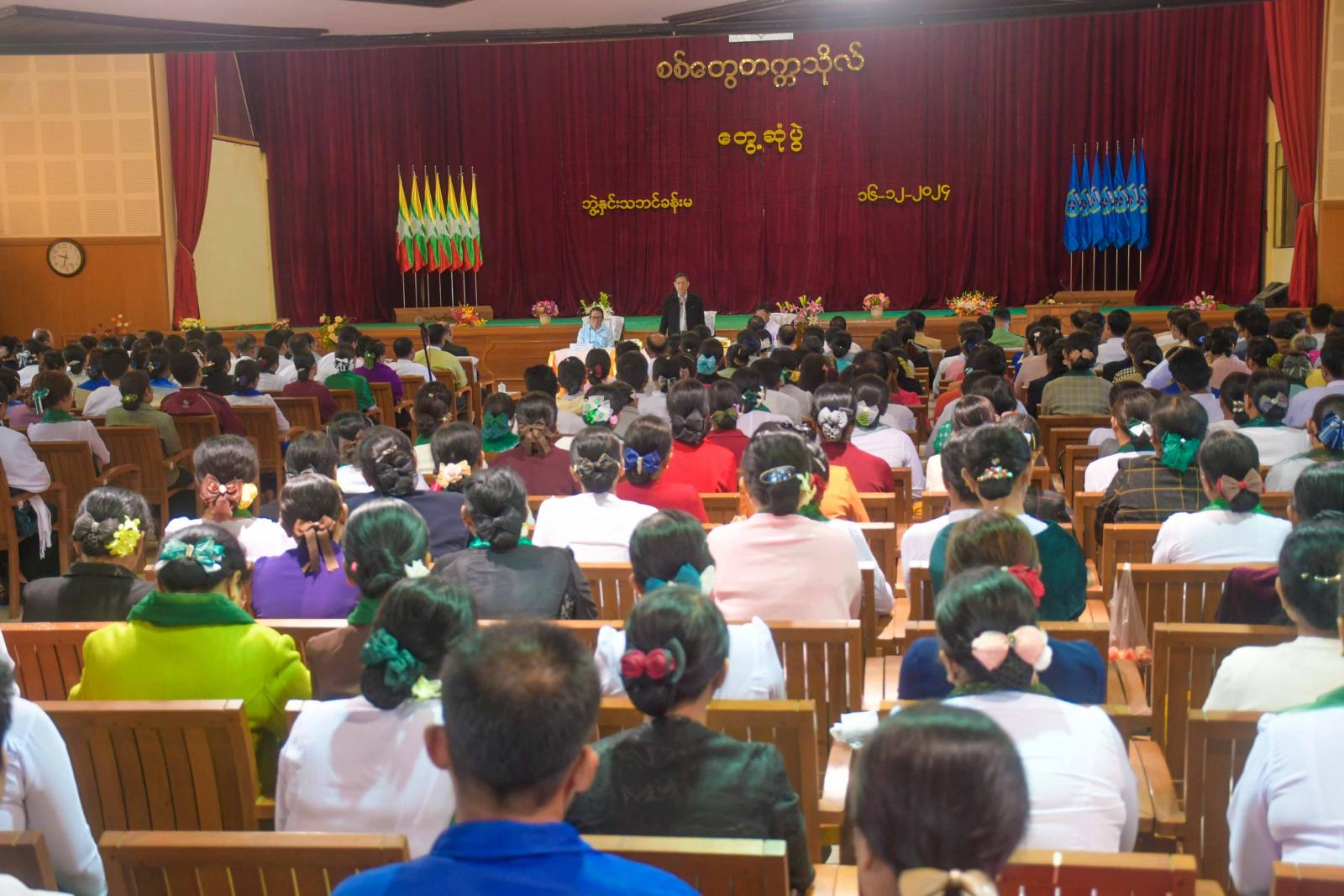 တွေ့ဆုံပွဲတွင် နိုင်ငံတော်စီမှုအုပ်ချုပ်ရေးကောင်စီအဖွဲ့ဝင် ဒေါက်တာဘရွှေက မိမိတို့နိုင်ငံတော်စီမံအုပ်ချုပ်ရေးကောင်စီအဖွဲ့ဝင်များဦးဆောင်ပြီး ပြည်ထောင်စုဝန်ကြီးများ၊ ဒုတိယဝန်ကြီးများ၊ နိုင်ငံတော်စီမံအုပ်ချုပ်ရေးကောင်စီဗဟိုအကြံပေးအဖွဲ့၊ အဖွဲ့ဝင်အပါအဝင် တာဝန်ရှိသူများသည် နိုင်ငံတော်အကြီးအကဲ၏ လမ်းညွှန်မှုဖြင့် နှစ်(၅၀)ပြည့်ရွှေရတုရခိုင်ပြည်နယ်နေ့အခမ်းအနားကို တက်ရောက်အားပေးချီးမြှင့်ရန်လာရောက်ခြင်းဖြစ်ကြောင်း၊ မိမိတို့အနေဖြင့် နှစ်(၅၀)ပြည့် ရွှေရတုရ ခိုင်ပြည်နယ်နေ့အခမ်းအနားနှင့်အတူ ဂုဏ်ပြုညစာစားပွဲကို အောင်အောင်မြင်မြင်ဖြင့် တက်ရောက်ချီးမြှင့်ပေးနိုင်ခဲ့ကြောင်း၊ ရခိုင်ပြည်နယ်တွင် လက်ရှိဖြစ်ပေါ်နေသော အခြေအနေများသည် အချိန် ကာလအတိုင်းအတာတစ်ခုတွင် ပြီးမြောက်ပြီး အေးချမ်းသာယာကာ ဖွံ့ဖြိုးတိုးတက်ရေးလုပ်ငန်းများကို ဆောင်ရွက်နိုင်မည်ဖြစ်ကြောင်း၊ ရခိုင်ပြည်နယ်၏လက်ရှိအခြေအနေ ရခိုင်ပြည်နယ်ဝန်ကြီးချုပ်၏ ဦးဆောင်မှုဖြင့် ဌာနဆိုင်ရာအကြီးအကဲများအားလုံး စည်းစည်းလုံးလုံးညီညီညွတ်ညွတ်ဖြင့် မိမိတို့ ဌာန၏လုပ်ငန်းတာဝန်များကို လုပ်ဆောင်နေကြသည်ကို တွေ့ရှိရသည့်အတွက်များစွာ ဝမ်းမြောက် ဂုဏ်ယူပါကြောင်း၊ ယခုတွေ့ဆုံကြသော ပညာရေးမိသားစုဝန်ထမ်းများသည် ပစ္စုပ္ပန်နှင့်အနာဂတ်အတွက် နိုင်ငံတော်၏အဓိကအရေးကြီးသော ပညာရေးလုပ်ငန်းစဉ်ကို တာဝန်ထမ်းဆောင်နေကြသည့်အတွက် အထူးလည်းဂုဏ်ယူပါကြောင်း၊ နိုင်ငံတော်အကြီးအကဲကလည်း ရခိုင်ပြည်နယ်ဖွံ့ဖြိုးတိုးတက်ရေး၊ ပညာရေးတိုးတက်ရေးကို အထူးစေတနာထား ဆောင်ရွက်ပေးလျက်ရှိကြောင်း၊ နိုင်ငံတော်အကြီးအကဲက အမြဲပြောကြားသည့် စကားရှိကြောင်း၊ နိုင်ငံတော်တည်ဆောက်သည့်နေရာတွင် ပစ္စုပ္ပန်အတွက်ရော၊ အနာဂတ်အတွက်ရော အဓိကအခန်းကဏ္ဍမှာ ပညာရေးကဏ္ဍဖြစ်ကြောင်း ပြောကြားလျက်ရှိကြောင်း၊ ပညာရေးဌာနတွင် တာဝန်ထမ်းဆောင် နေကြသော မိမိတို့ဆရာ၊ ဆရာမများသည် အတတ်ပညာဆိုသည့် ဘာသာရပ်ကျွမ်းကျင်မှုအပြင် စိတ်ပိုင်းဆိုင်အတွေးအခေါ် အယူအဆမှန်ကန်အောင်သင်ကြား ပေးရမည်ဖြစ်ကြောင်း၊ စာပေတတ်ပြီး ပညာတတ်များဖြစ်အောင် သင်ကြားပေးရမည်ဖြစ်ကြောင်း၊ ဆရာ၊ ဆရာမများ၏တာဝန်သည် အလွန်အရေးကြီးကြောင်း၊ မိမိတို့ တာဝန်ထမ်းဆောင်စဉ်ကာလတွင် ယခုထက်တာဝန်ကို ကျေပွန်အောင် ထမ်းဆောင်ပေးကြစေ လိုကြောင်းနှင့် ဗလငါးတန်နှင့်ပြည့်စုံသည့် ကျောင်းသား၊ ကျောင်းသူများ ပေါ်ထွန်းလာစေရေးအတွက် စေတနာ၊ မေတ္တာ၊ ဂရုဏာထားပြီး သင်ကြားပေးကြသော ဆရာ၊ ဆရာမကောင်းများ ဖြစ်နိုင်ကြပါစေကြောင်း၊ ဆရာ၊ ဆရာမများသည် နိုင်ငံ့ဝန်ထမ်းများပီပီ နိုင်ငံ့တာဝန် ကိုထမ်းဆောင်ကြသကဲ့သ