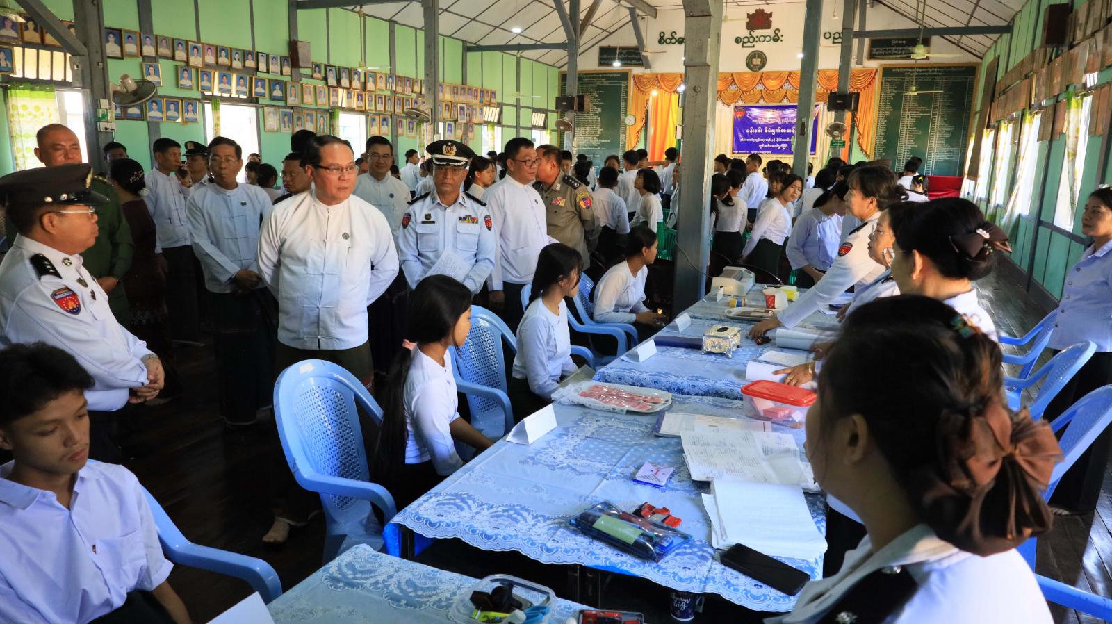 ထို့နောက် ပြည်နယ်ဝန်ကြီးချုပ်နှင့်တာဝန်ရှိသူများသည် နိုင်ငံသားစိစစ်ရေးကတ်ပြားပေးအပ်ပွဲသို့ တက်ရောက်လာသော ကျောင်းသား၊ ကျောင်းသူ၊ ဆရာ၊ ဆရာမများအား ရင်းရင်းနှီးနှီးတွေ့ဆုံနှုတ်ဆက်၍ ဘားအံမြို့နယ်ဦးစီးမှူးရုံးမှ အိမ်ထောင်စုလူဦးရေစာရင်းနှင့် နိုင်ငံသားစိစစ်ရေးကတ်ပြားများအား ဆက်လက်ကွင်းဆင်းဆောင်ရွက် ပေးနေမှု၊ e-ID စနစ်အကောင်အထည်ဖော် ဆောင်ရွက်မှုအခြေအနေများကို လှည့်လည်ကြည့်ရှုအားပေးခဲ့ကြသည်။
