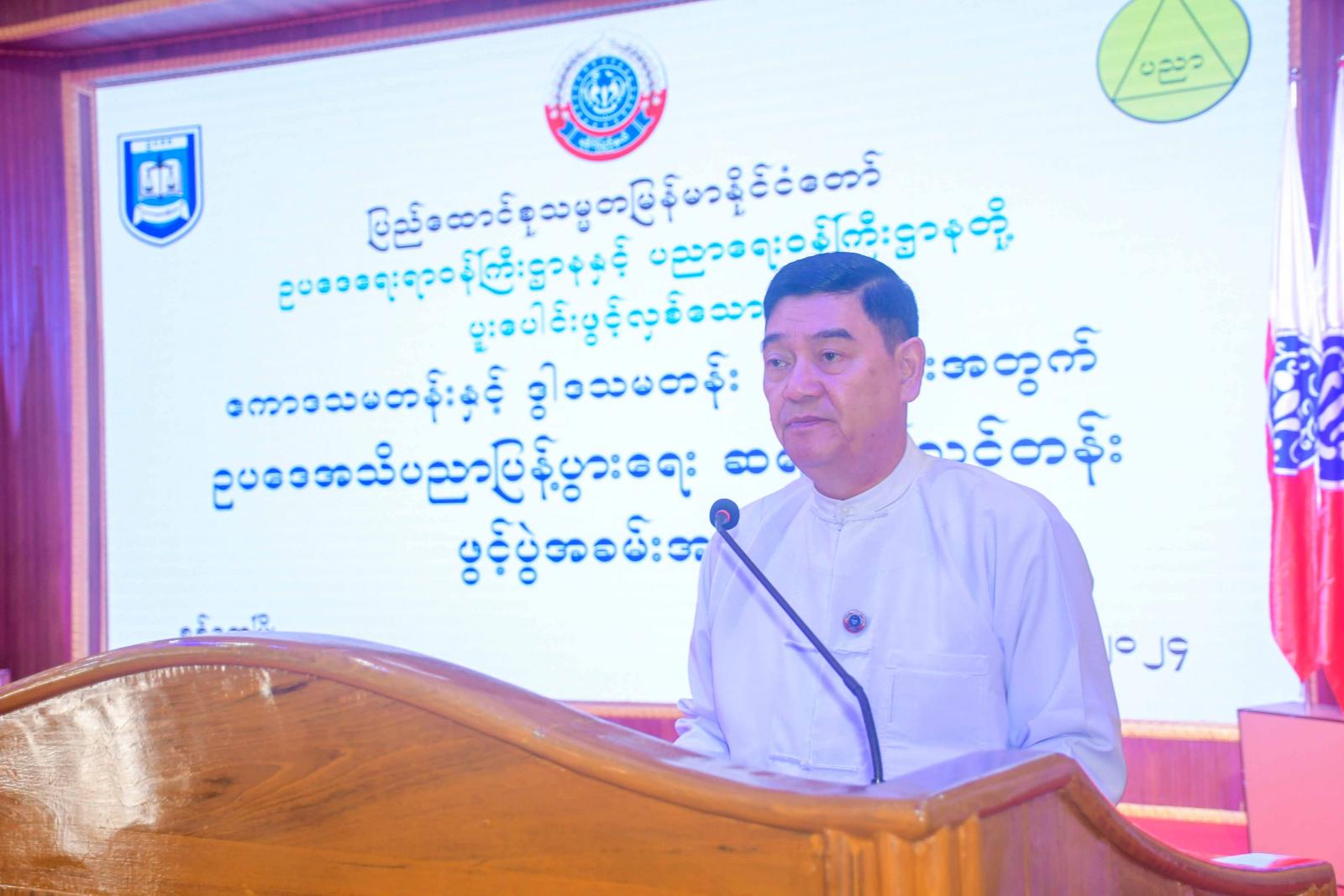 သင်တန်းဖွင့်ပွဲတွင် ရခိုင်ပြည်နယ် ဥပဒေအသိပညာပြန့်ပွားရေး ဆရာဖြစ်သင်တန်းကျင်းပရေး ဦးစီးကော်မတီနာယက ရခိုင်ပြည်နယ်ဝန်ကြီးချုပ် ဦးထိန်လင်းက နိုင်ငံတော်စီမံအုပ်ချုပ်ရေးကောင်စီဥက္ကဋ္ဌမှ အခြေခံပညာကျောင်းများမှာ ဥပဒေဘာသာရပ်သင်ကြားရန် လမ်းညွှန်ချက်နှင့်အညီ အခြေခံပညာအထက်တန်းအဆင့်ဖြစ်သည့် Grade – 11 ဧကာဒသမတန်းနှင့် Grade – 12 ဒွါဒဿမတန်း ကျောင်းသား၊ ကျောင်းသူများ အခြေခံဥပဒေပညာကို နားလည်တတ်ကျွမ်းစေရန်အတွက် ဘာသာရပ် (၇) ခုကို အခြေခံပညာအထက်တန်းကျောင်းများမှာ ပို့ချသွားရန် စီမံခဲ့ခြင်းဖြစ်ကြောင်း၊ သင်တန်းများသည် အခြေခံပညာကျောင်းများမှာ ဥပဒေပညာများ ပို့ချနိုင်သည့် ဆရာ၊ ဆရာမများဖြစ်အောင် ရခိုင်ပြည်နယ်ဥပဒေချုပ်ရုံးက (၁၀) ရက်ကြာ ပို့ချပေးသွားမည်ဖြစ်ကြောင်း၊ သင်တန်းတက်ရောက်ကြသည့် ဆရာ၊ ဆရာမများအနေဖြင့် မိမိတို့ကိုယ်တိုင် သင်တန်းဆရာအဖြစ် ပြန်လည်ပြသရမည်ဖြစ်၍ ဂရုတစိုက်အလေးထားသင်ယူကြရန် တိုက်တွန်းလိုကြောင်း၊ ကျောင်းသား၊ ကျောင်းသူများသည်လည်း နောင်တစ်ချိန်တွင် မလွဲမသွေ နိုင်ငံတော်အတွက် အားထားရမည့်သူများ ဖြစ်လာမည်ဖြစ်သည့်အတွက် သိသင့်သိထိုက်သော ဥပဒေများကို သိရှိထားခြင်းအားဖြင့် မိမိတို့ဘဝတိုးတက်အောင် ဆောင်ရွက်သည့်နေရာတွင် ထိန်းသိမ်းနိုင်ကြမည်ဖြစ်ကြောင်းနှင့် ဆရာ၊ ဆရာမများအနေဖြင့် ကိုယ်တိုင်လက်တွေ့ ဆရာတစ်ဦးအနေဖြင့် သင်ကြားပို့ချပေးရမည်ဖြစ်သည့်အတွက်ကြောင့် သင်တန်းတွင် ကြိုးစားလေ့လာသင်ယူကြရန် တိုက်တွန်းပြောကြားသည်။ ဆက်လက်၍ ပြည်နယ်ဥပဒေချုပ် ဦးလှသိန်းက သင်တန်းဖွင့်လှစ်ရခြင်းနှင့်စပ်လျဉ်း၍ ရှင်းလင်းပြောကြားပြီး ပြည်နယ်ဝန်ကြီးချုပ်နှင့်တာဝန်ရှိသူများက သင်တန်းတက်ရောက်ကြမည့် ဆရာ၊ ဆရာမများနှင့် အခမ်းအနားသို့ တက်ရောက်လာသည့် ကျောင်းသား၊ ကျောင်းသူများအား ရင်းရင်းနှီးနှီးတွေ့ဆုံနှုတ်ဆက်ကြသည်။