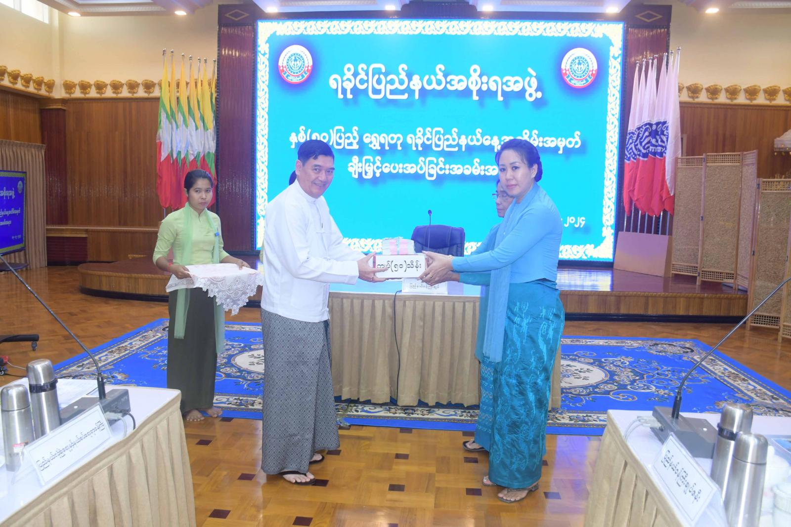 ဆက်လက်၍ ရခိုင်ပြည်နယ်ဝန်ကြီးချုပ် ဦးထိန်လင်းက ပြည်နယ်အမျိုးသမီးရေးရာအဖွဲ့၊ ပြည်နယ်မိခင်နှင့်ကလေးစောင့်ရှောက်မှုကြီးကြပ်ရေးအဖွဲ့၊ နာရေးကူညီမှုအသင်း (စစ်တွေ)၊ ဘိုးဘွားရိပ်သာစောင့်ရှောက်မှုအသင်း၊ ရွှေဂရုဏာဖောင်ဒေးရှင်းနှင့် အေဘီစီကလေးစောင့်ရှောက်ရေးအဖွဲ့ တို့အား ချီးမြှင့်ငွေကျပ်သိန်း (၅၀) စီကို ပေးအပ်ရာ အသင်းအဖွဲ့များမှ တာဝန်ရှိသူများက လက်ခံရယူကြပြီး နာရေးကူညီမှုအသင်း (စစ်တွေ) ဥက္ကဋ္ဌ၊ ဦးသန်းရွှေက ကျေးဇူးတင်စကား ပြန်လည်ပြောကြားခဲ့ကြောင်း သိရသည်။