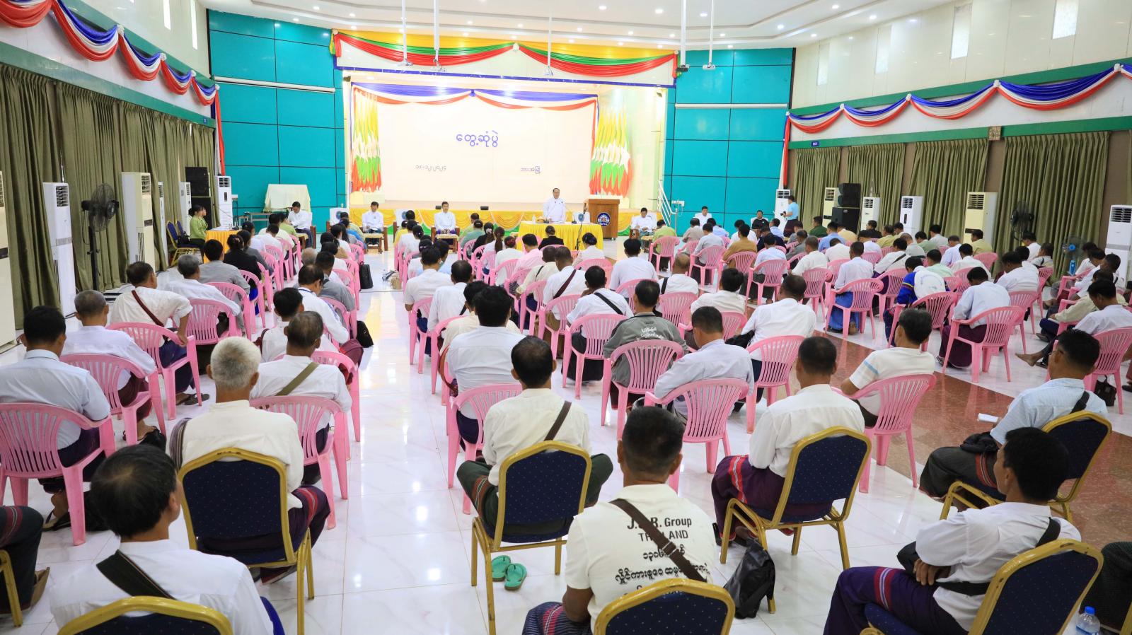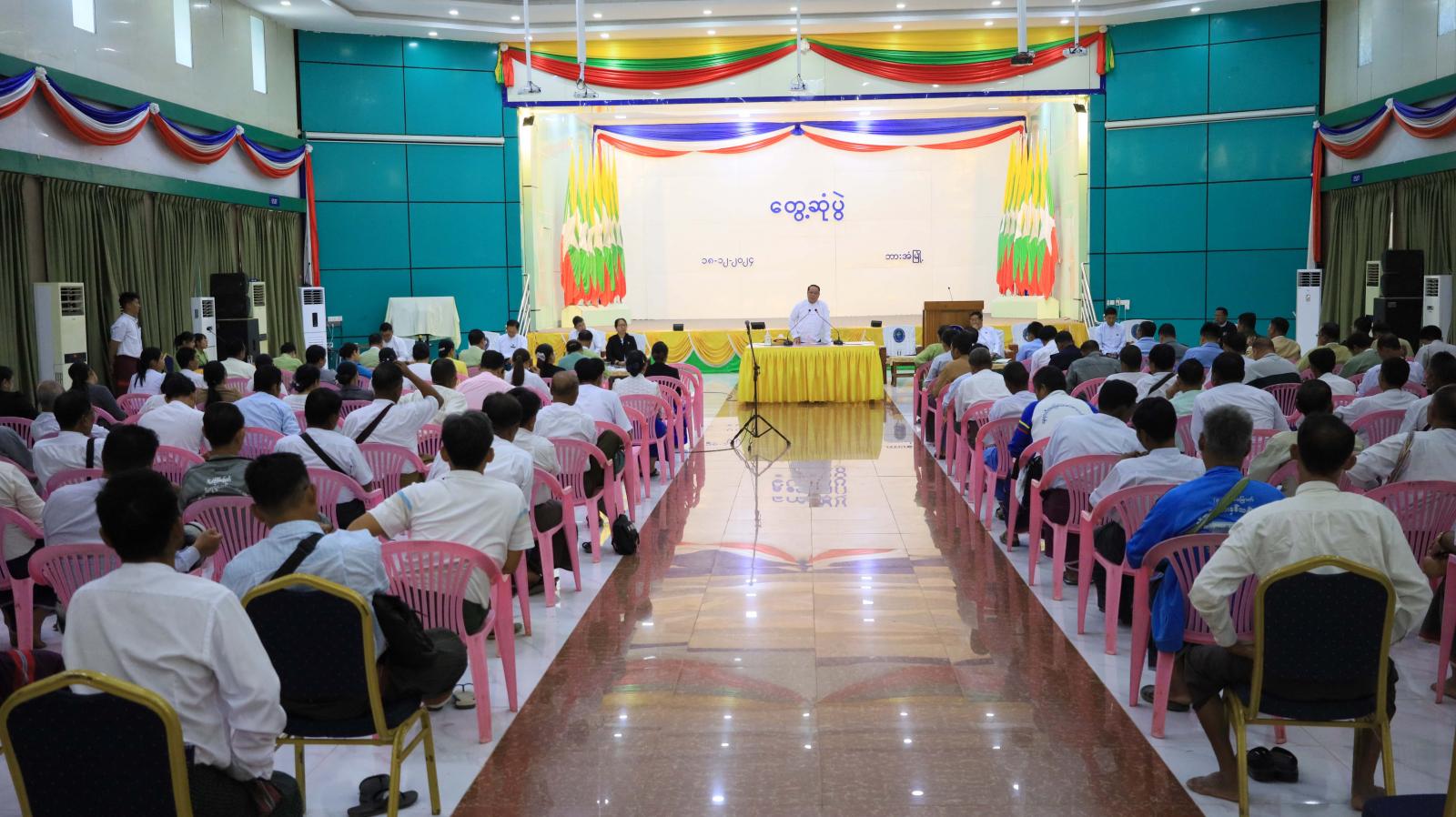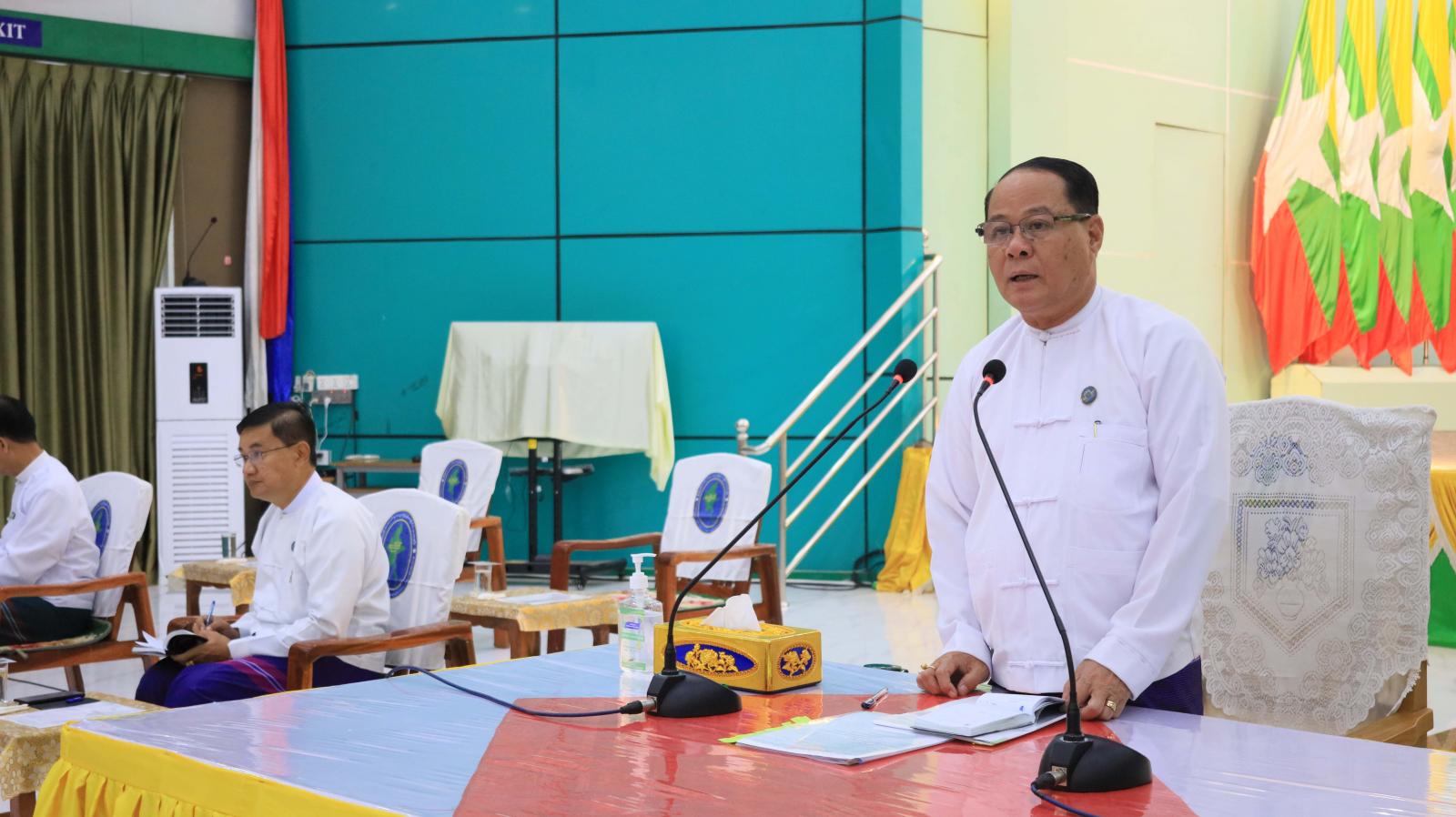 ထို့နောက် ပြည်နယ်သယံဇာတရေးရာဝန်ကြီး ဦးဇော်ဝင်းနှင့် လမ်းပန်းဆက်သွယ်ရေးဝန်ကြီး ဦးညီညီဇော်တို့က ဒေသဖွံ့ဖြိုးရေးဆိုင်ရာ လမ်း၊ တံတား၊ ရေရရှိရေးလုပ်ငန်းများ၊ သဘာဝပတ်ဝန်းကျင်ထိန်းသိမ်းရေးဆိုင်ရာကိစ္စရပ်များ၊ ခရီးသွားဆိုင်ရာများ၊ အလုပ်အကိုင်အခွင့်အလမ်းရရှိရေးဆိုင်ရာများကို ရှင်းလင်းပြောကြားပြီး မြို့နယ်အဆင့် ဌာနဆိုင်ရာတာဝန်ရှိသူများက ယခင်အပတ်အစည်းအဝေးဆုံးဖြတ်ချက်များအပေါ် လိုက်နာဆောင်ရွက်ပြီးစီးမှုအခြေအနေများကို ရှင်းလင်းတင်ပြကြသည်။
