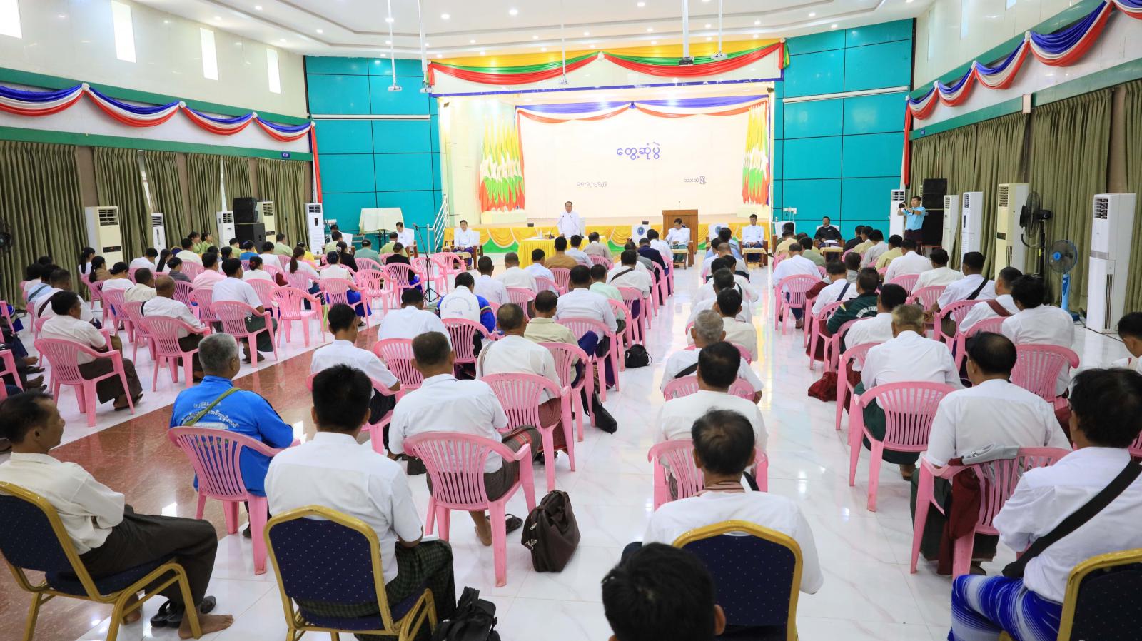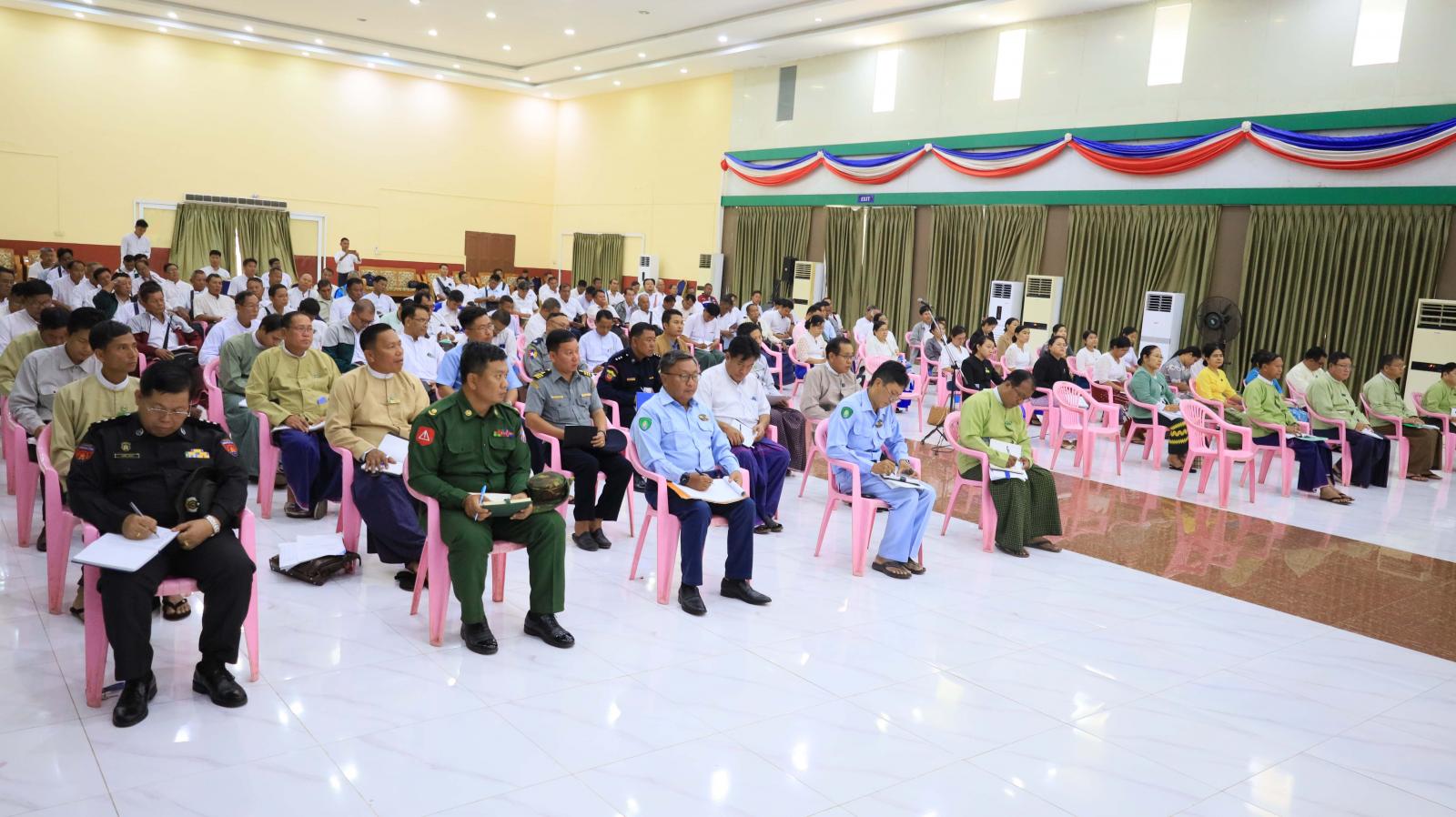 ဦးစွာ ပြည်နယ်ဝန်ကြီးချုပ်က ရပ်ကွက်/ ကျေးရွာအုပ်စု အုပ်ချုပ်ရေးမှူးများသည် အခြေခံအကျဆုံးအဖွဲ့အစည်းဖြစ်ပြီး တာဝန်ထမ်းဆောင်နေစဉ်ကာလအတွင်း အားနည်းချက်၊ အားသာချက်များကို ပြန်လည်သုံးသပ်၍ စိတ်စေတနာထားကာ လုပ်ငန်းတာဝန်များကို ထမ်းဆောင်ကြစေလိုကြောင်း၊ မကြာမီတက္ကသိုလ်ဝင်စာမေးပွဲများ ဖြေဆိုကြတော့မည်ဖြစ်သည့်အတွက် အောင်ချက်ကောင်းမွန်ရေးဆောင်ရွက်ရာတွင် ဝိုင်းဝန်းပူးပေါင်းဆောင်ရွက်ပေးကြစေလိုကြောင်း၊ စားရေရိက္ခာဖူလုံပိုလျှံစေရန် စိုက်ပျိုးမွေးမြူရေးလုပ်ငန်းများကို တိုးတက်စိုက်ပျိုးထုတ်လုပ်ရန်လိုကြောင်း၊ ဒေသတွင်းစီမံကိန်းလုပ်ငန်းများ အချိန်မီပြီးစီးနိုင်ရေး ဝိုင်းဝန်းကြပ်မတ်ဆောင်ရွက်ရန်နှင့် ပူးပြင်းခြောက်သွေ့သည့် နွေရာသီသို့ ရောက်ရှိလာပြီဖြစ်သည့်အတွက် မီးဘေးအန္တရာယ် ကြိုတင်ကာကွယ်ရေးလုပ်ငန်းများကို အထူးအလေးထားဆောင်ရွက်ကြစေလိုကြောင်း ပြောကြားသည်။