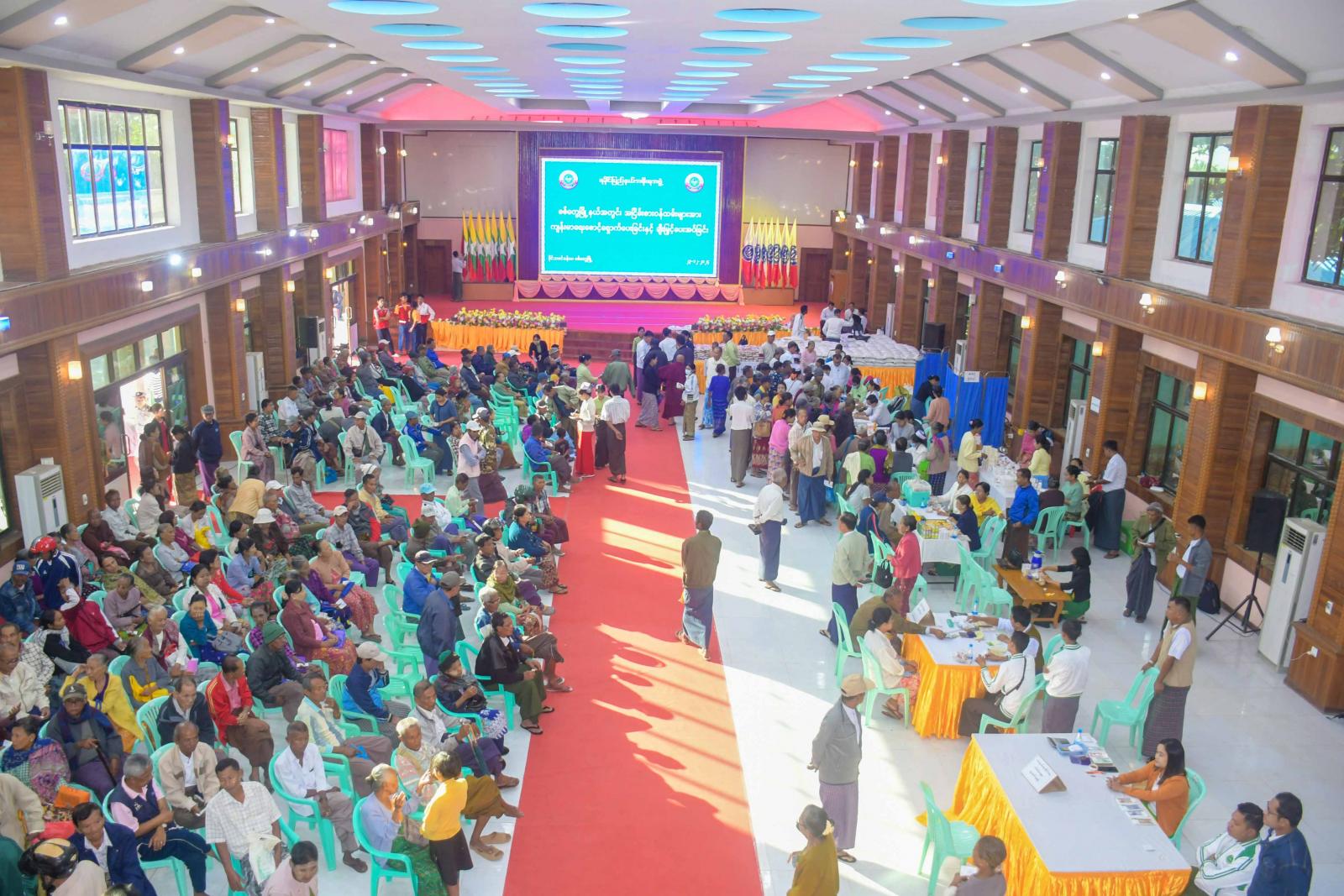 အငြိမ်းစားဝန်ထမ်းများအား ပင်စင်လစာထုတ်ပေးခြင်း၊ ကျန်းမာရေးစောင့်ရှောက်မှုပေးခြင်းနှင့် ချီးမြှင့်ပေးအပ်ခြင်း ဆောင်ရွက်ရာတွင် ပြည်နယ်ကျန်းမာရေးဦးစီးဌာနမှူး ဒေါက်တာကြည်လွင်နှင့် ခုတင် ၅၀၀ ဆံ့ အထွေထွေရောဂါကုဆေးရုံကြီးမှ ဆေးရုံအုပ်ကြီးတို့က အနီးကပ်ကြီးကြပ်ကာ ခုတင် ၅၀၀ ဆံ့ အထွေထွေရောဂါကုဆေးရုံကြီးမှ သမားတော်ကြီးများ၊ အထူးကုဆရာဝန်ကြီးများနှင့် ကျန်းမာရေးဝန်ထမ်းများက သွေးပေါင်ချိန် တိုင်းတာပေးခြင်း၊ သွေးအတွင်းအောက်ဆီဂျင်ပါဝင်မှု တိုင်းတာပေးခြင်း၊ ဆီးချို၊ သွေးချိုစစ်ဆေးပေးခြင်း၊ နှလုံးရောဂါစစ်ဆေးခြင်းနှင့် အီးစီဂျီရိုက်ပေးခြင်း များကိုဆောင်ရွက်ပေးကြပြီး လိုအပ်သော ဆေးဝါးများကိုလည်း အခမဲ့ထုတ်ပေးကြသည်။ အလားတူ တိုင်းရင်းဆေးပညာဦးစီးဌာနမှ ပြည်နယ်ဦးစီးမှူးနှင့် ဝန်ထမ်းများကလည်း အငြိမ်းအစားဝန်ထမ်းများအား တိုင်းရင်းဆေးဝါးများနှင့် ကုသပေးခြင်းများကို ဆောင်ရွက်ပေးကြပြီး တိုင်းရင်းဆေးများကို အခမဲ့ချီးမြှင့်ပေးအပ်ခဲ့ကြသည်။