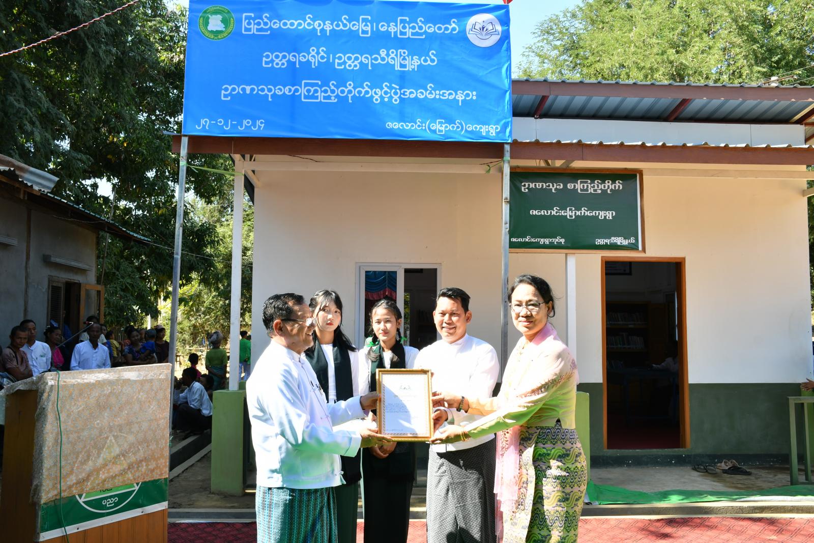 ထို့နောက် ဥတ္တရသီရိမြို့နယ်အုပ်ချုပ်ရေးမှူး ဦးရဲမြတ်သိန်းက စာကြည့်တိုက်ဆိုင်ရာအချက် အလက်များကို တောင်ညိုကျေးရွာအုပ်စု အုပ်ချုပ်ရေးမှူး ဦးဇော်မင်းထိုက်ထံ လွှဲပြောင်း ပေးအပ်ခဲ့ပြီး "အနာဂတ်ရဲ့ကြယ်ပွင့်ကလေးများ" စာကြည့်တိုက်မှူးထံ အလှူရှင်များက စာအုပ်စာစောင်များ လှူဒါန်းခဲ့သည်။
