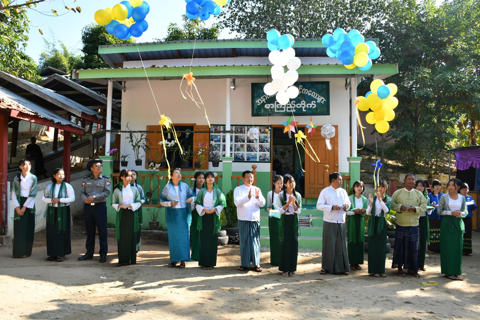 ဖွင့်ပွဲအခမ်းအနားတွင် ဥတ္တရသီရိမြို့နယ် စီမံအုပ်ချုပ်ရေးအဖွဲ့ဥက္ကဋ္ဌ၊ ဘင်ခရာအဖွဲ့နှင့်ပန်းပွားအကဖြင့် ကျောင်းသား၊ ကျောင်းသူများက ကြိုဆိုကြပြီး ဇလောင်းကျေးရွာမှ "ရွှေညီအစ်ကို" ဆိုင်းအဖွဲ့က မြိုင်မြိုင်ဆိုင်ဆိုင် ကပြကြိုဆိုကြသည်။