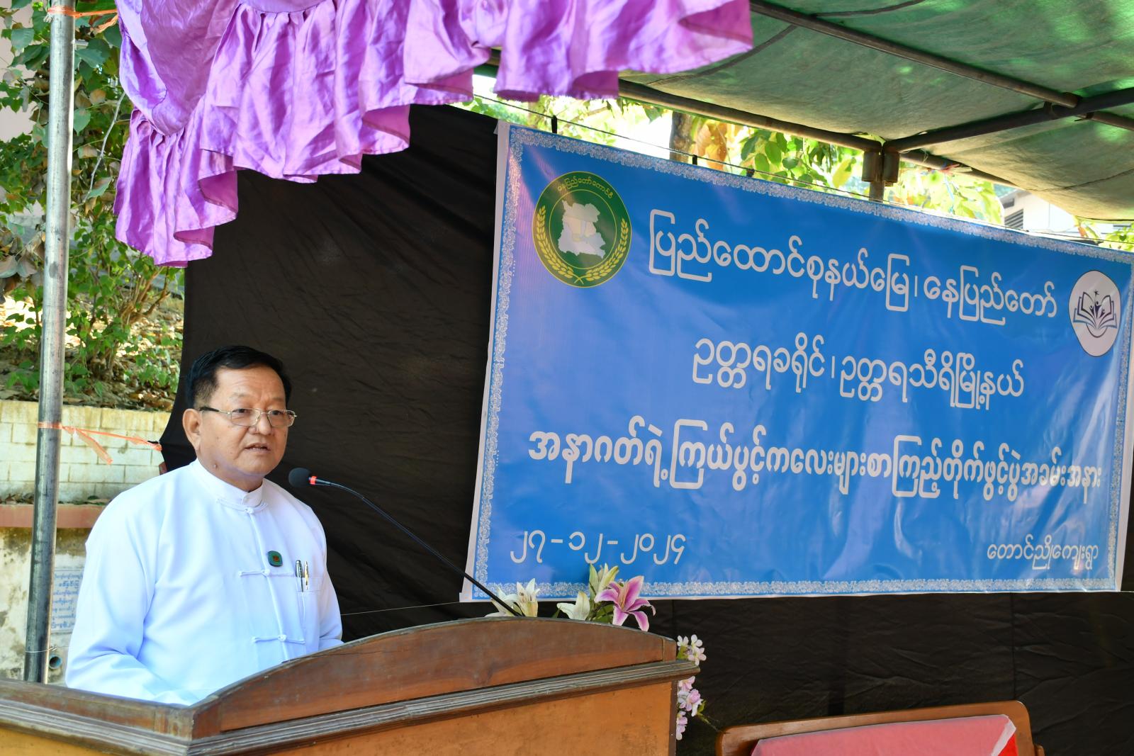 ယင်းနောက် နေပြည်တော်စာကြည့်တိုက်များ ဖွံ့ဖြိုးတိုးတက်ရေးပူးပေါင်းဆောင်ရွက်မှုကော်မတီ ဒုတိယဥက္ကဋ္ဌ နေပြည်တော်ကောင်စီဝင် ဦးမြင့်စိုးက အမှာစကားပြောကြားရာတွင် နိုင်ငံတစ်နိုင်ငံကို ဖွံ့ဖြိုးတိုးတက်အောင် ဆောင်ရွက်ရာတွင် လူ့အရင်းအမြစ်များကိုအခြေခံ၍ စနစ်တကျ ပြုစုတည်ဆောက်ရမှာဖြစ်ပြီး တာဝန်ရှိသူအားလုံးက လူငယ်၊လူရွယ်များအား အဓိကပြုစု ပျိုးထောင်ရေးလုပ်ငန်းများကို ဝိုင်းဝန်းလုပ်ဆောင်ပေးကြရမှာဖြစ်ပါကြောင်း၊ စာပေဖတ်ရှု လေ့လာခြင်းမှ အသိပညာဗဟုသုတများစွာ ရရှိနိုင်သဖြင့်စာအုပ်စာပေလေ့လာ ဖတ်ရှုရာတွင် ဖတ်ရှုရုံသက်သက်မလုပ်ဘဲ ဖတ်သမျှကို မှတ်သားခြင်း၊ မှတ်သားမိသမျှကိုလည်း ပြန်လည်မျှဝေဆွေးနွေးခြင်းတို့ကို ဆောင်ရွက်ကြရမှာဖြစ်ကြောင်း၊ သို့မှသာ အမှား/အမှန်ကို ဝေဖန်သုံးသပ်နိုင်ကာ အသိပညာဗဟုသုတကြွယ်ဝပြီး နောင်တစ်ချိန်တွင် တိုင်းပြည်က အားကိုးအားထားပြုရမည့် နိုင်ငံ့သားကောင်းများ ပေါ်ထွန်းလာမှာဖြစ်ပါတယ်။ လူငယ်များ အပါအဝင် ပြည်သူများအားလုံး စာဖတ်ကြရန်နှင့် စာပေလေ့လာဖတ်ရှုနိုင်မည့် ပတ်ဝန်းကျင်များ ဖန်တီးပေးရန် ယခုလို ကျေးရွာစာကြည့်တိုက်များ တည်ဆောက်ဖွင့်လှစ်ပေးခြင်းဖြစ်ကြောင်း၊ လူငယ်များအနေဖြင့် စာကြည့်တိုက်များသို့ သွားရောက်၍ စာပေဖတ်ရှုရန်အတွက် ရပ်မိ၊ ရပ်ဖ များ၊ အုပ်ထိန်းသူများ အနေဖြင့်လည်း လူငယ်များ စာပေလေ့လာဖတ်ရှုသည့် အလေ့အကျင့် ကောင်းများရရှိစေရေးကို ဝိုင်းဝန်းနှိုးဆော်ဆောင်ရွက်ကြရန်လိုအပ်ကြောင်း၊ ကျေးရွာ စာကြည့်တိုက် ရေရှည်ခိုင်မာပြီး ရှင်သန်ဖွံ့ဖြိုးတိုးတက်စေရေး၊ စာအုပ်စာစောင်များ ဆက်လက် တိုးပွားရရှိစေရေးလုပ်ငန်းများနှင့် စာဖတ်ရှိန်မြှင့်တင်ရေး လုပ်ငန်းများကို စဉ်ဆက်မပြတ် ဝိုင်းဝန်းကြိုးပမ်းဆောင်ရွက်ကြရမှာဖြစ်ကြောင်း ပြောကြားသည်။
