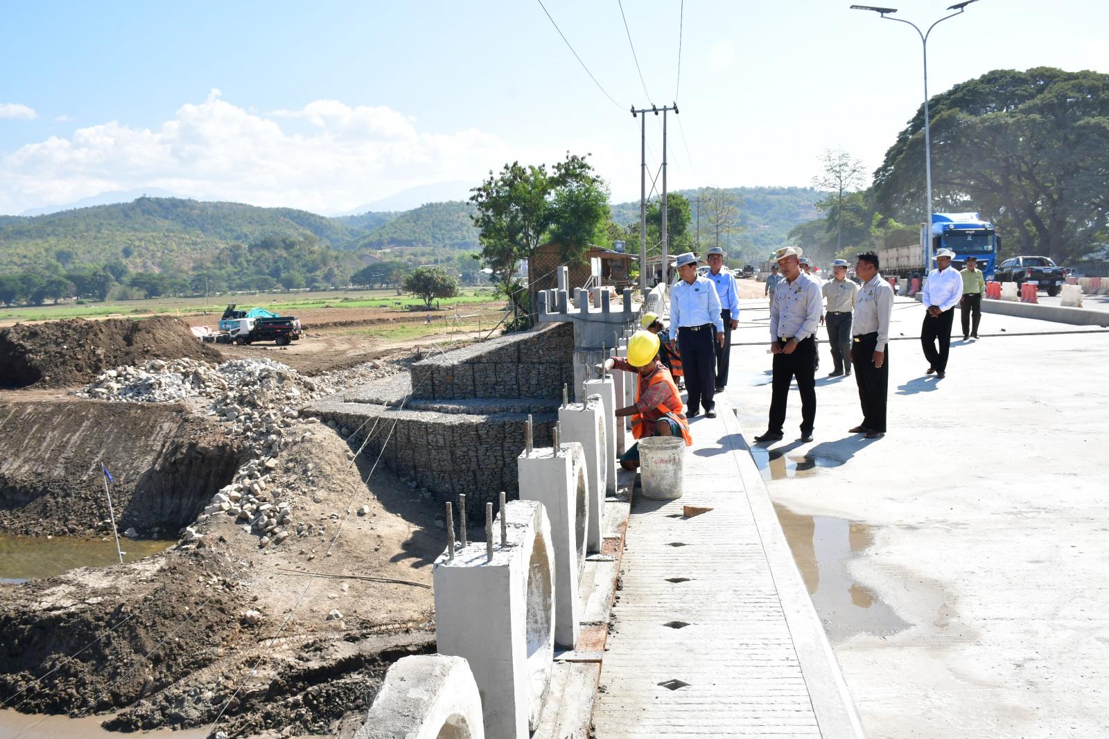 ယင်းနောက် နေပြည်တော်ကောင်စီဥက္ကဋ္ဌ ဦးသန်းထွန်းဦးသည် တပ်ကုန်းမြို့နယ်၊ ကင်းသာကျေးရွာအုပ်စု၊ ရန်ကုန်-မန္တလေး ပြည်ထောင်စုလမ်းမကြီး မိုင်တိုင်အမှတ် ၂၄၅/၇ တွင် တံတားဦးစီးဌာန တည်ဆောက်ရေးအဖွဲ့(၂) တံတားအထူးဖွဲ့(၆)မှ တာဝန်ယူတည်ဆောက်နေသည့် နဝင်းချောင်းတံတား(အဆုံ) အရှည်ပေ ၁၉၀ အား မူလနှစ်လမ်းသွားတံတားမှ လေးလမ်းသွား တံတားအဖြစ် အဆင့်မြှင့်တင်တည်ဆောက်နေမှုကို သွားရောက်ကြည့်ရှုစစ်ဆေးရာ တာဝန်ရှိသူများက တံတားတည်ဆောက်ရေးလုပ်ငန်းများ ဆောင်ရွက်ပြီးစီးမှု၊ လက်ရှိဆောင်ရွက်နေမှုနှင့် ဆက်လက်ဆောင်ရွက်မည့် လုပ်ငန်းအစီအစဉ်များကို ရှင်းလင်းတင်ပြရာ နေပြည်တော်ကောင်စီဥက္ကဋ္ဌက လုပ်ငန်းများကို သတ်မှတ်အချိန်မီပြီးစီးရေး အလေးထားဆောင်ရွက်ရေး၊ တည်ဆောက်ရေး လုပ်ငန်းများ သတ်မှတ်စံချိန်စံညွှန်းများအတိုင်း အရည်အသွေးကောင်းမွန်အောင် ဆောင်ရွက်ရေး၊ လုပ်ငန်းခွင် အန္တရာယ်ကင်းရှင်းရေးကို အထူးအလေးထားဆောင်ရွက်ရန်မှာကြားပြီး လုပ်ငန်းခွင်အတွင်း လိုက်လံကြည့်ရှုစစ်ဆေးခဲ့ကြောင်းသိရသည်။