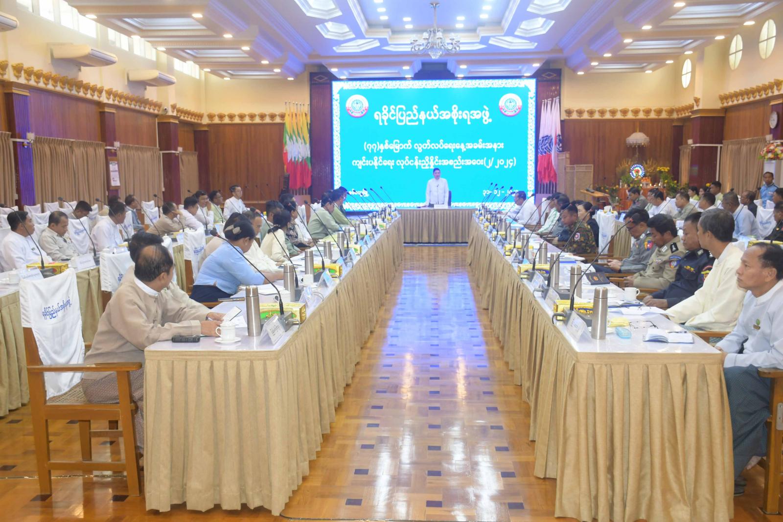 ထို့နောက် ပြည်နယ်ဝန်ကြီးချုပ်နှင့်အဖွဲ့သည် ရခိုင်ပြည်နယ်အစိုးရအဖွဲ့ရုံးအစည်းအဝေးခန်းမ၌ (၇၇)နှစ်မြောက်လွတ်လပ်ရေးနေ့အခမ်းအနား ကျင်းပနိုင်ရေး လုပ်ငန်းညှိနှိုင်းအစည်းအဝေးသို့ တက်ရောက်ကြသည်။