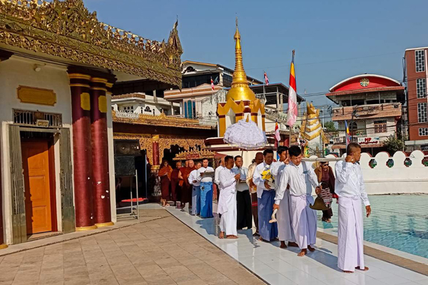 ဦးစွာမြတ်စွာဘုရားရှင်အားအမှူးထား၍ ဆရာတော်၊ သံဃာတော်အရှင်သူမြတ်များက ဦးဆောင်ကာ ပဋ္ဌာန်းကျမ်းတော်မြတ်ကြီးကိုပင့်ဆောင်ပြီး စေတီတော်မြတ်ကြီးအား လက်ယာရစ်တစ်ပတ် လှည့်လည်ပူဇော်ခြင်းနှင့် သာသာနာ့အလံ လွှင့်ထူပူဇော်ခြင်း စတင်ဆောင်ရွက်သည်။