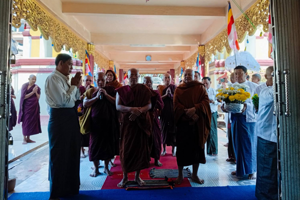 ထို့နောက် ကျောင်းတိုက်အသီးသီးမှ ဆရာတော်၊ သံဃာတော် အရှင်သူမြတ်များက နမောတဿ သုံးကြိမ်ရွတ်ဆိုဘုရားကန်တော့၍အခမ်းအနားကို ဖွင့်လှစ်ပေးပြီး သီရိရတနာသက်သက်လွတ် ကျောင်းတိုက် ဆရာတော် မဟာသဒ္ဓမ္မဇောတိကဓဇ ဦးအာသီသက ရောင်ခြည်တော်ဖွင့် ဂါထာဖြင့် မြတ်စွာဘုရားရှင်အား ပင့်လျှောက်ပူဇော်ခြင်းနှင့် မြို့နယ်သံဃာ့နာယကအဖွဲ့ဝင် မင်းလက်ပံ ရွာ ဦးကျောင်းတိုက် ဆရာတော် ဘဒ္ဒန္တကောဏ္ဍညက နတ်ဗြဟ္မာများအား ဖိတ်ကြားခြင်း ဆောင်ရွက်သည်။