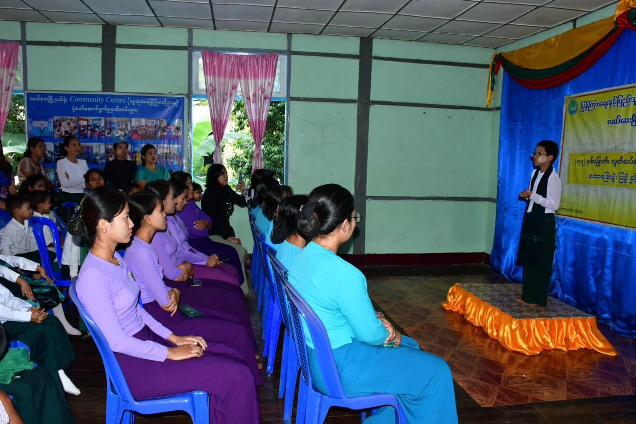 ဆက်လက်၍ မွန်းလွဲပိုင်းတွင် မူလတန်းအဆင့် ကဗျာရွတ်နှင့် ပုံပြောပြိုင်ပွဲကျင်းပရာ ကျောင်းသား၊ ကျောင်းသူ ၂၅ ဦး ဝင်ရောက်ယှဉ်ပြိုင်ပြီး မြို့နယ်အမျိုးသမီးရေးရာအဖွဲ့ဥက္ကဋ္ဌ ဒေါက်တာသဇင်မြင့်နှင့် အဖွဲ့ဝင်များ လာရောက်ကြည့်ရှုအားပေးကာ ပြိုင်ပွဲဝင်များအား မုန့်များပေးဝေခဲ့သည်။