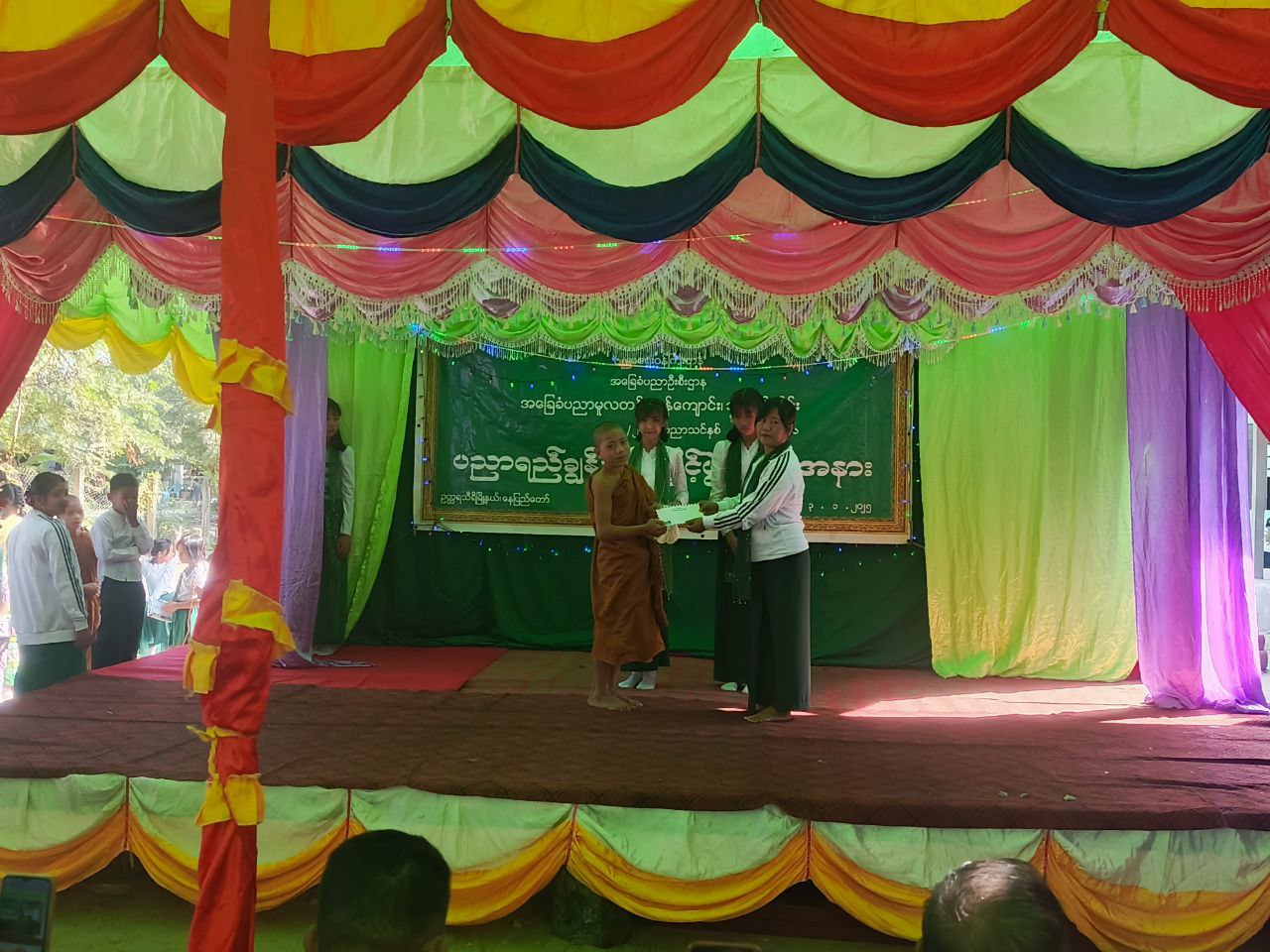 ထို့နောက် သစ်ဝင်တိုင်း အခြေခံပညာမူလတန်းလွန်ကျောင်းမှ ကျောင်းသား၊ ကျောင်းသူများက ခရေပန်းကောက်၊ အပျိုပြန်းလေး အစရှိသဖြင့် သီချင်း(၁၉)မျိုးတို့ဖြင့် အခမ်းအနားတက်ရောက် လာကြသူများအား သီဆိုကပြဖျော်ဖြေခဲ့ကြောင်း သိရသည်။